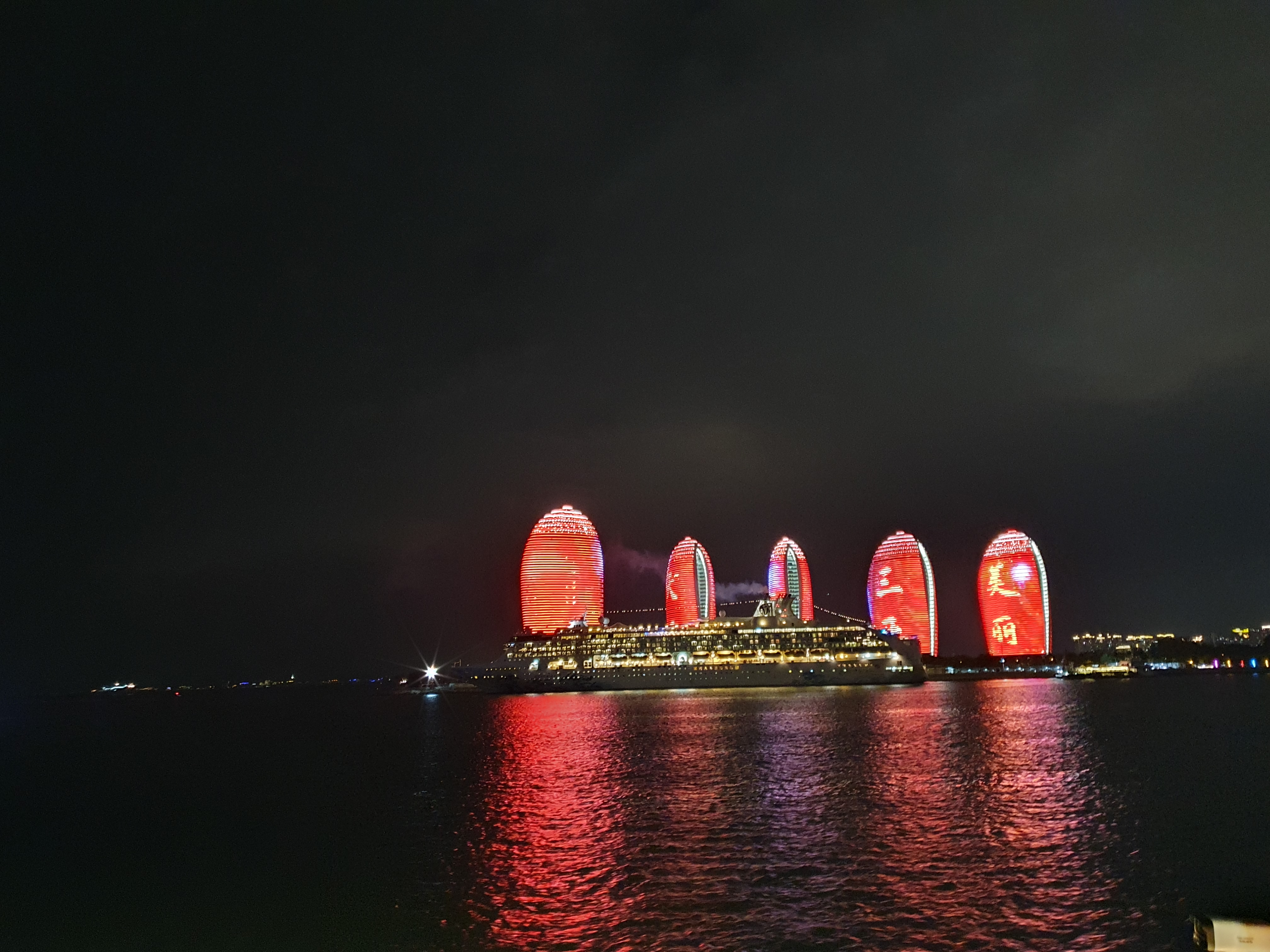 크고 화려한 유람선에서 선선한 바람을 맞으며 하이난의 아름다운 야경을 볼 수 있어 너무 좋았습니다.