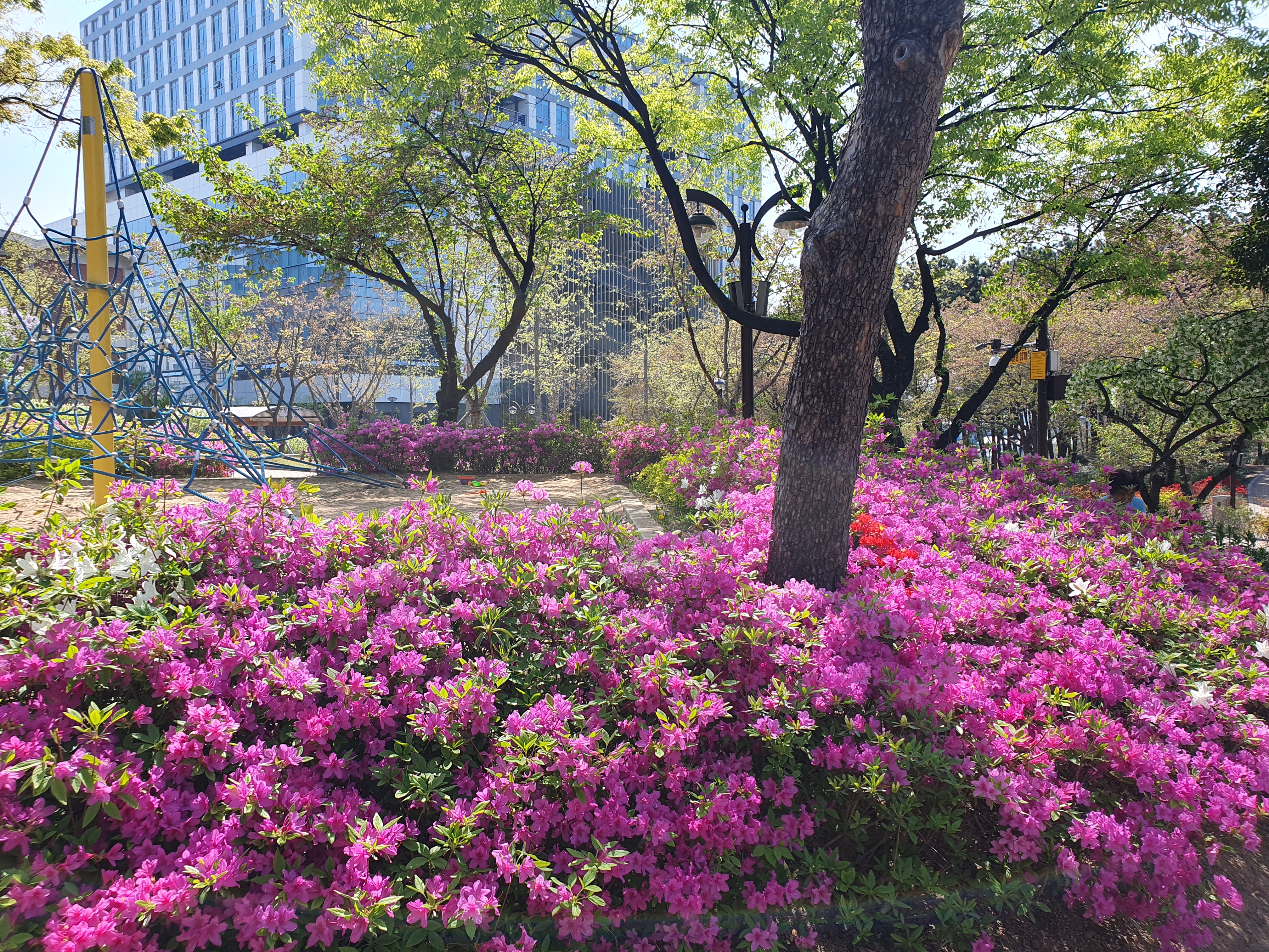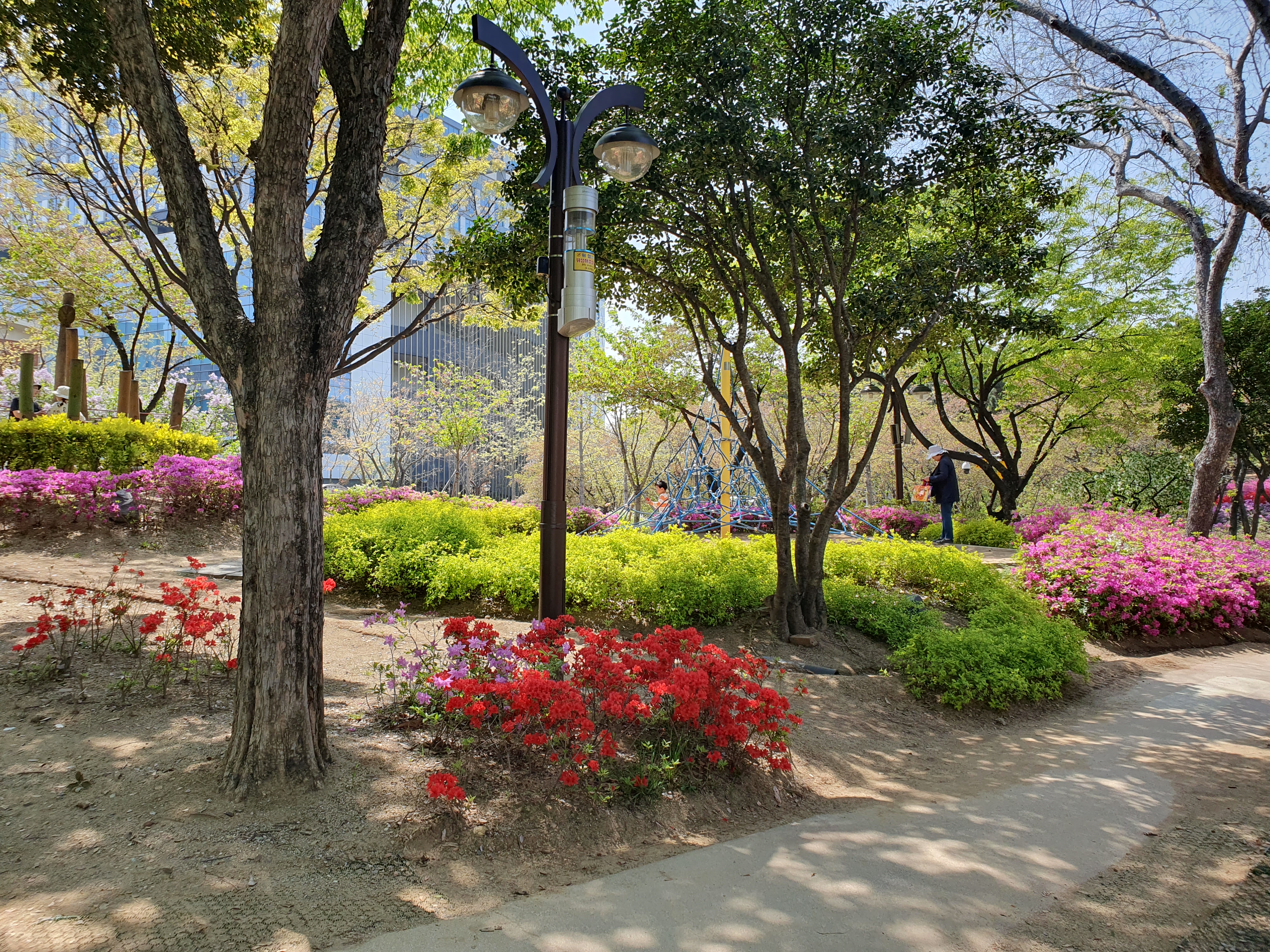 공원 한가운데는 잔디밭 공연장이 있어 주말에는 문화행사와 공연도 합니다. 넓지는 않지만 곳곳에 예쁜 꽃들과 나무들이 있어 아기자기하게 예쁘게 만들어진 공원이라는 느낌이 듭니다.