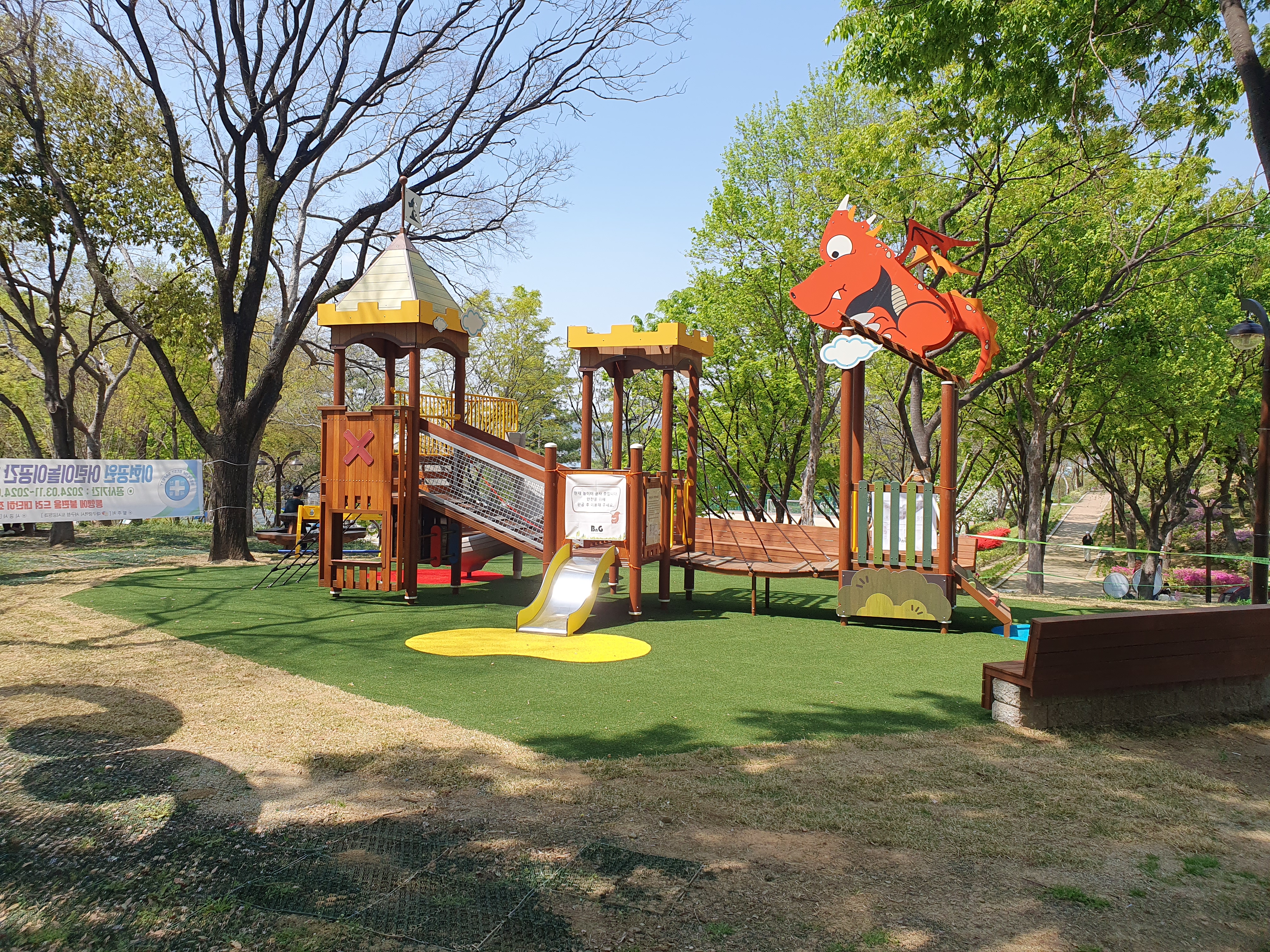공원 곳곳에 어린이 놀이터가 있어 아이들이 지겹지 않게 즐길 수 있습니다. 기존에 있던 놀이터를 새롭게 공사중인데 올해 상반기중에 완공이 될거같습니다.