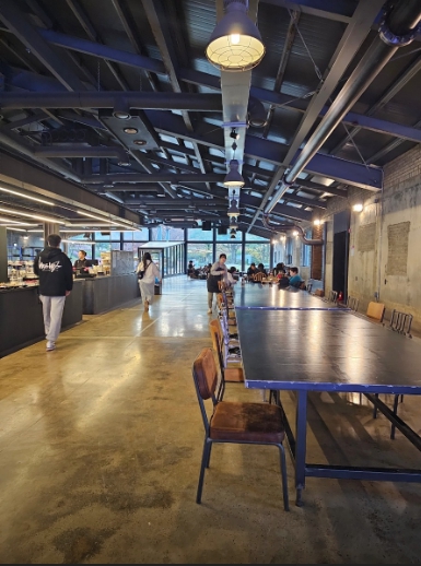 놀이터에서 신나게 놀고 바로 옆에 카페에서 쉬었는데 겉에서 보기에는 폐공장처럼 보였지만 안에 들어가보니깐 너무 넓고 깔끔하게 인테리어 되어있어 좋았습니다.