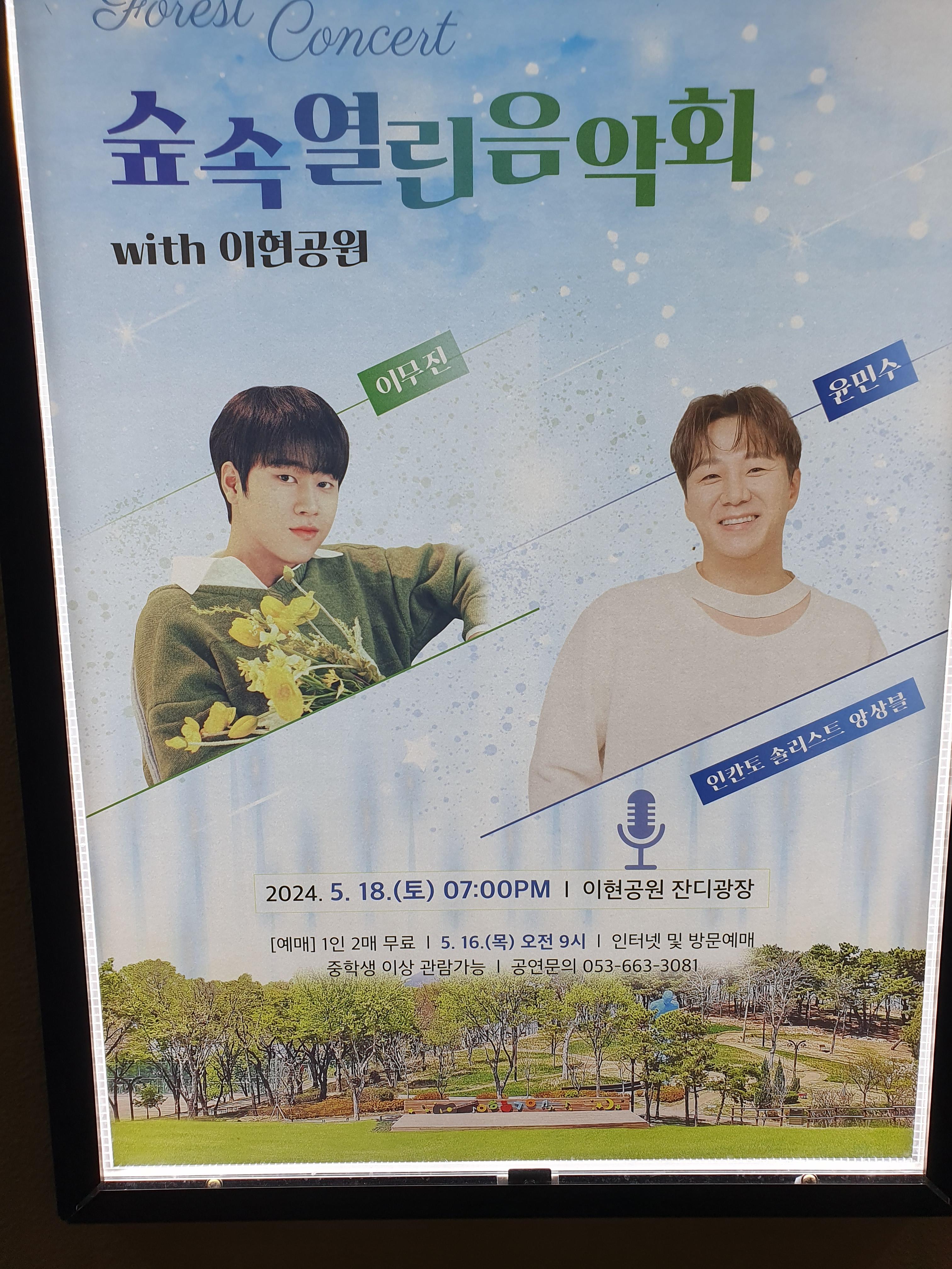 5월11일, 5월18일에는 유명한 가수들도 초청해서 음악회를 한다고 합니다. 시간되시면 꼭 가서 보시기를 추천드립니다.