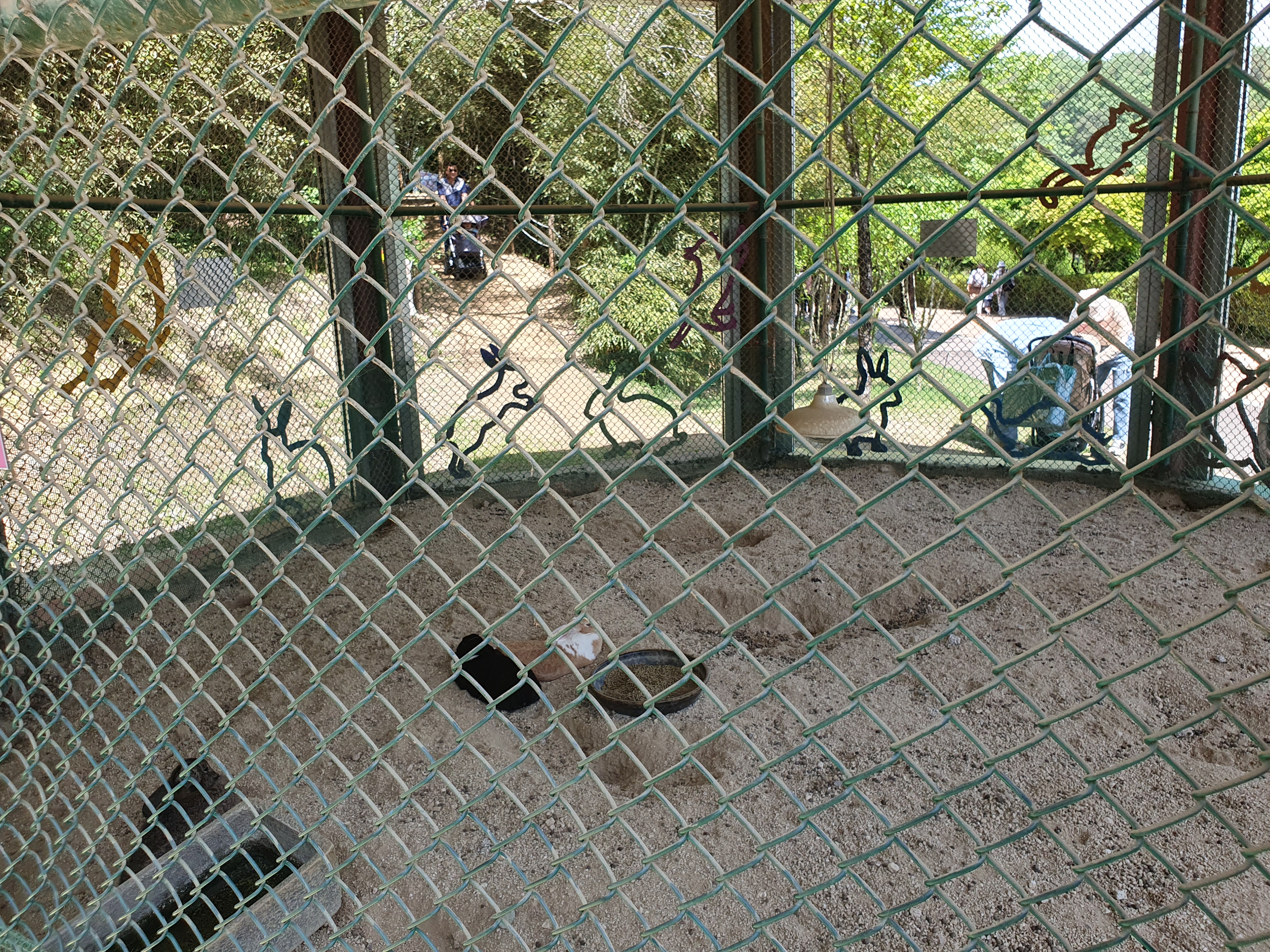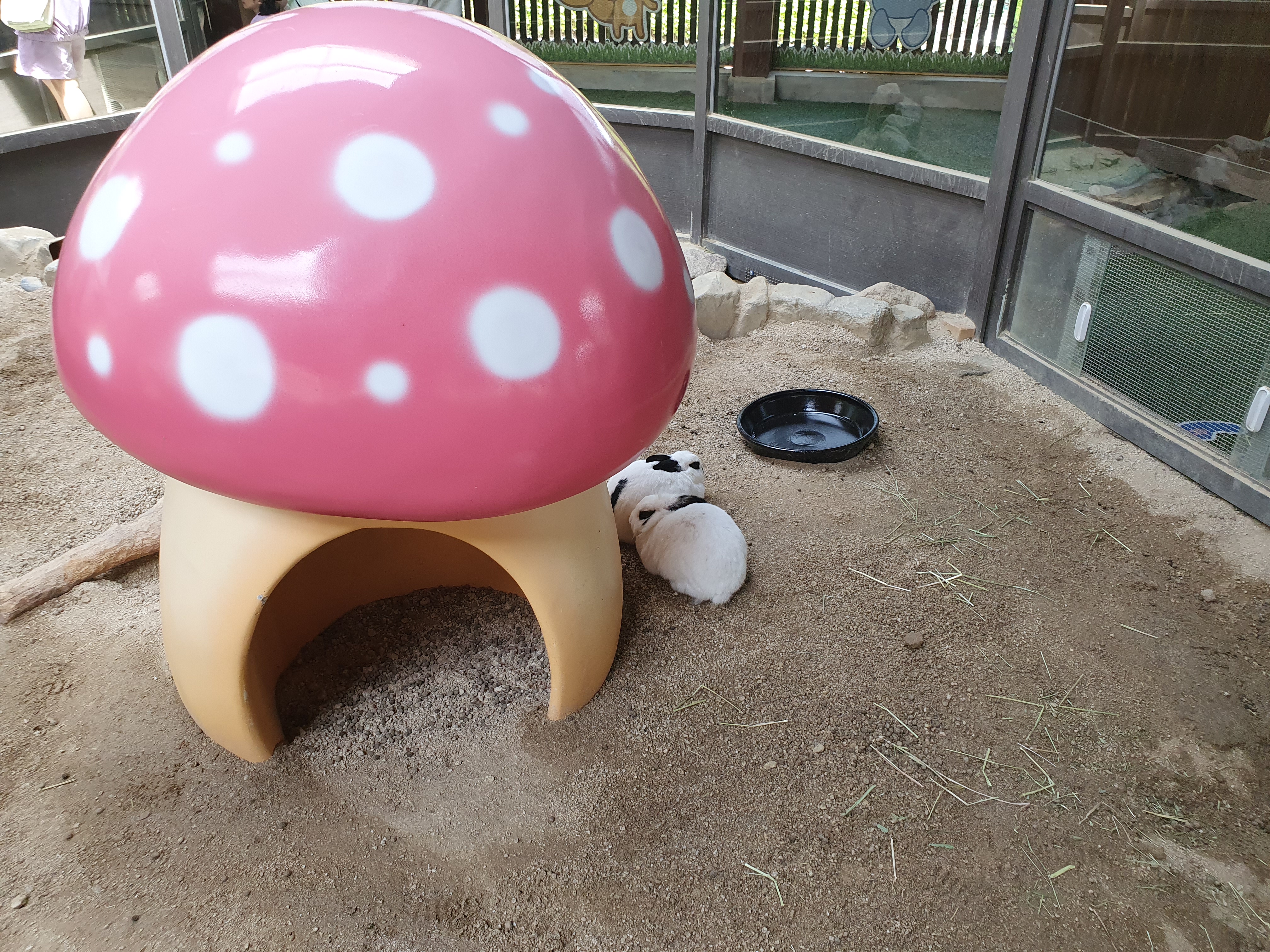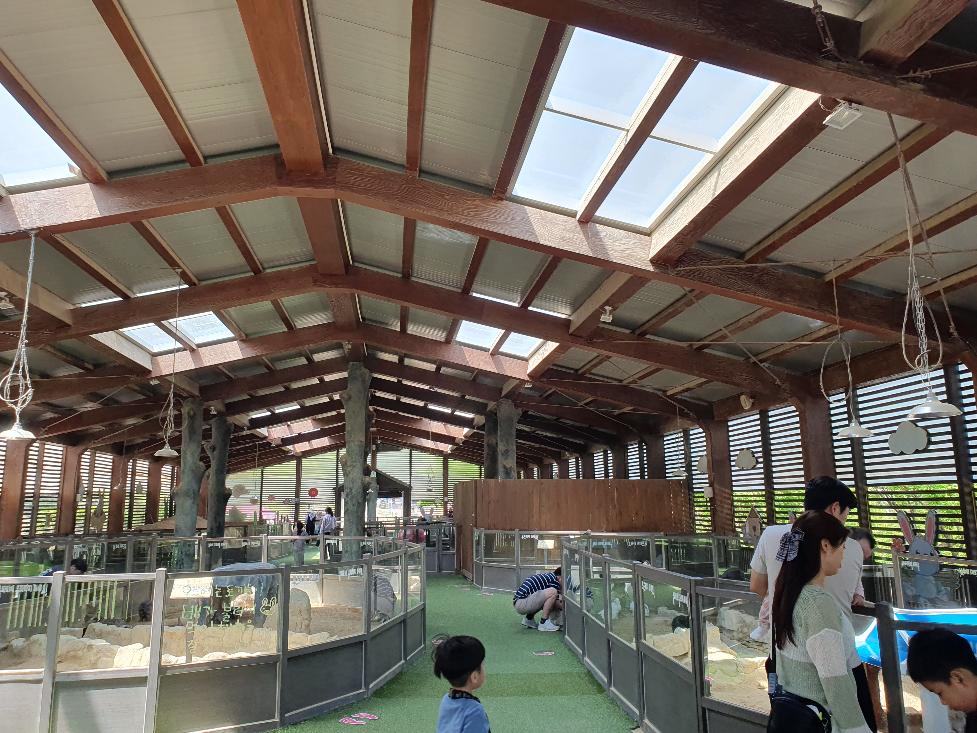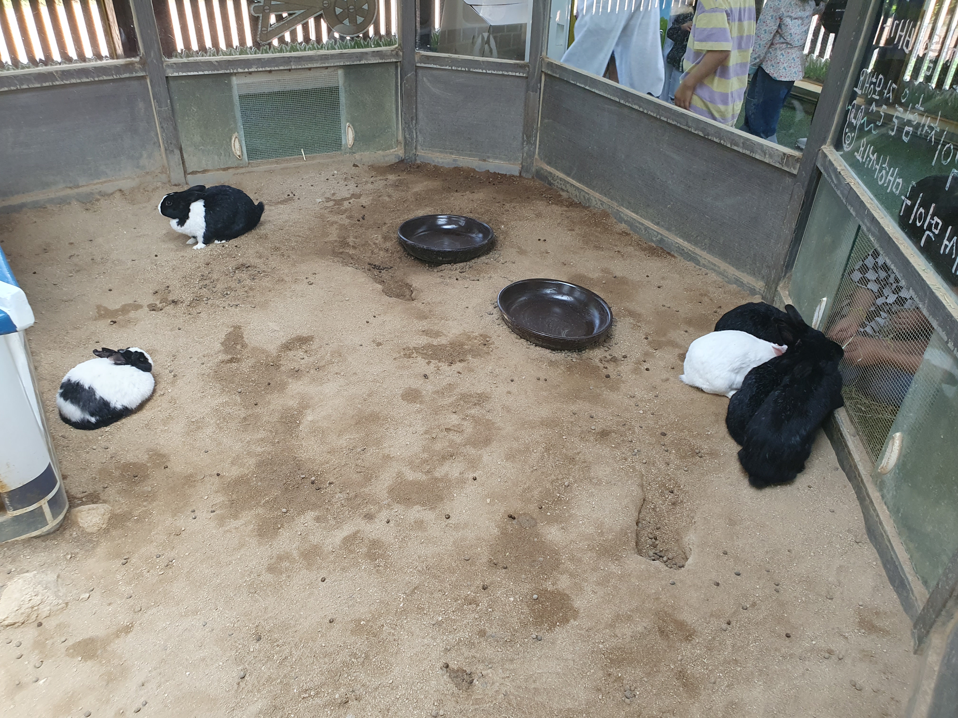토끼들이 낮은 울타리 안에 있어서 직접 만질수도 있습니다.