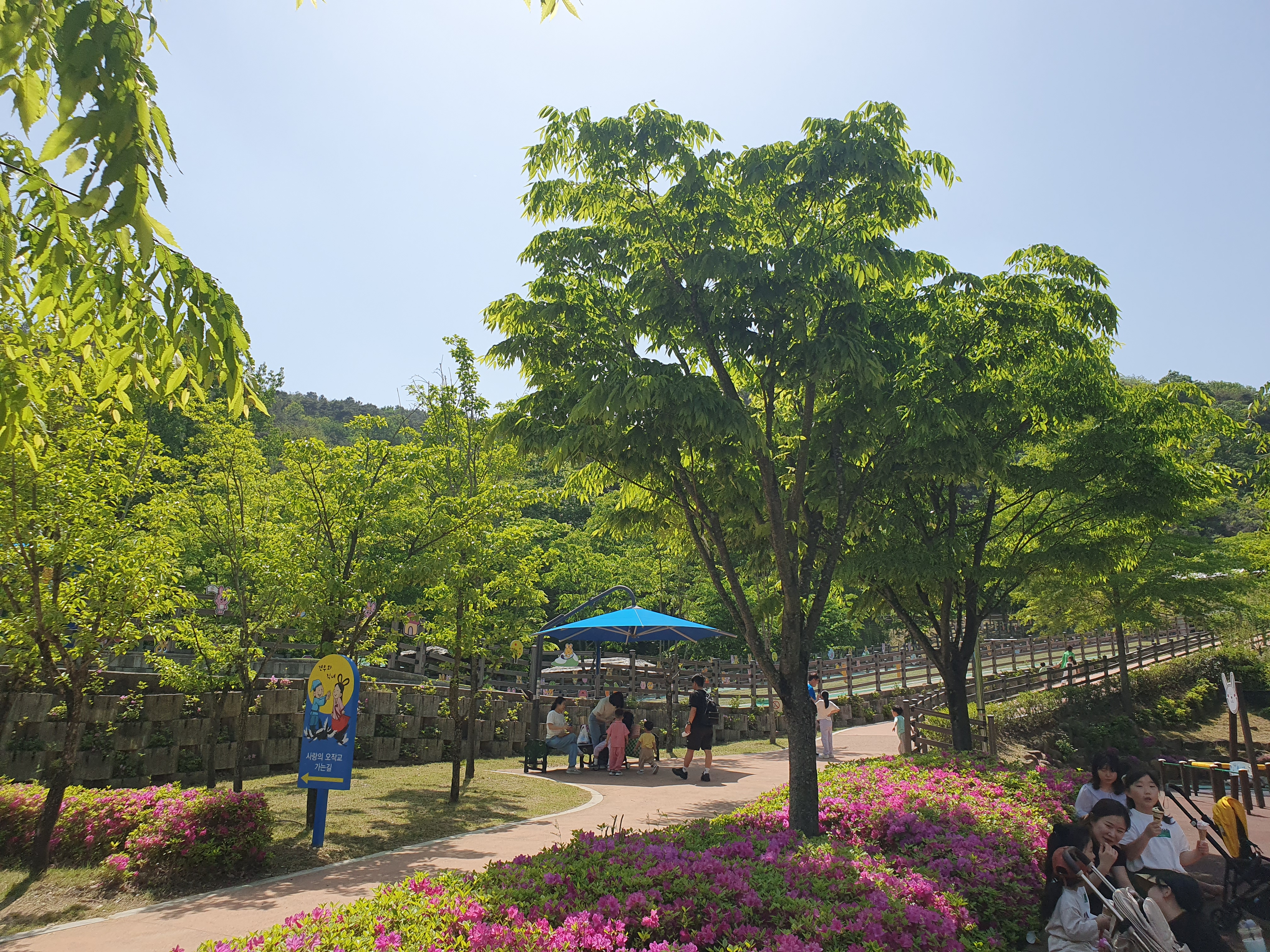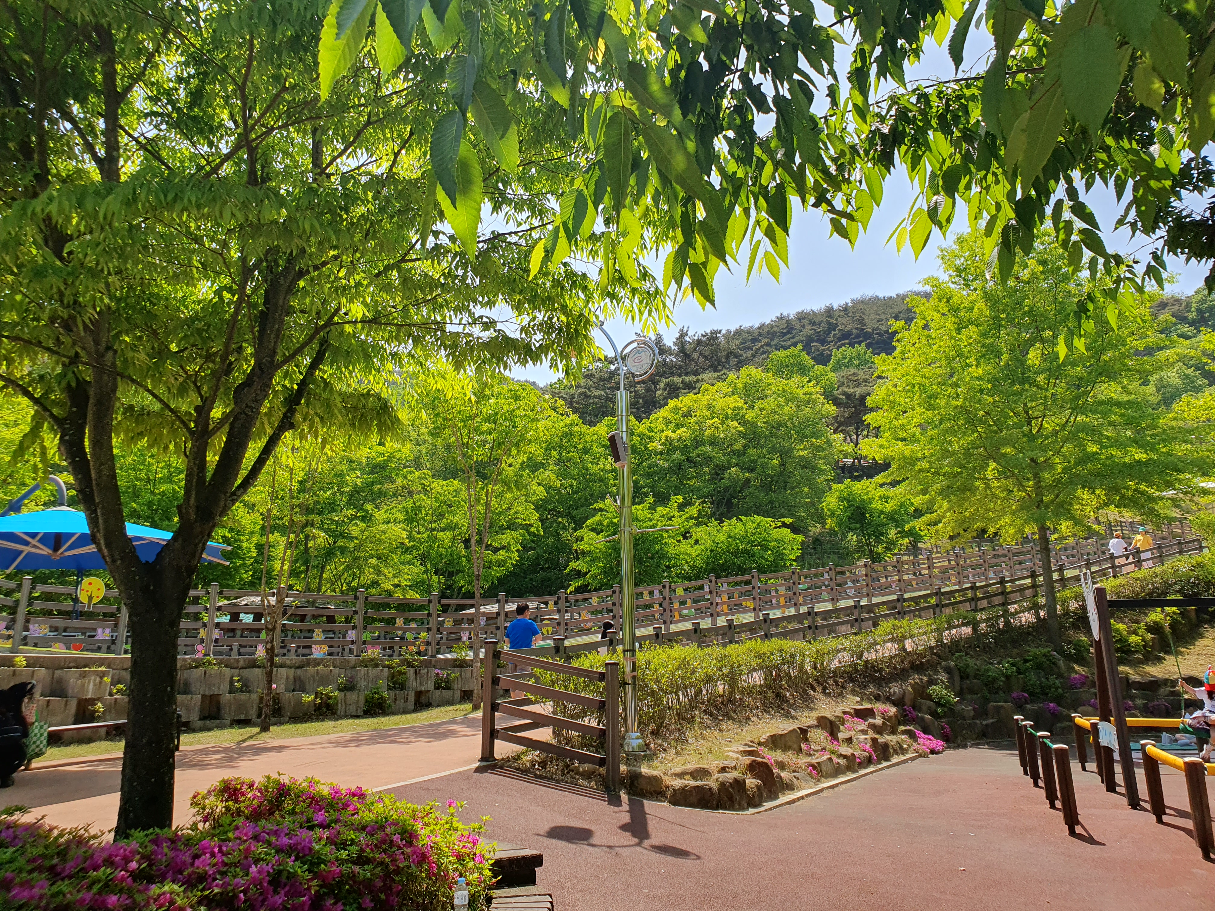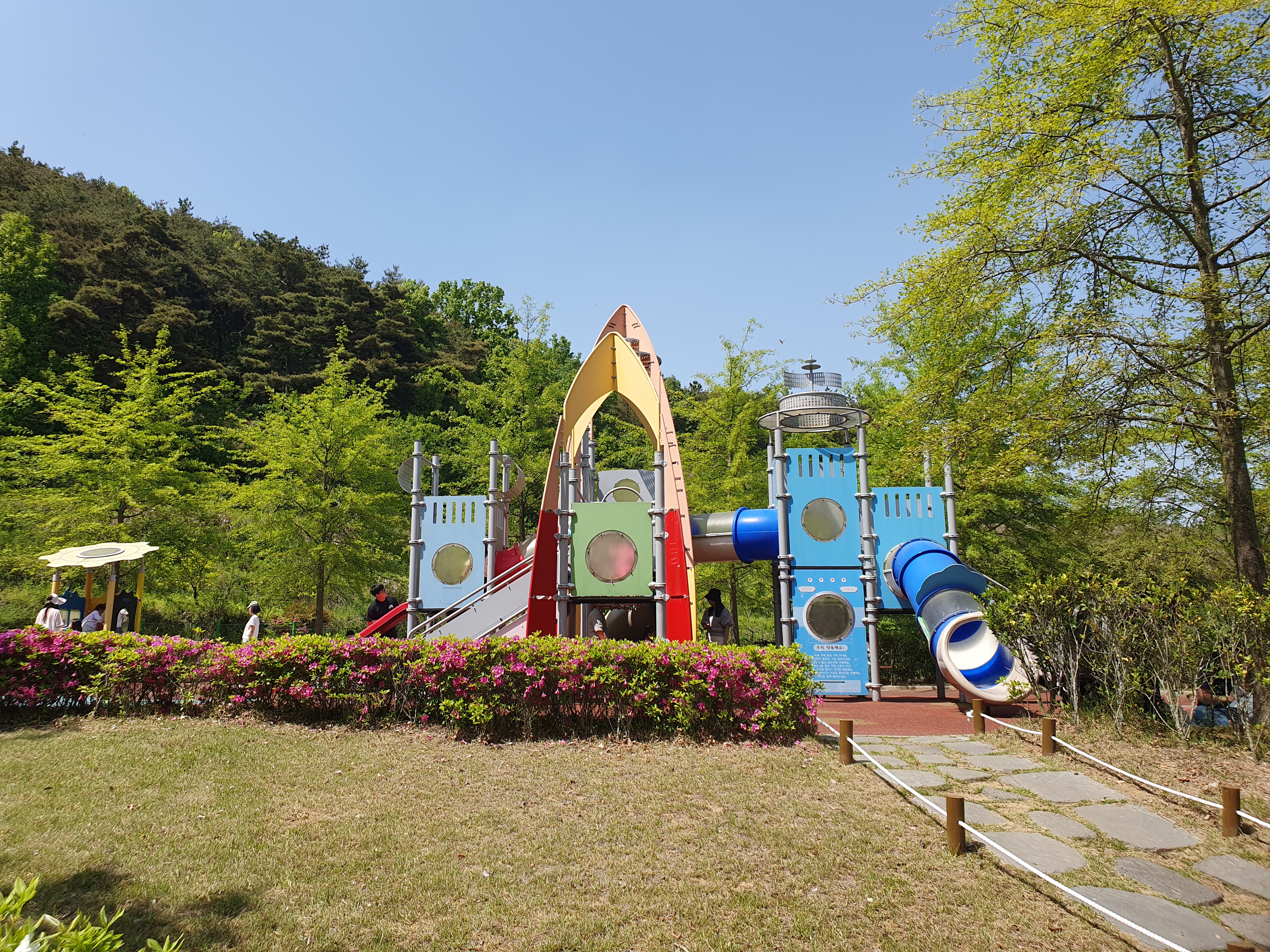 공원 제일 안쪽으로 가면 산속에 놀이터와 레일 썰매장이 있습니다. 아이들이 맑은 자연속에서 신나게 놀 수 있는 공간인거 같습니다.