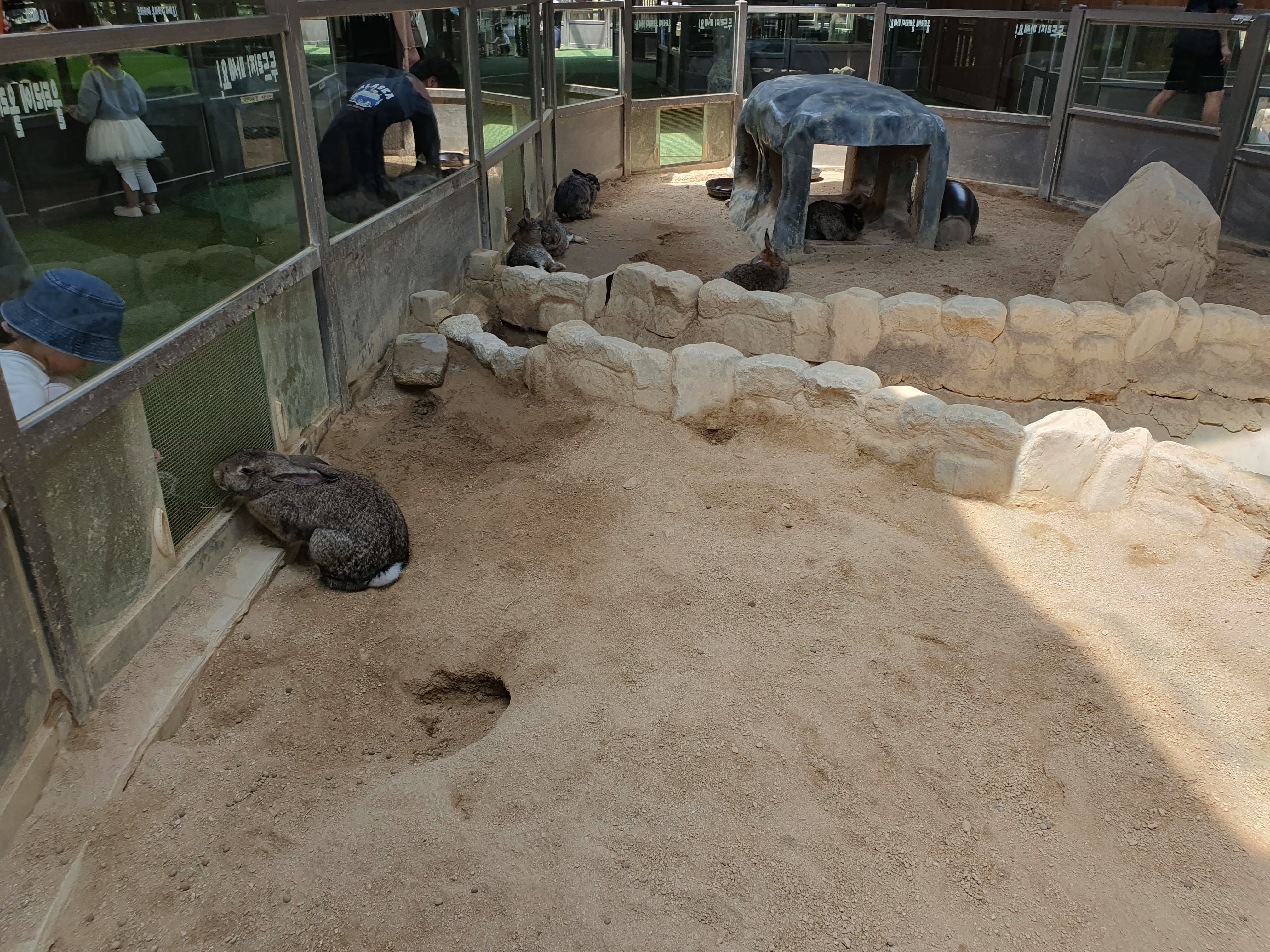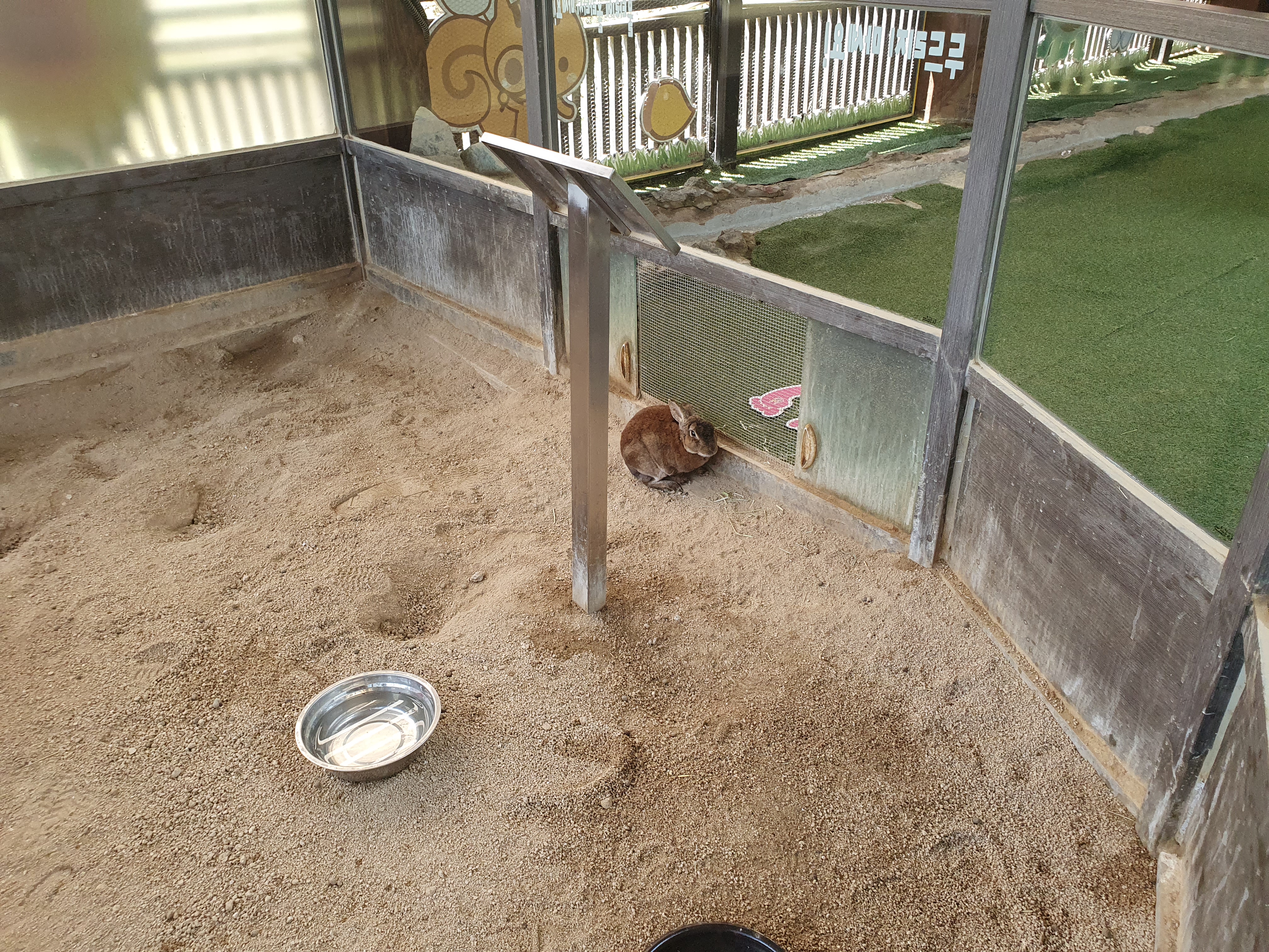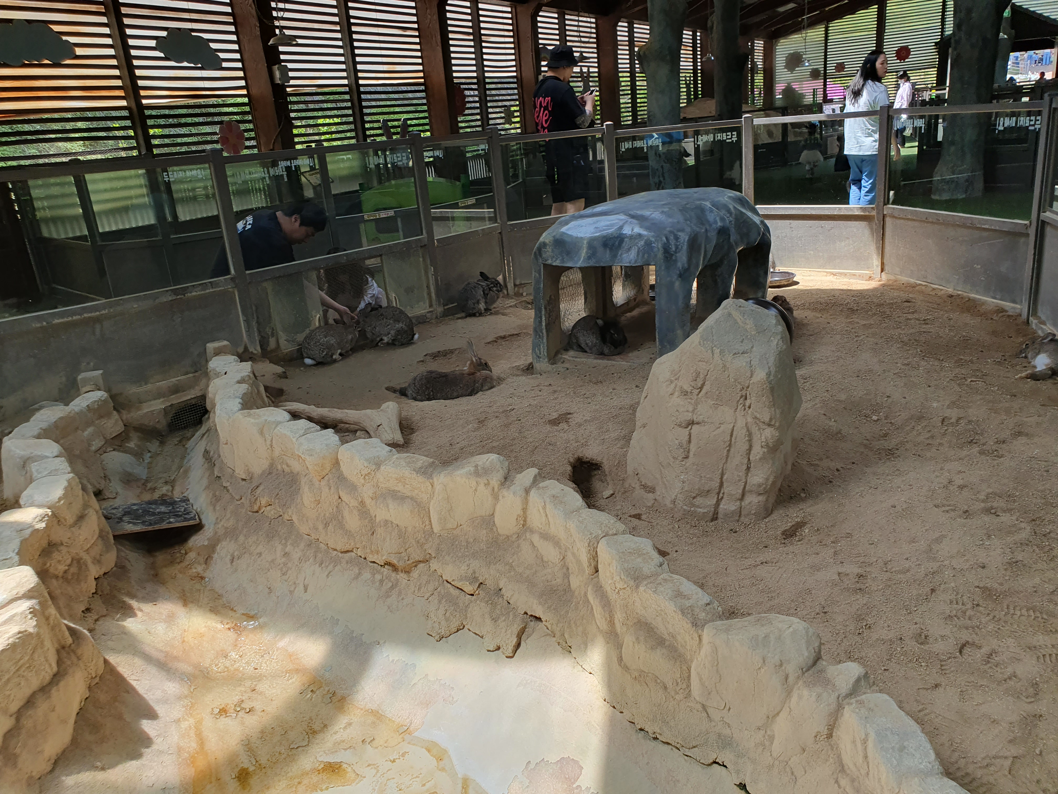 입구통로를 지나 조금 거다 보면 토끼들이 많이 모여있는 토끼 먹이 체험장이 보입니다.