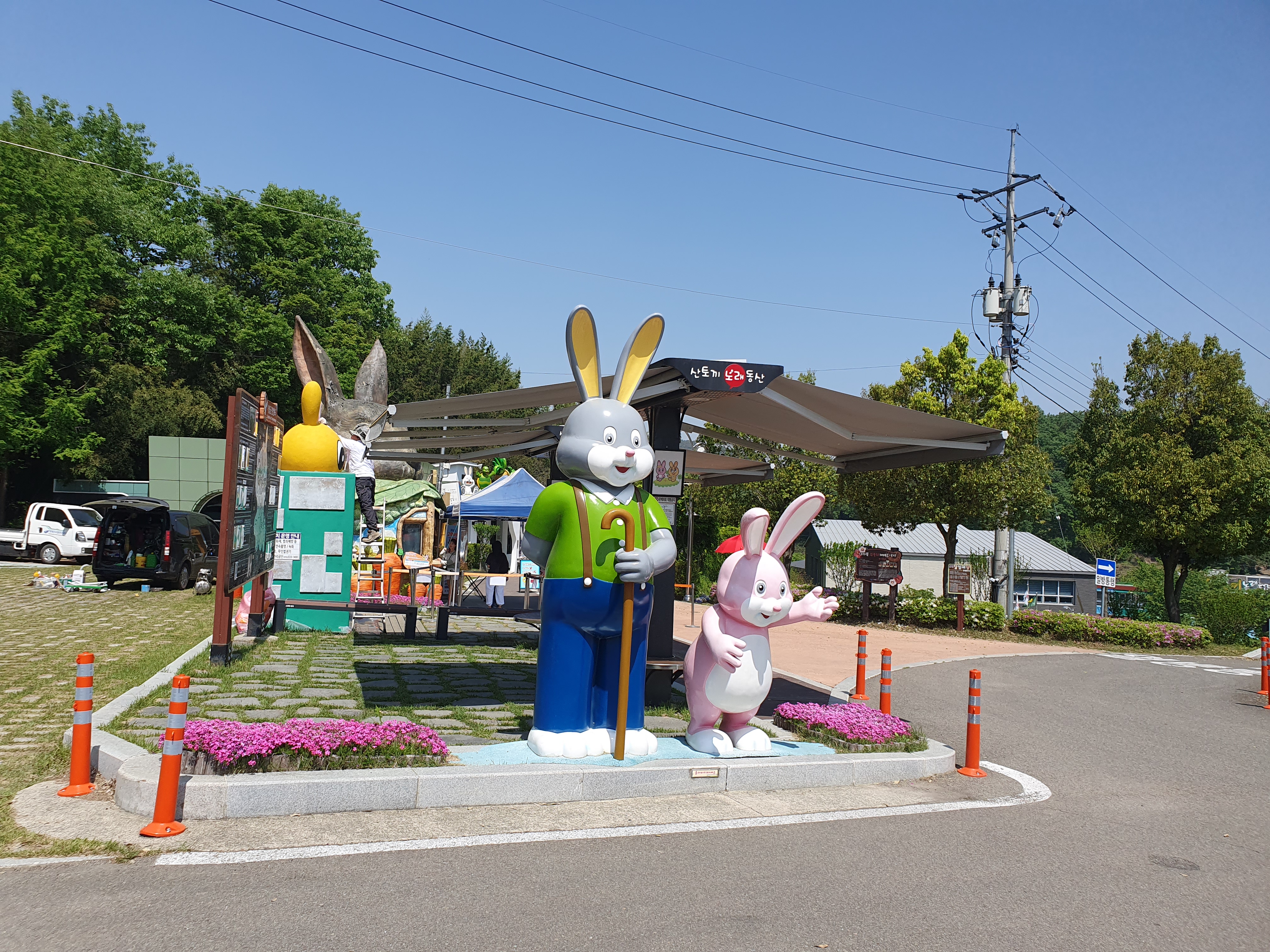 주차장 입구에서부터 토끼 인형이 반기고 있습니다. 들어가는 입구는 좁은데 막상 주차장으로 가면 넓은 공간이 있어 주차하는데는 어려움이 없습니다.