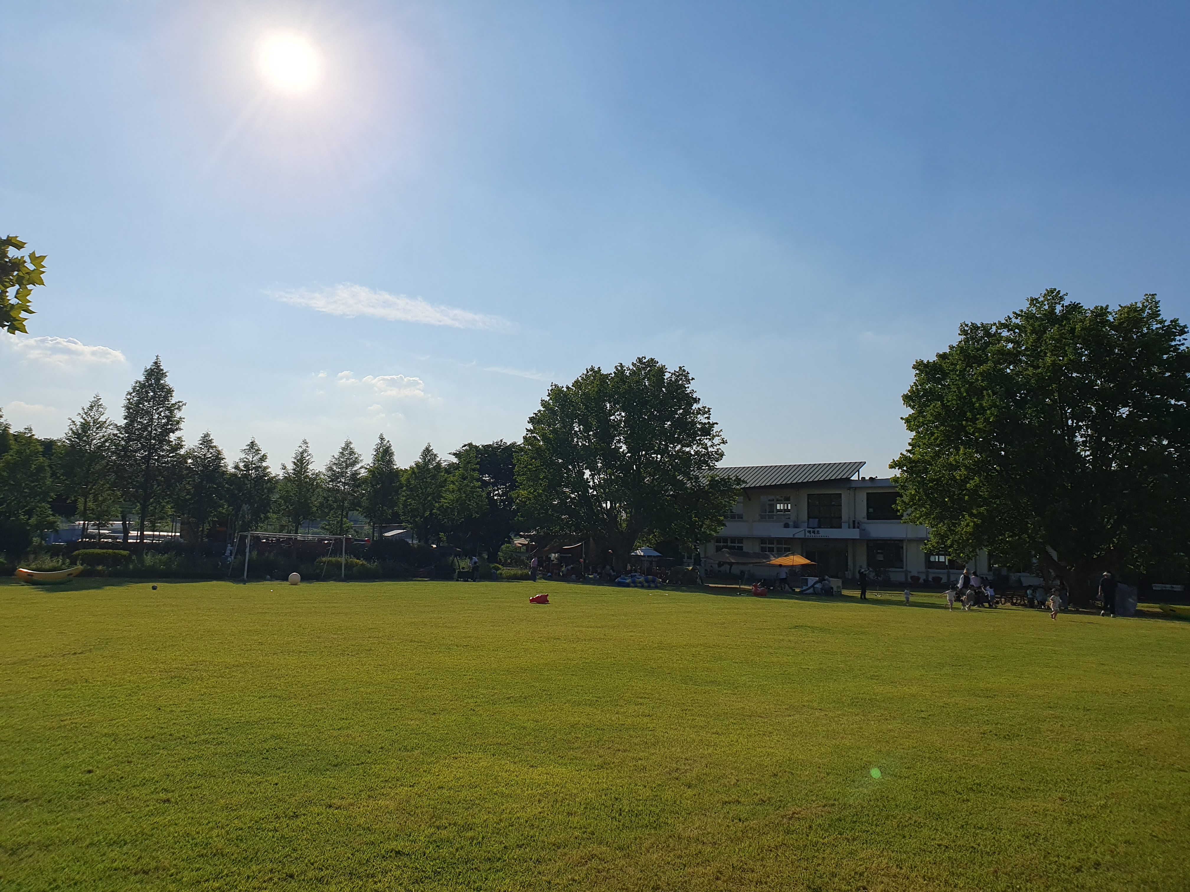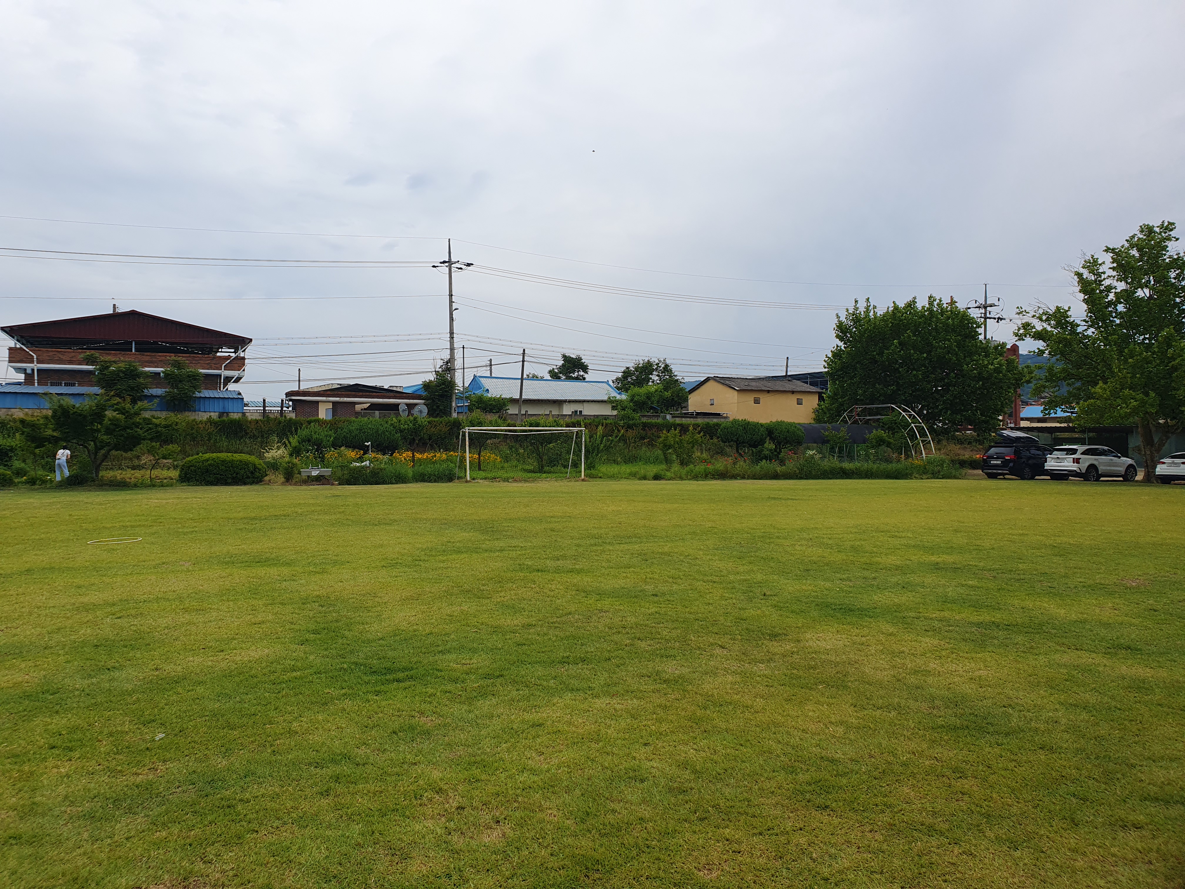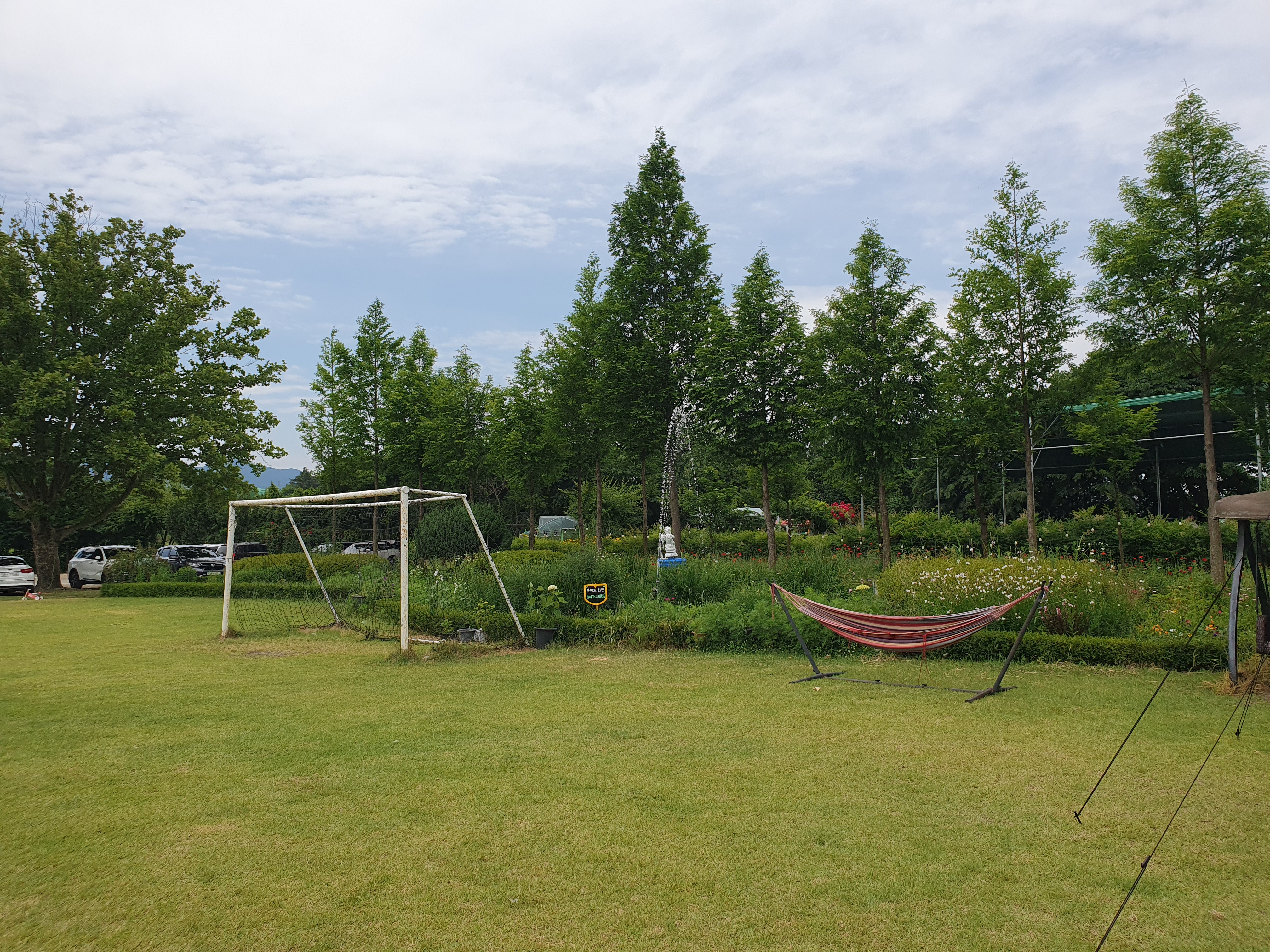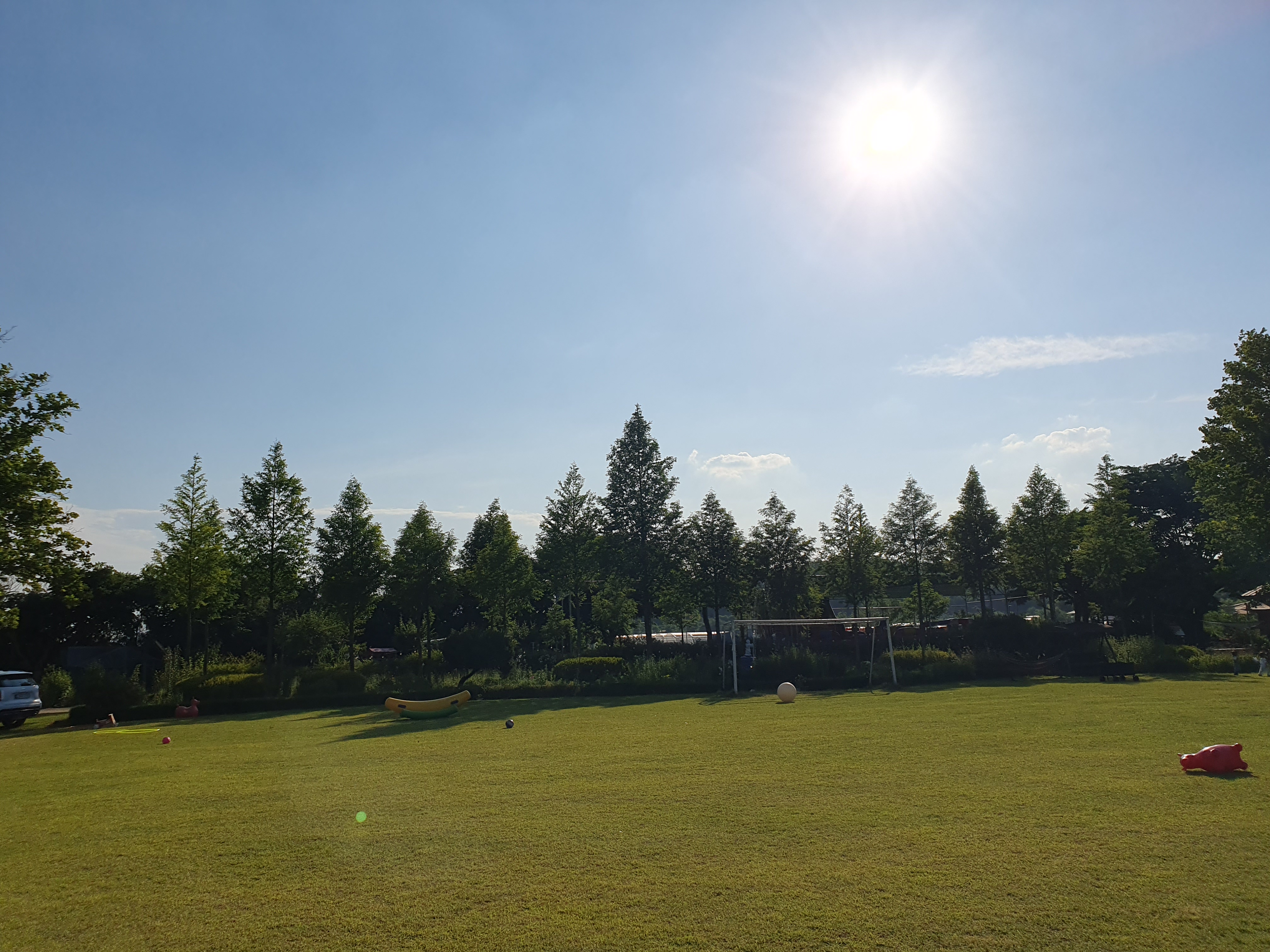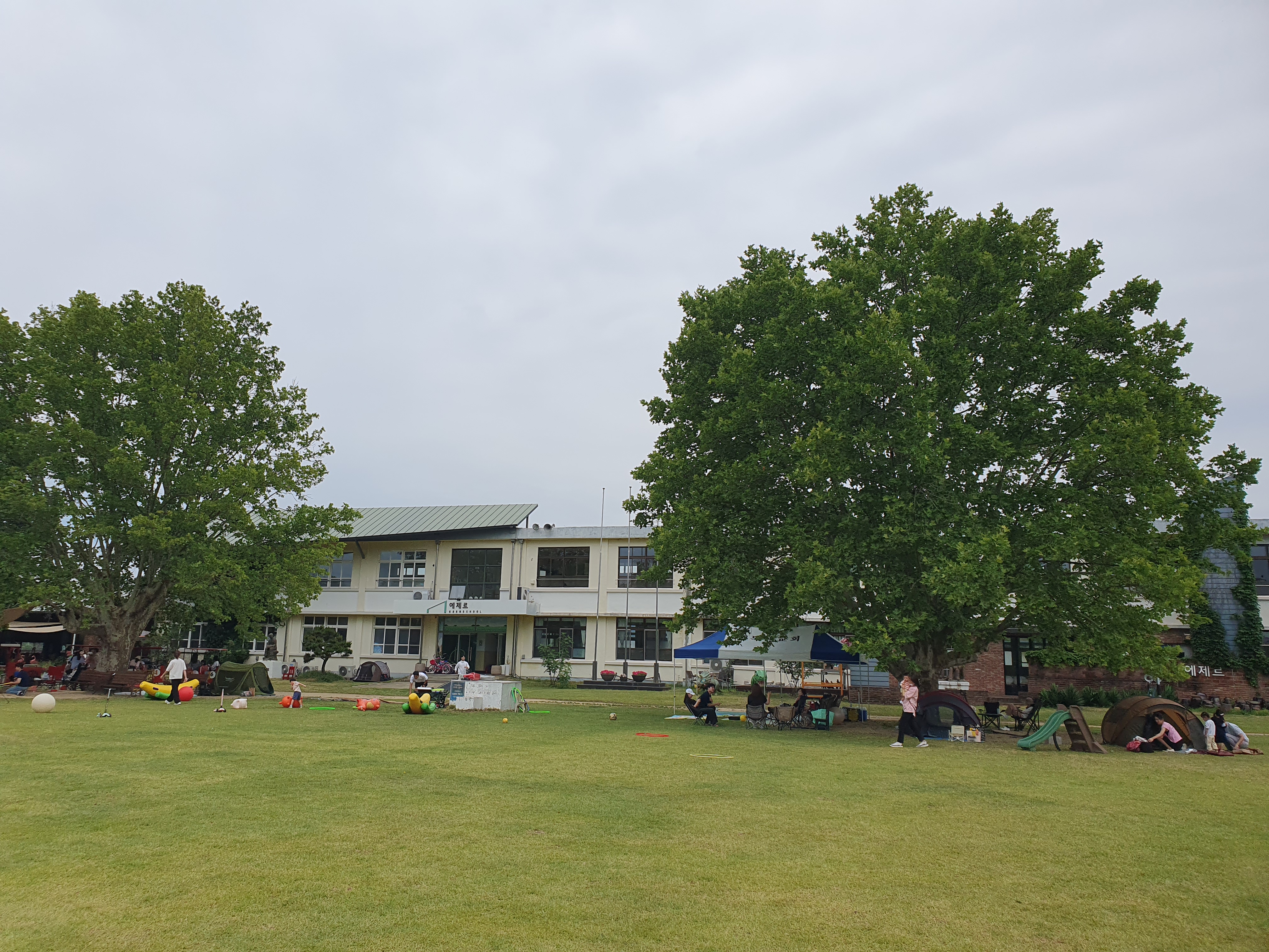 폐교를 캠핑장으로 만든 곳인데 넓은 운동장에 잔디가 깔려 있어 아이들이 신나게 뛰어놀수 있는 곳이었습니다.