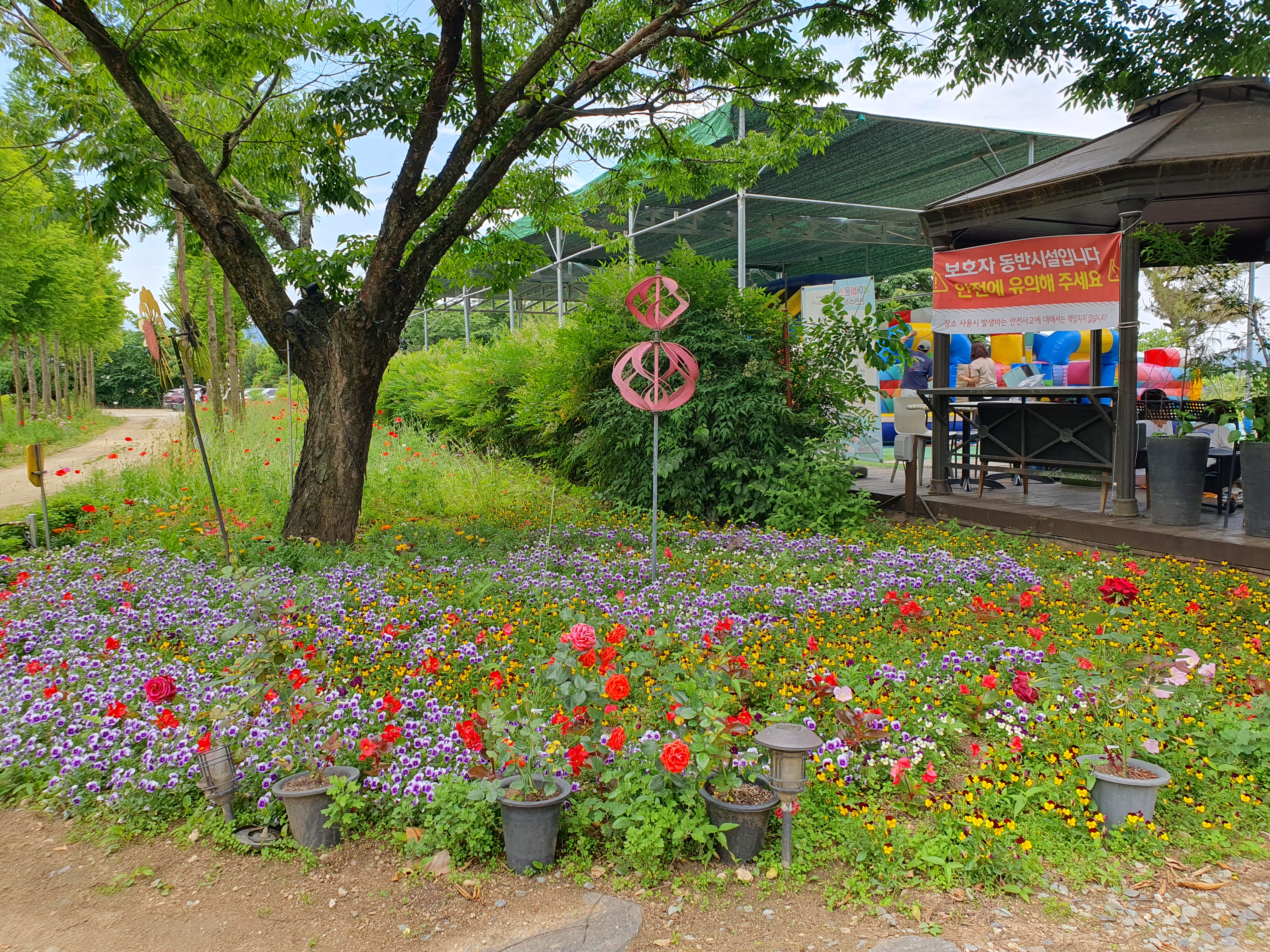 톨게이트를 내려 완전 시골길을 달려서 도착했었는데 가는내내 이렇게 외진곳에 괜찮은 시설이 있을까 하고 고민했었는데 입구를 지나 안에 들어가자 캠핑장이 너무 예뻐보여서 저도 모르게 감탄사가 나왔습니다.
