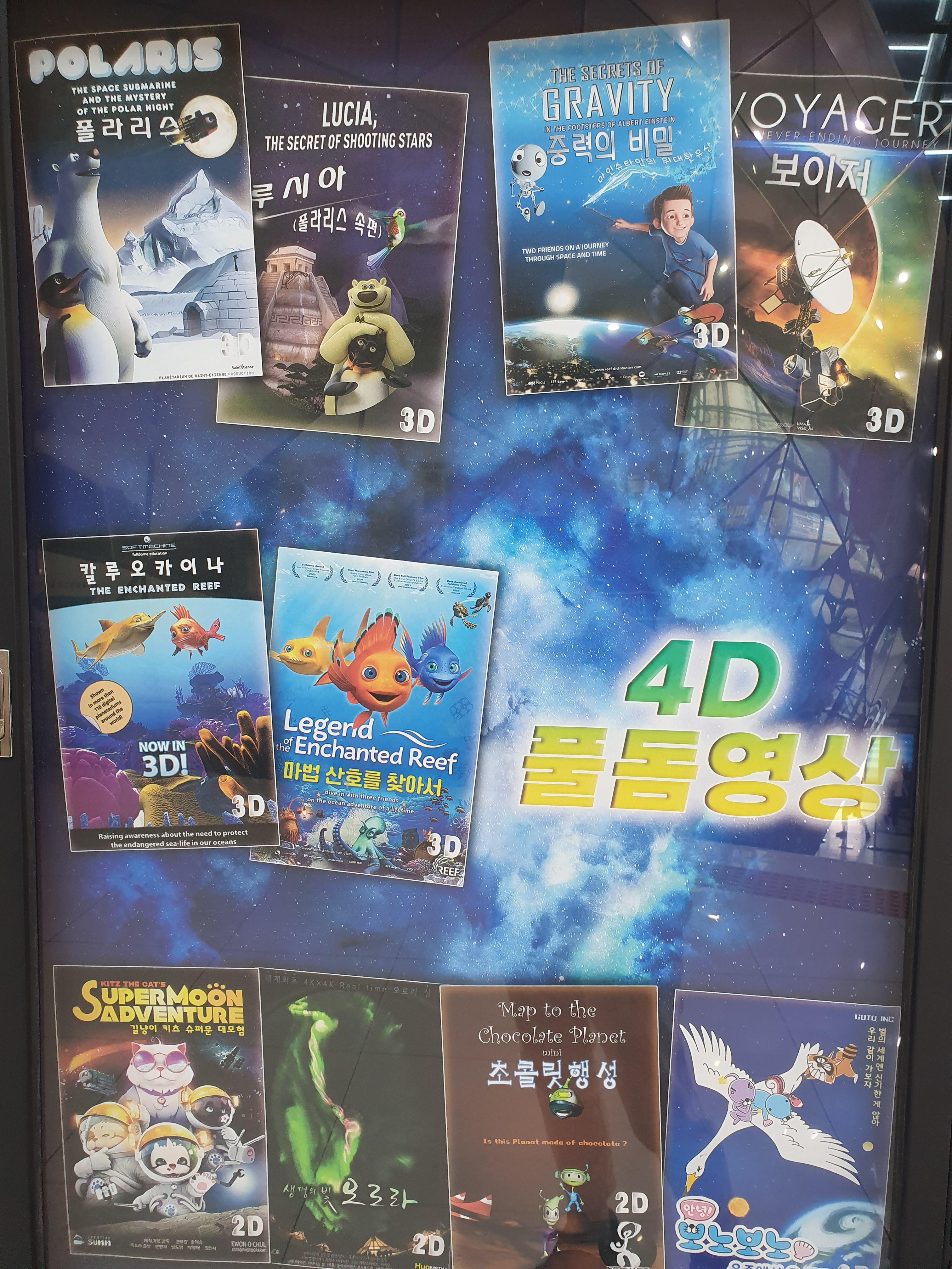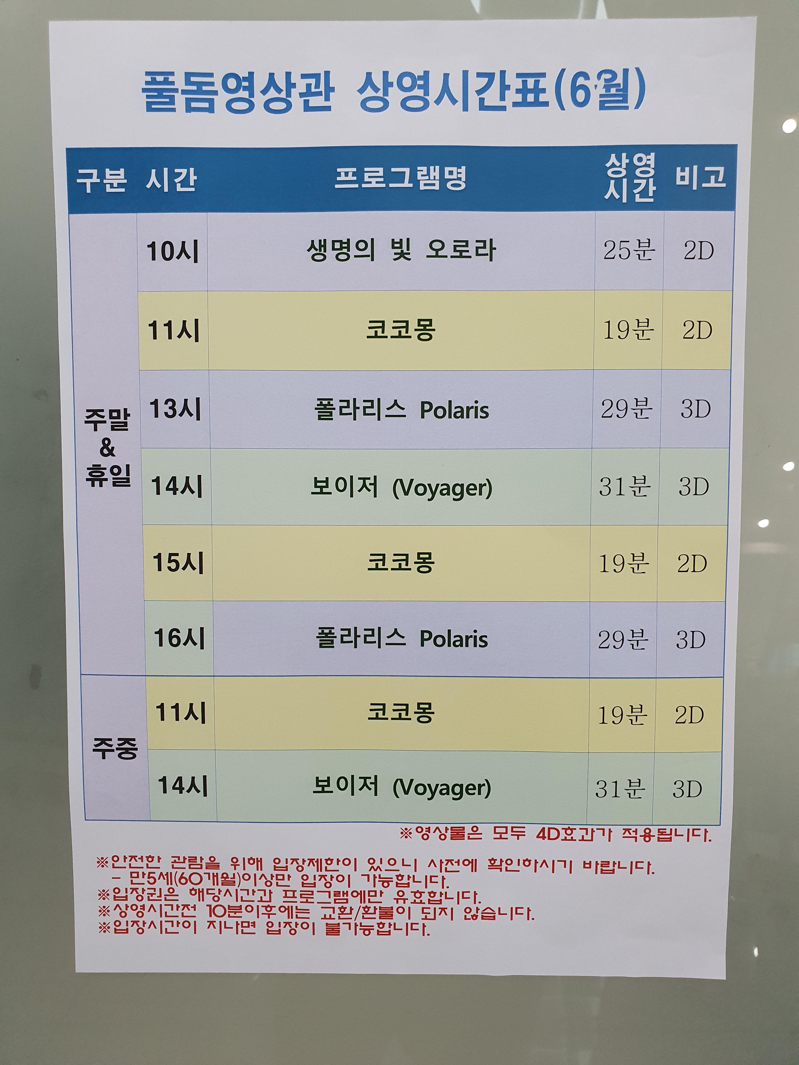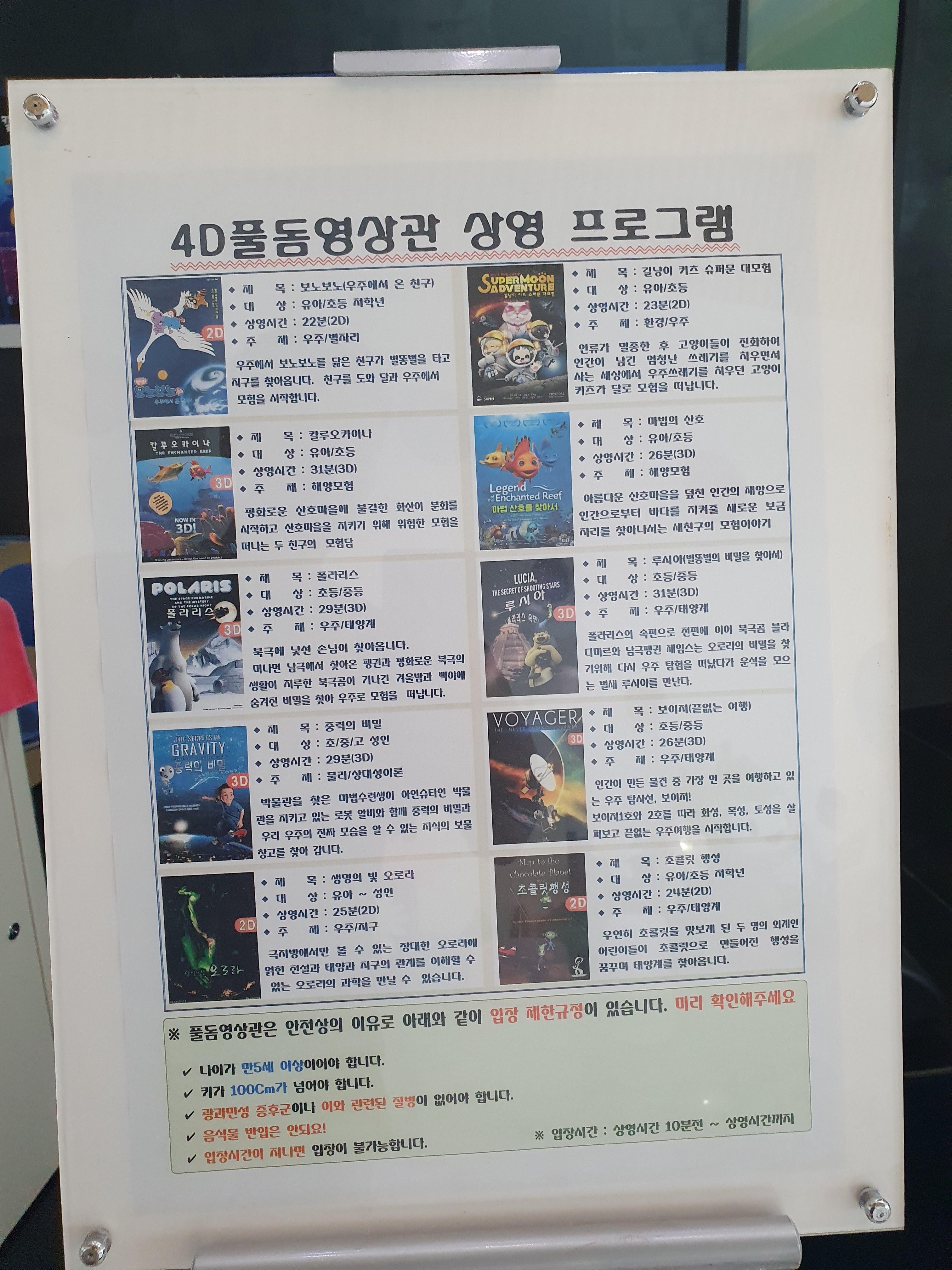 4D영상관에는 여러 영상을 시간대별로 상영하고 있습니다.