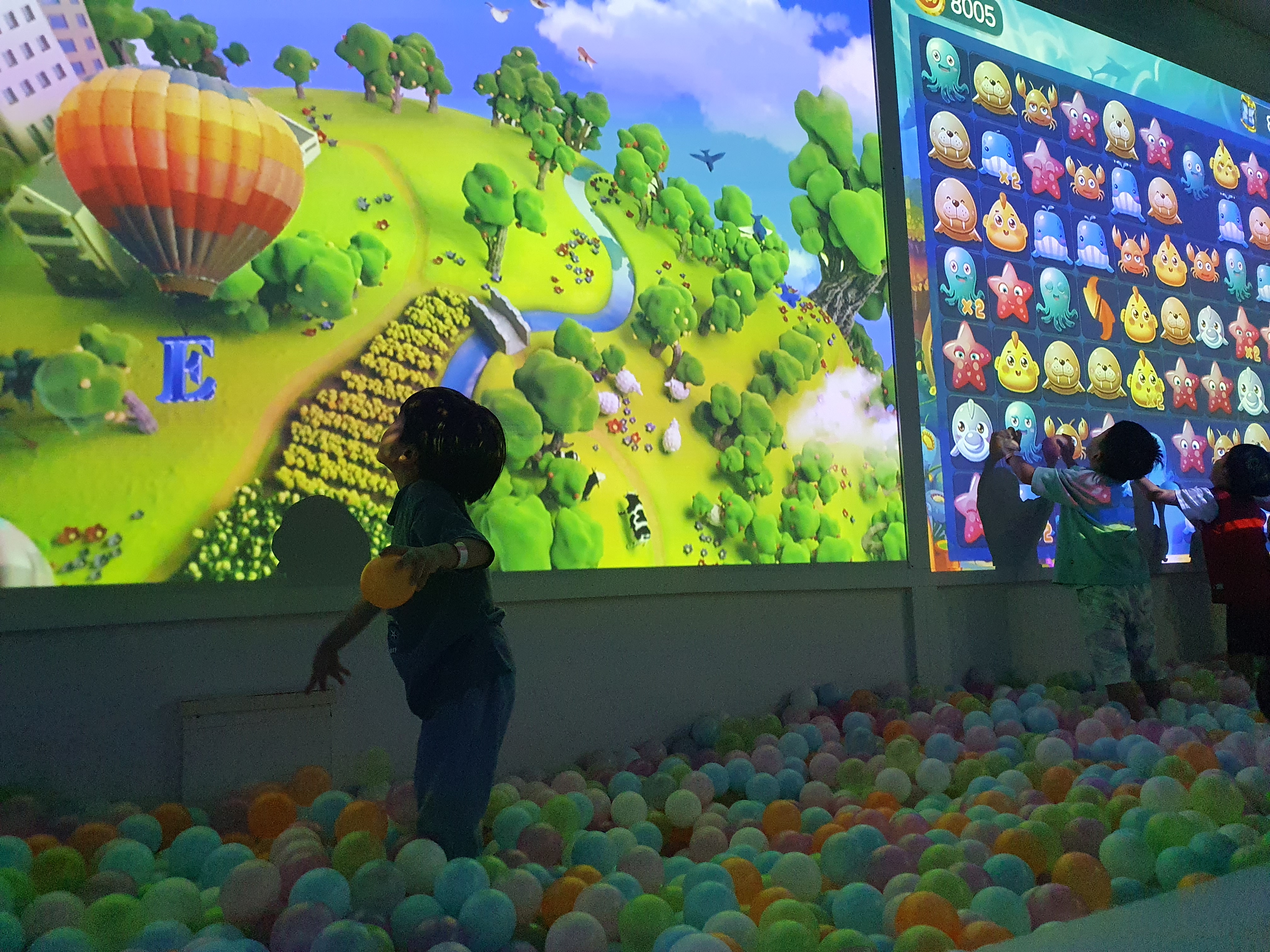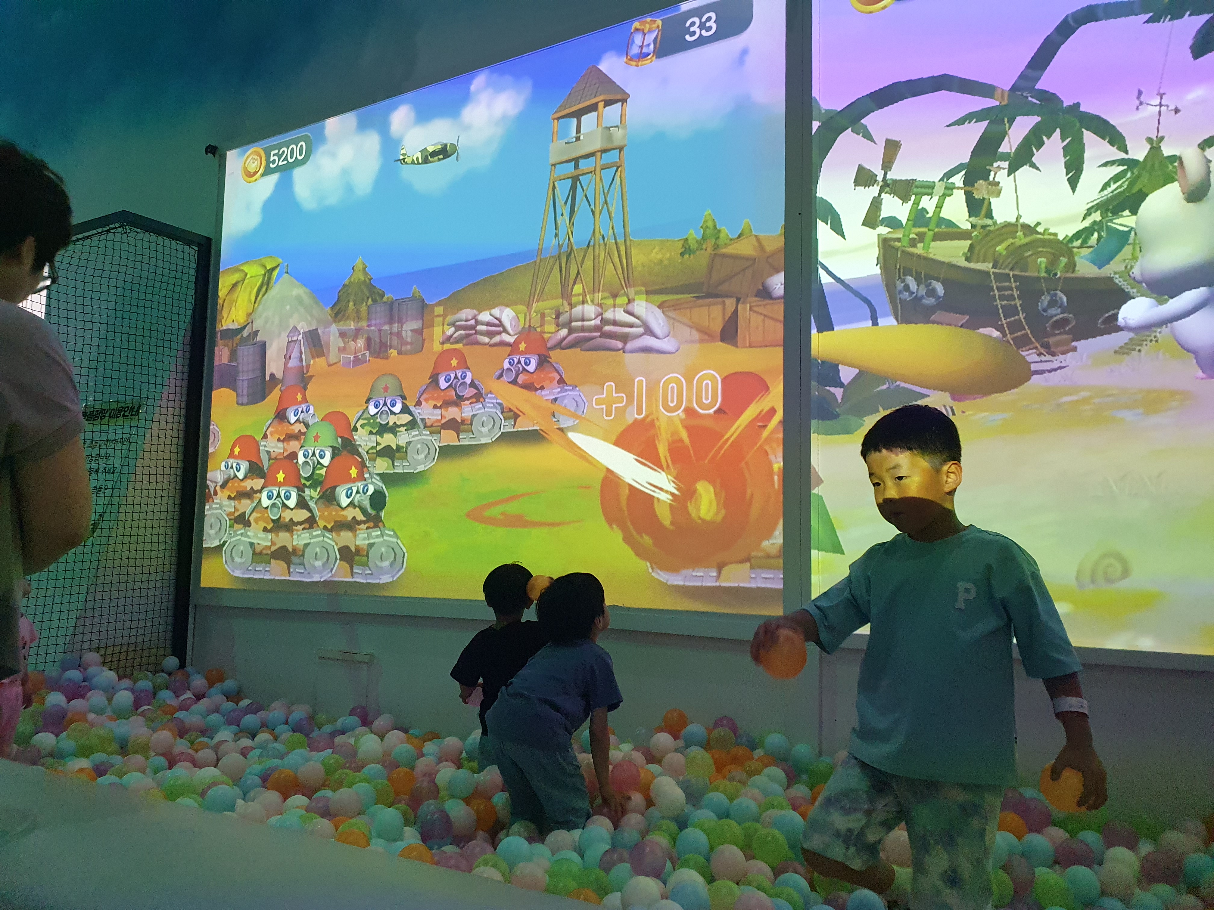 2층 상영관 맞은편에는 아이들이 놀수 있는 영상과 함께 볼풀장이 있어 신나게 놀수 있습니다.