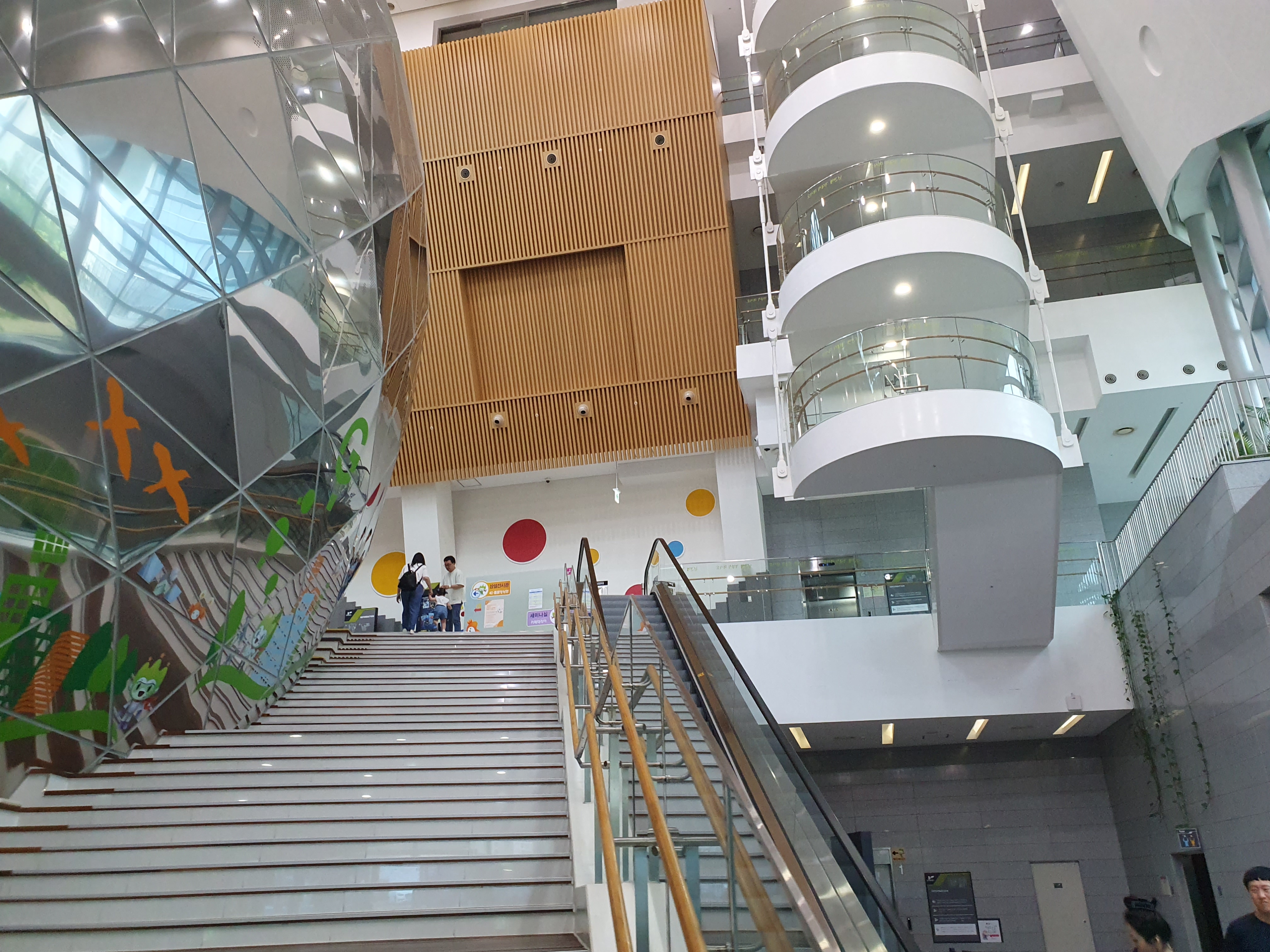 과학관 앞에 넓은 놀이터와 분수 시설이 있었지만 비가 오는 관계로 안에서만 놀았습니다.