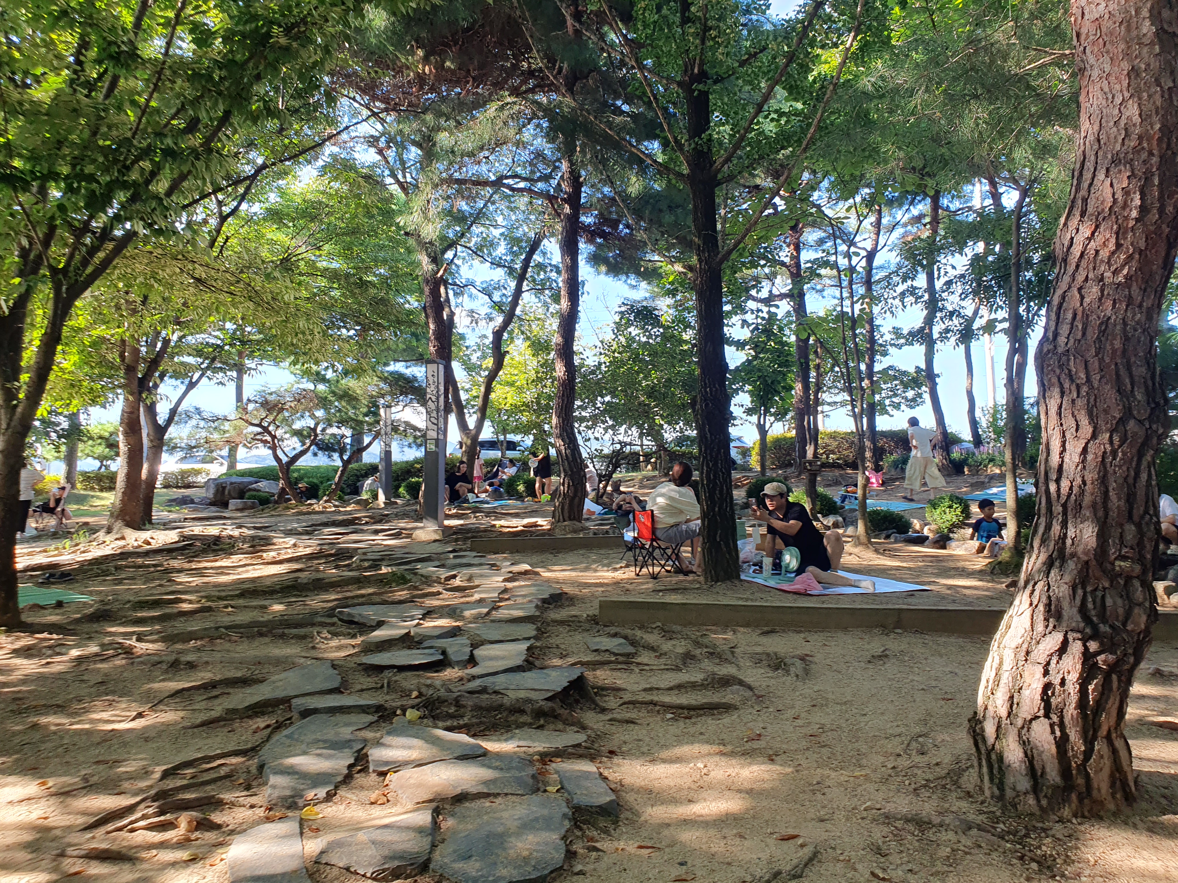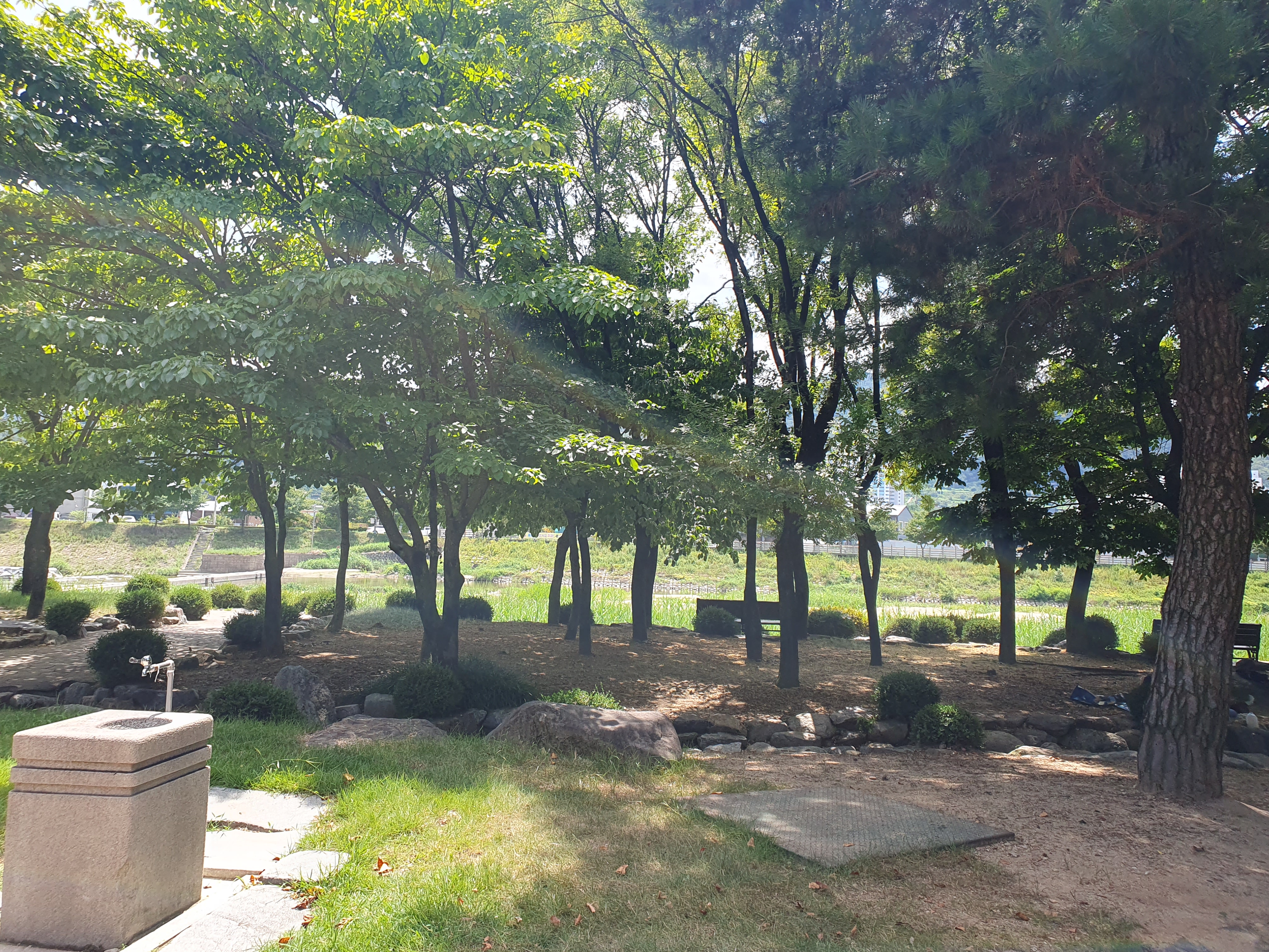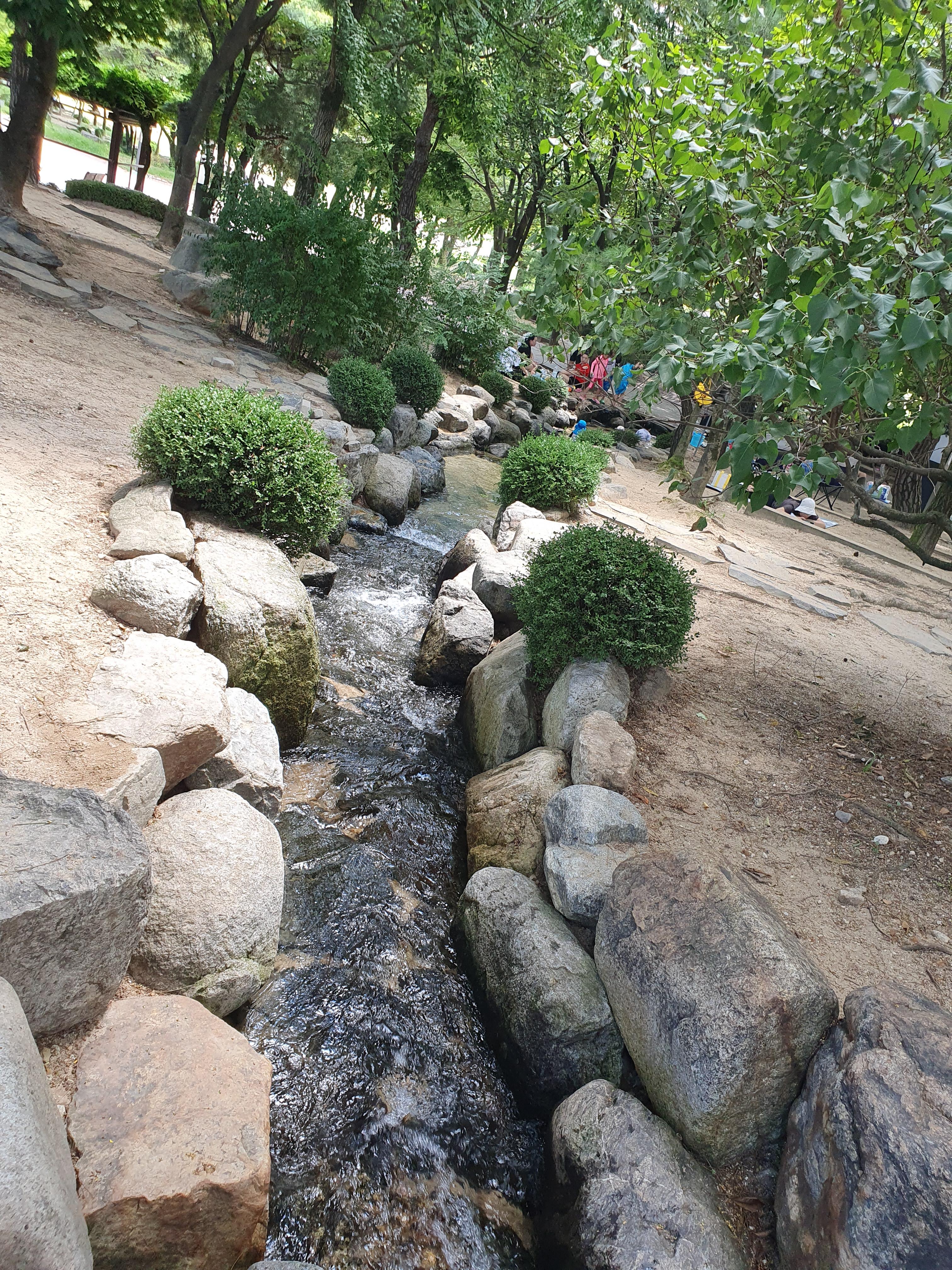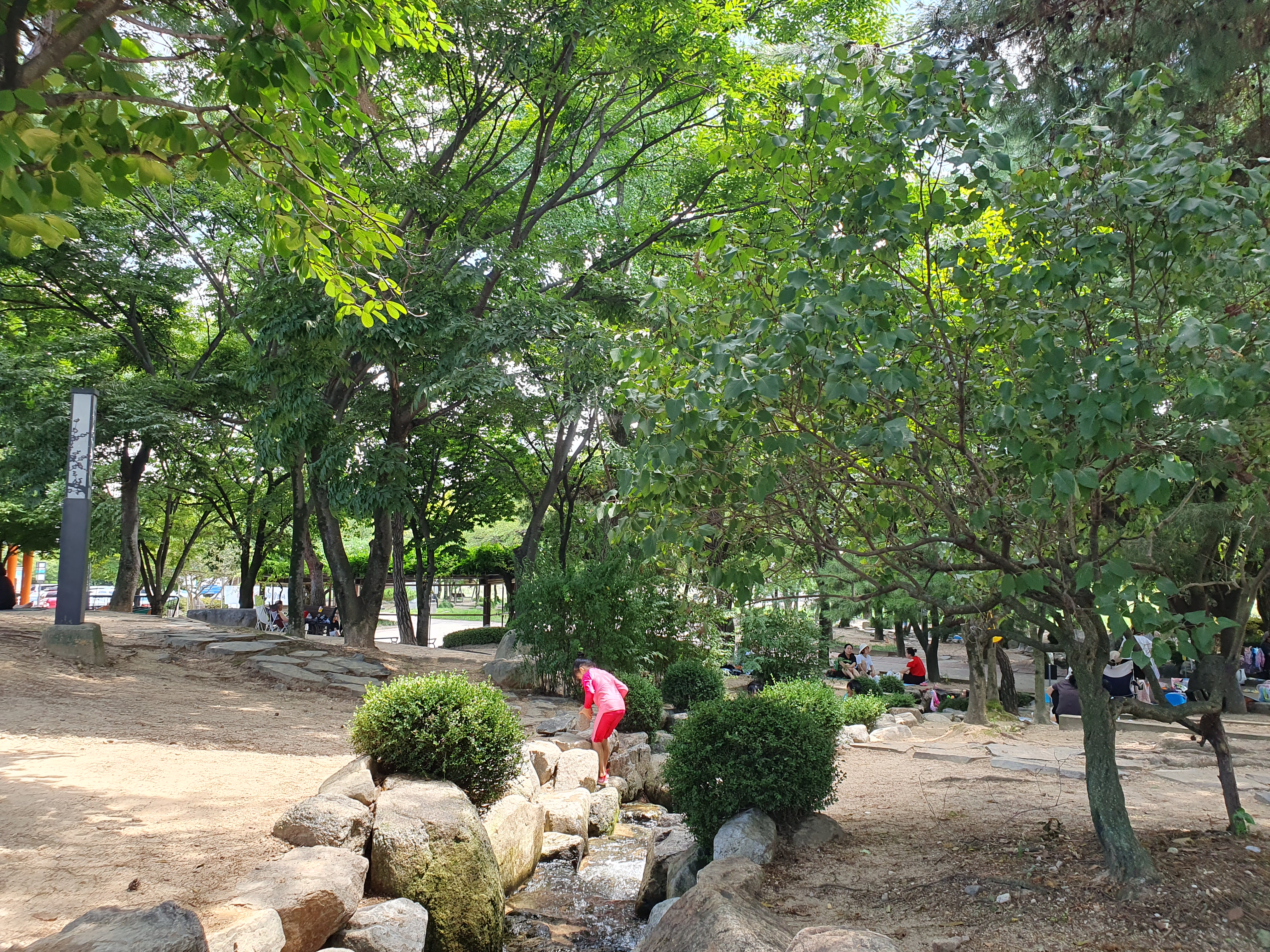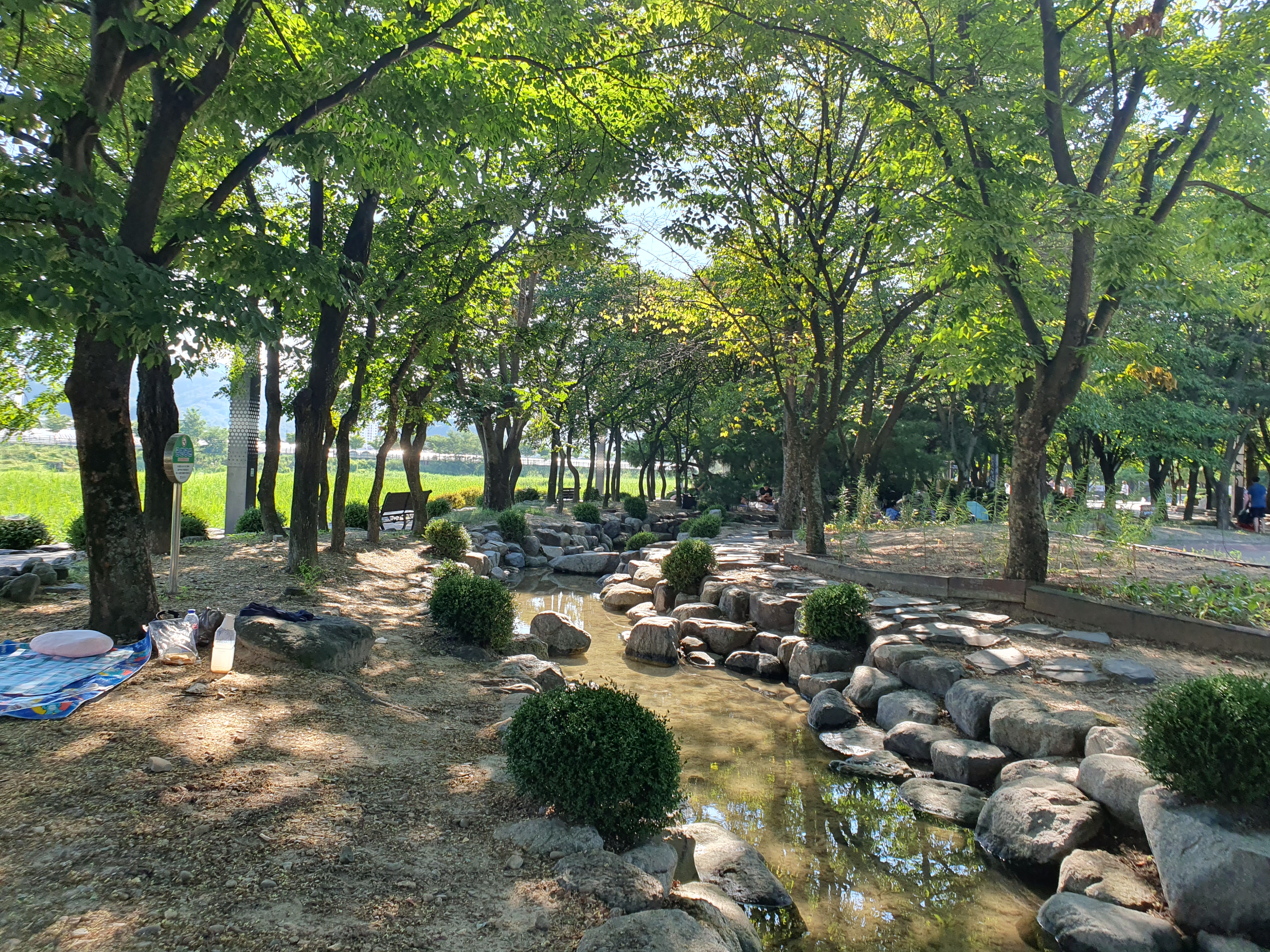 강변공원은 공원안에 인공적으로 계곡을 만들었지만 바로 옆에 강이 흐르고 있고 나무도 많아 산속에 있는 듯한 느낌이 듭니다.