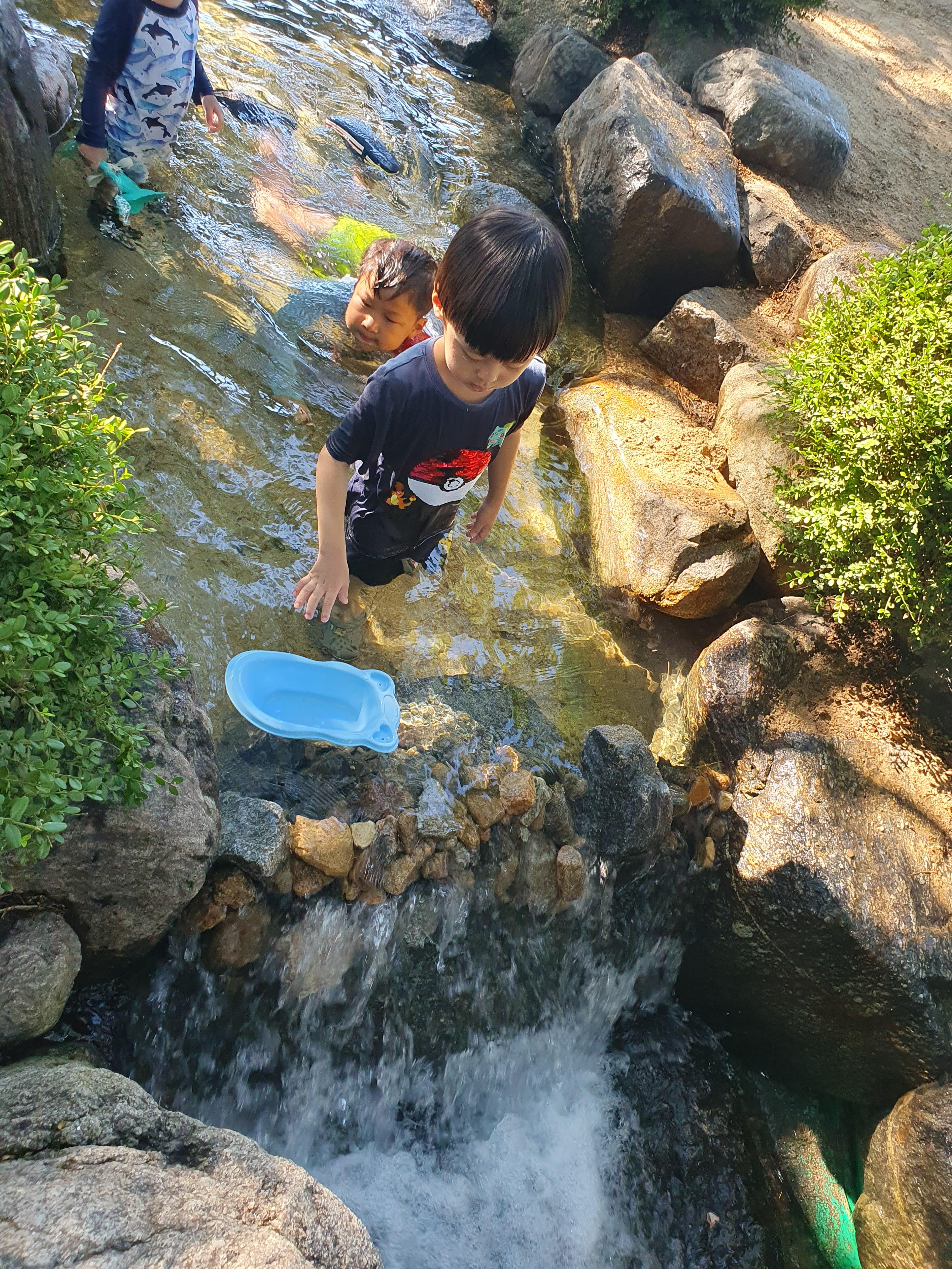 산속은 아니지만 아이들이 자연속에 있는 듯한 깨끗한 계곡에서 물놀이를 할 수 있는 김천 강변 공원이었습니다.