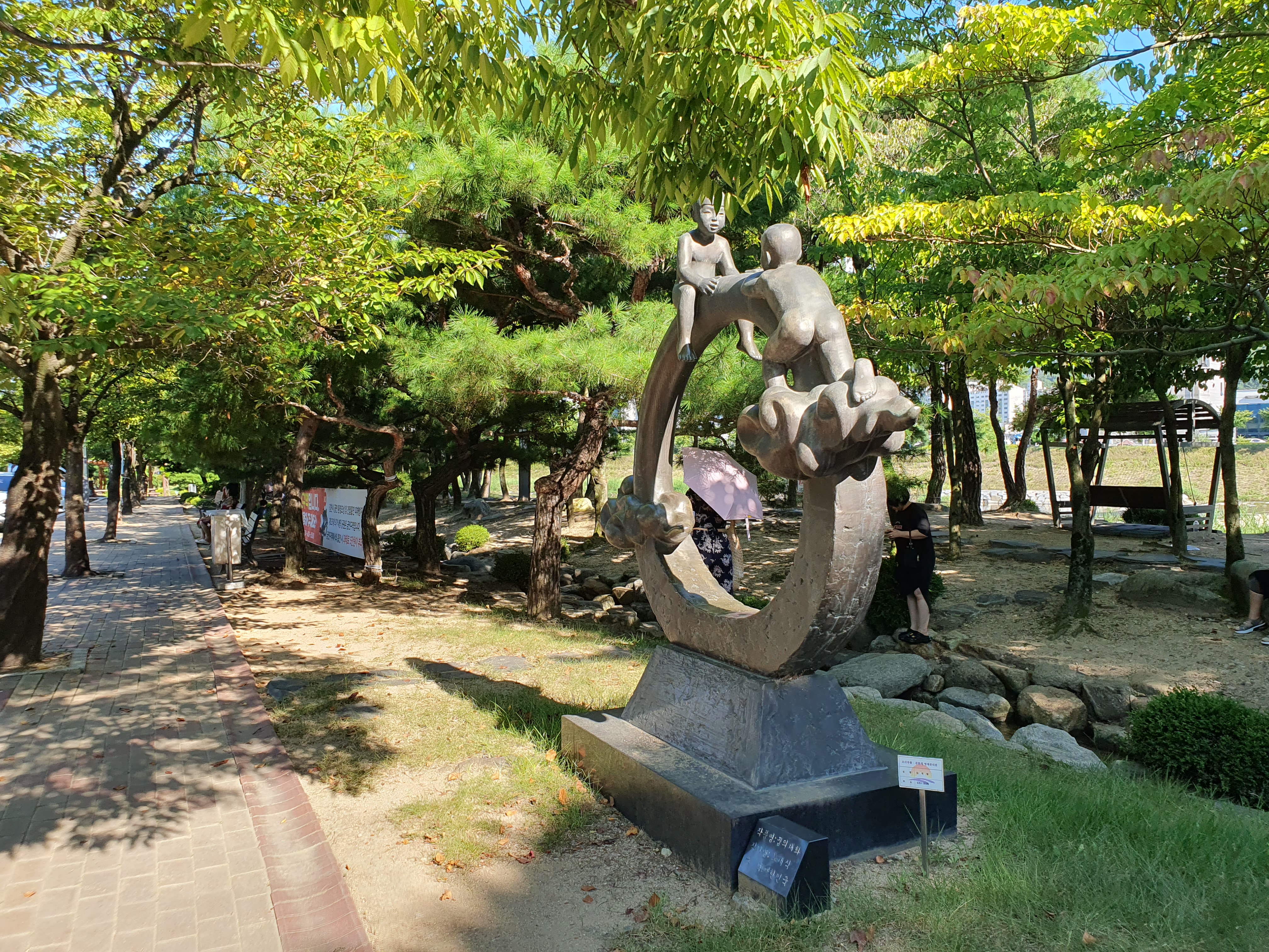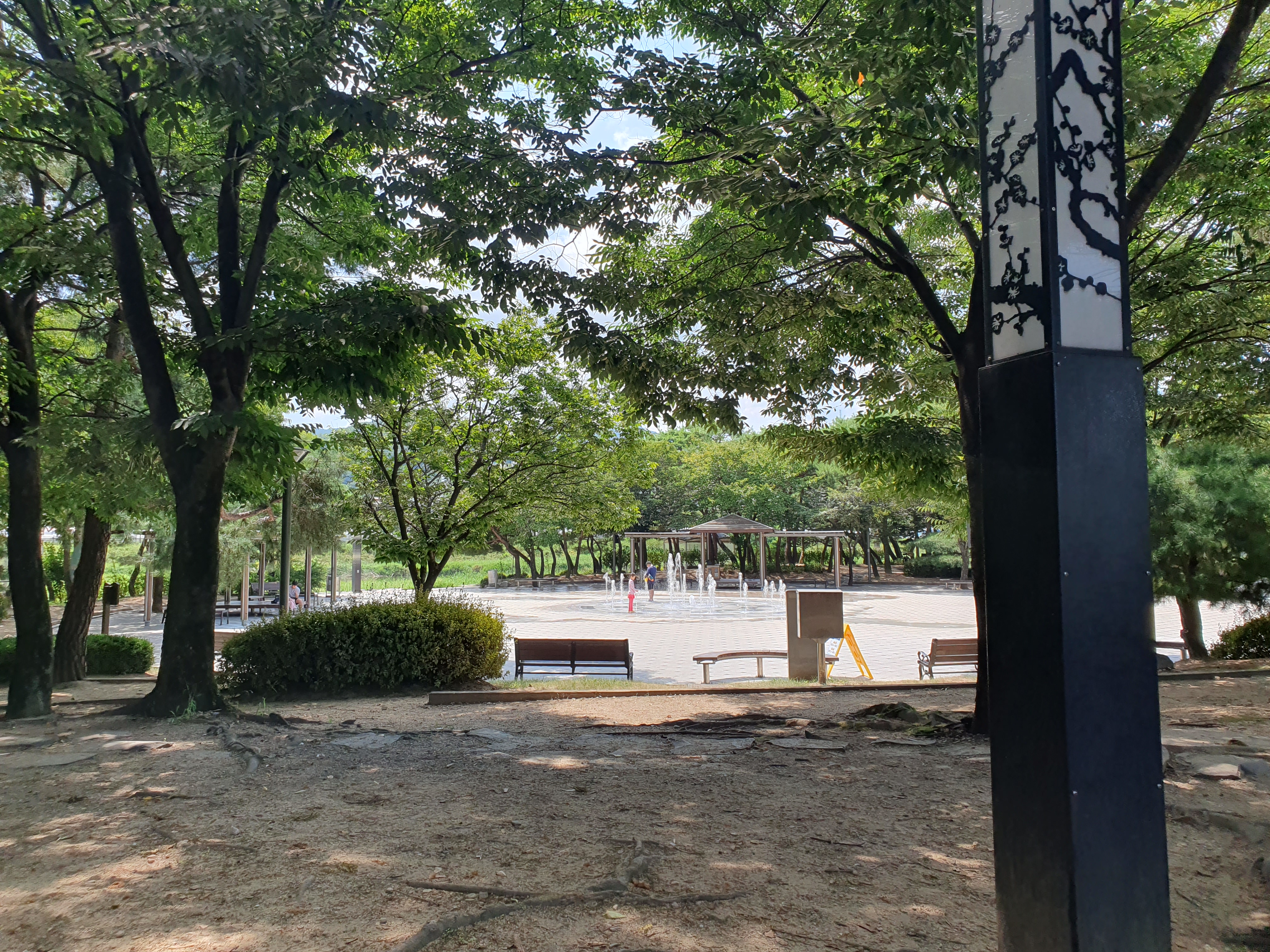 공원 중앙에는 분수놀이터가 있어 아이들이 신나게 물놀이를 할 수 있습니다.
