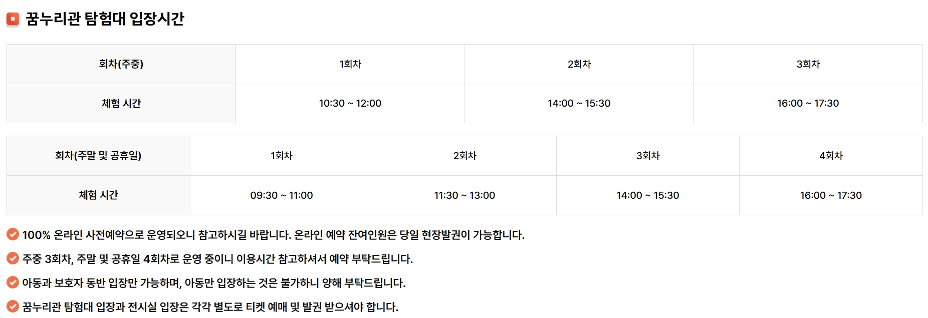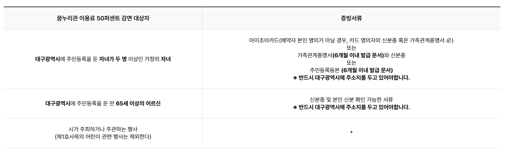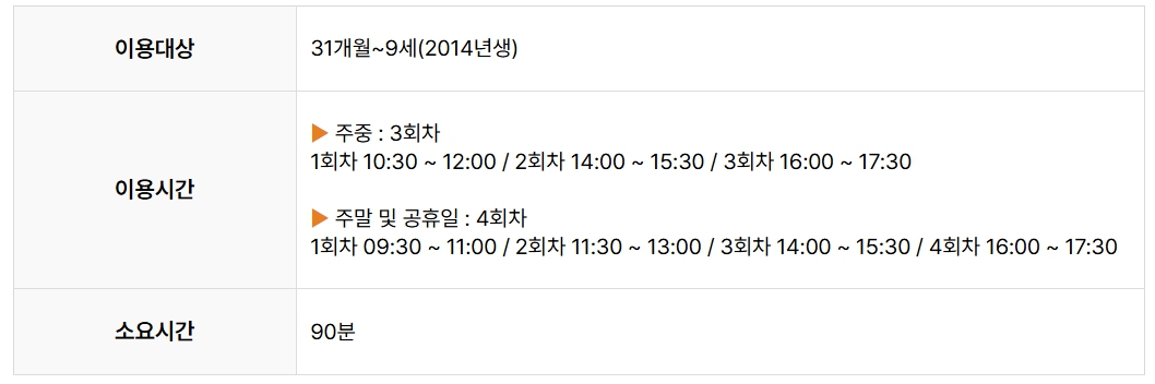 1층은 31개월 미만만 이용할 수 있어 2층에 예약했습니다. 이용대상과 요금은 아래와 같습니다.