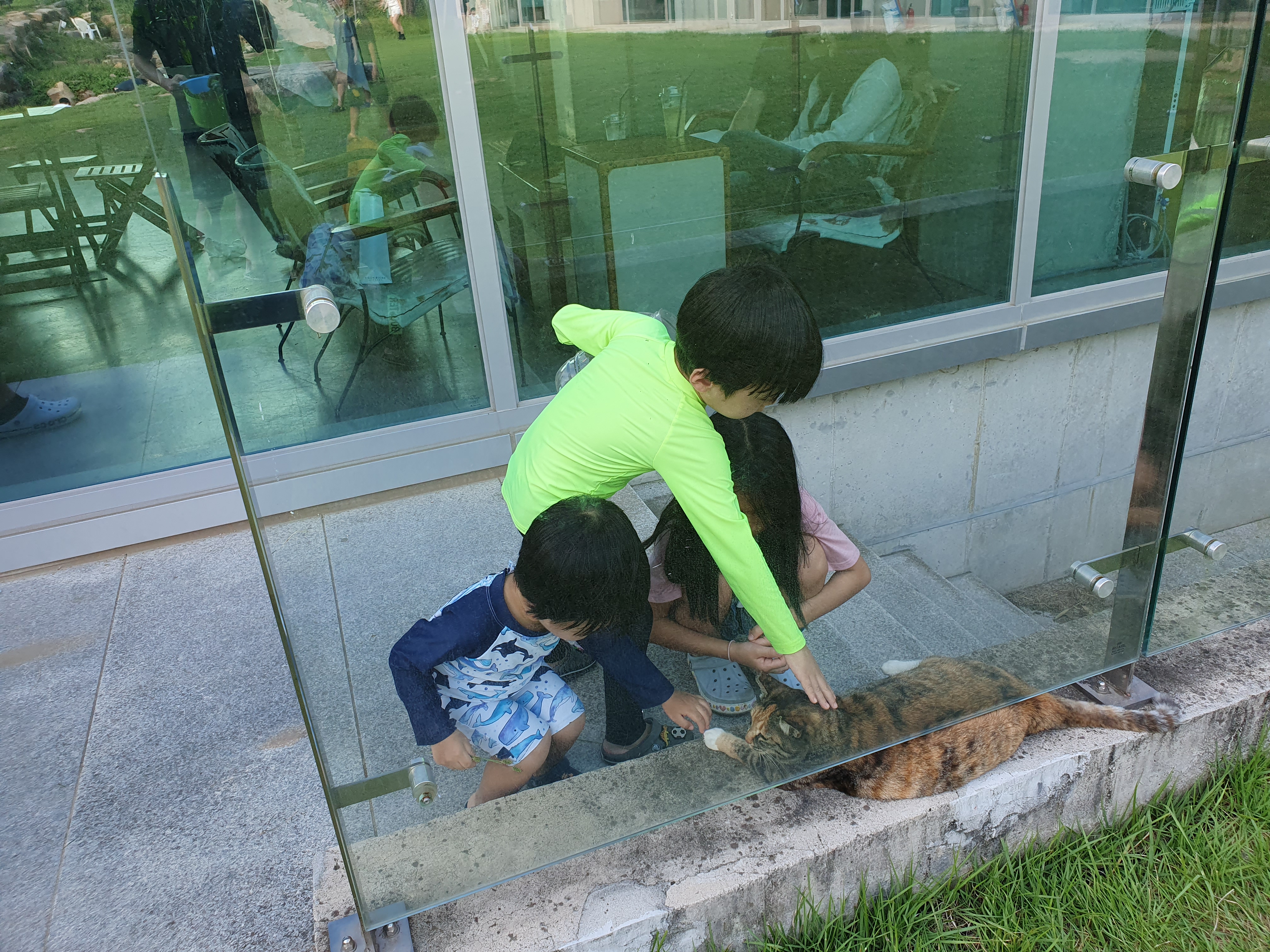 카페 주변으로 귀여운 고양이들이 있어 아이들이 직접 만지고 한참동안 구경했습니다.