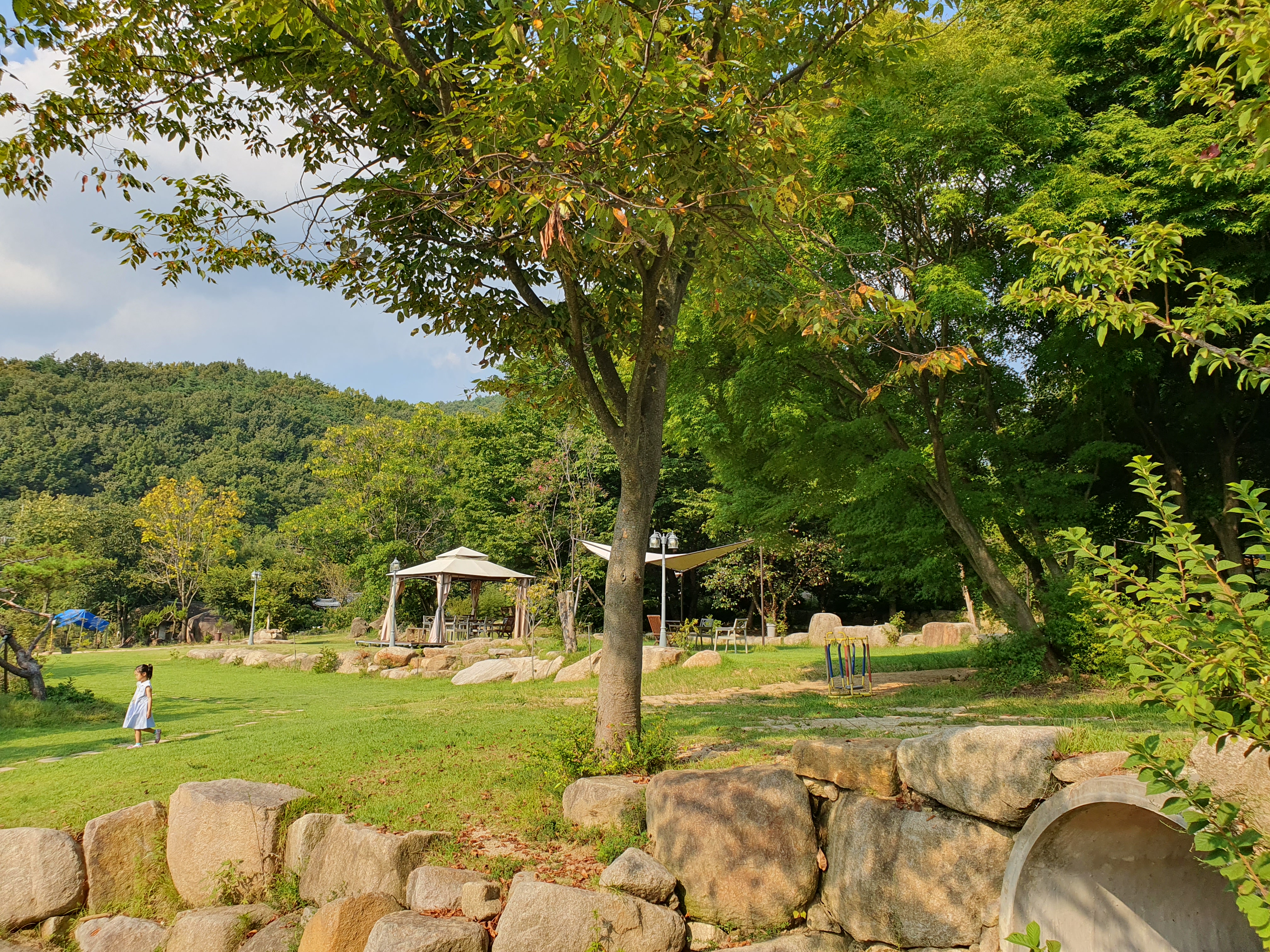 휴일에 아이들이 신나게 뛰어놀 수 있는 곳을 찾다가 김천에 위치한 에제르 캠핑장을 알게 되어서 바로 방문했습니다. 대구에서 고속도로를 타야 하긴 하지만 한시간 거리밖에 되지 않