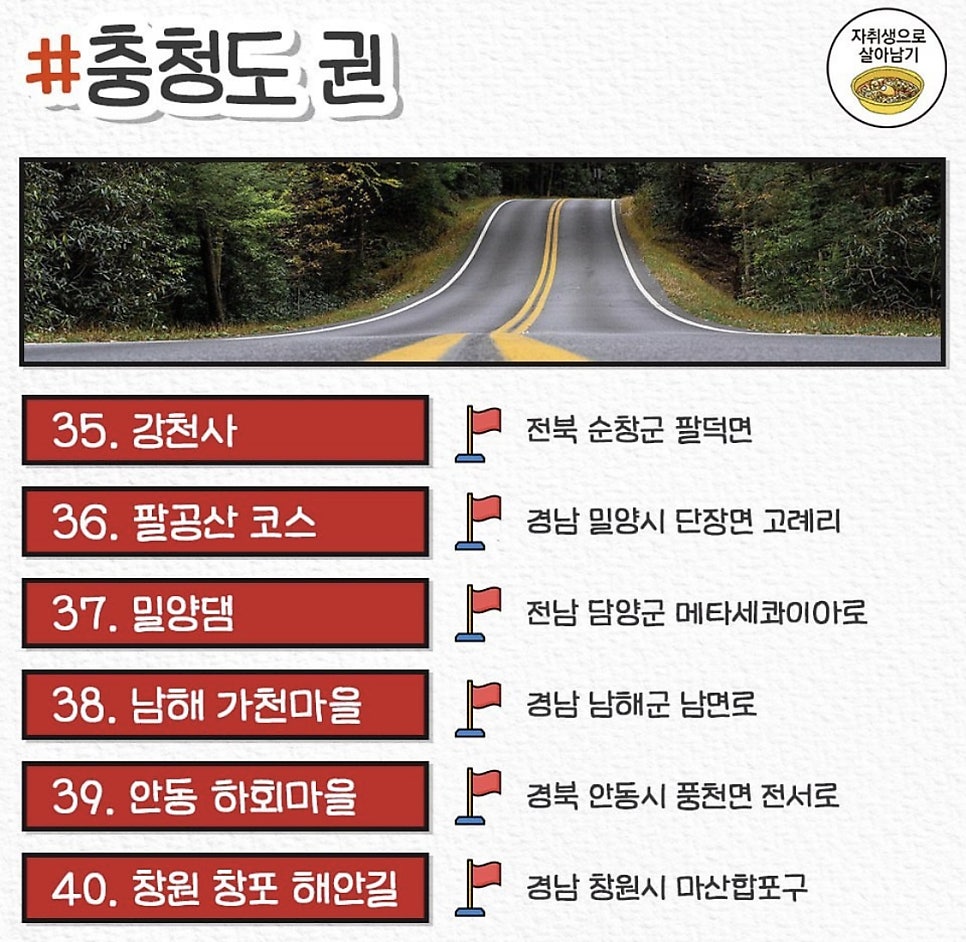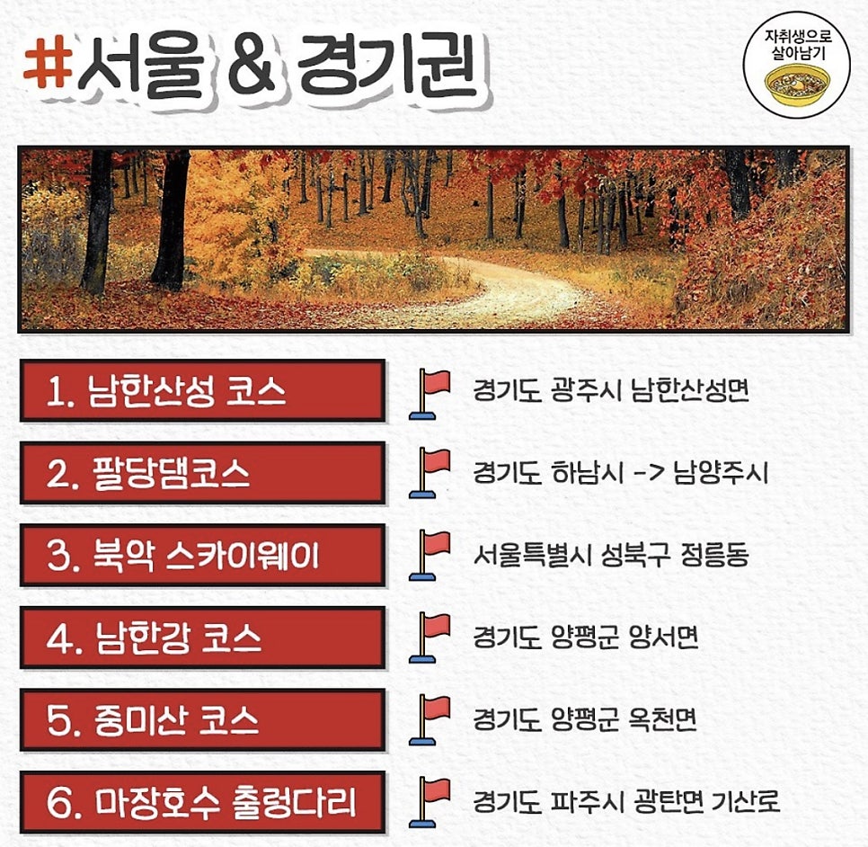 어느덧 뜨거운 여름이 지나고 선선한 바람이 부는 가을이 다가왔습니다. 가을 정취를 물씬 느낄 수 있는 드라이브코스 소개해드립니다.