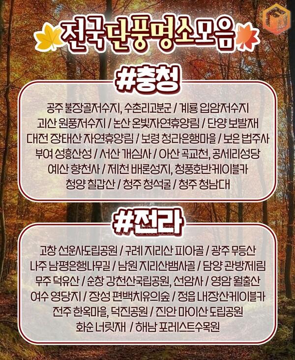 2024년 단풍지도(아름다운 단풍명소 모음)