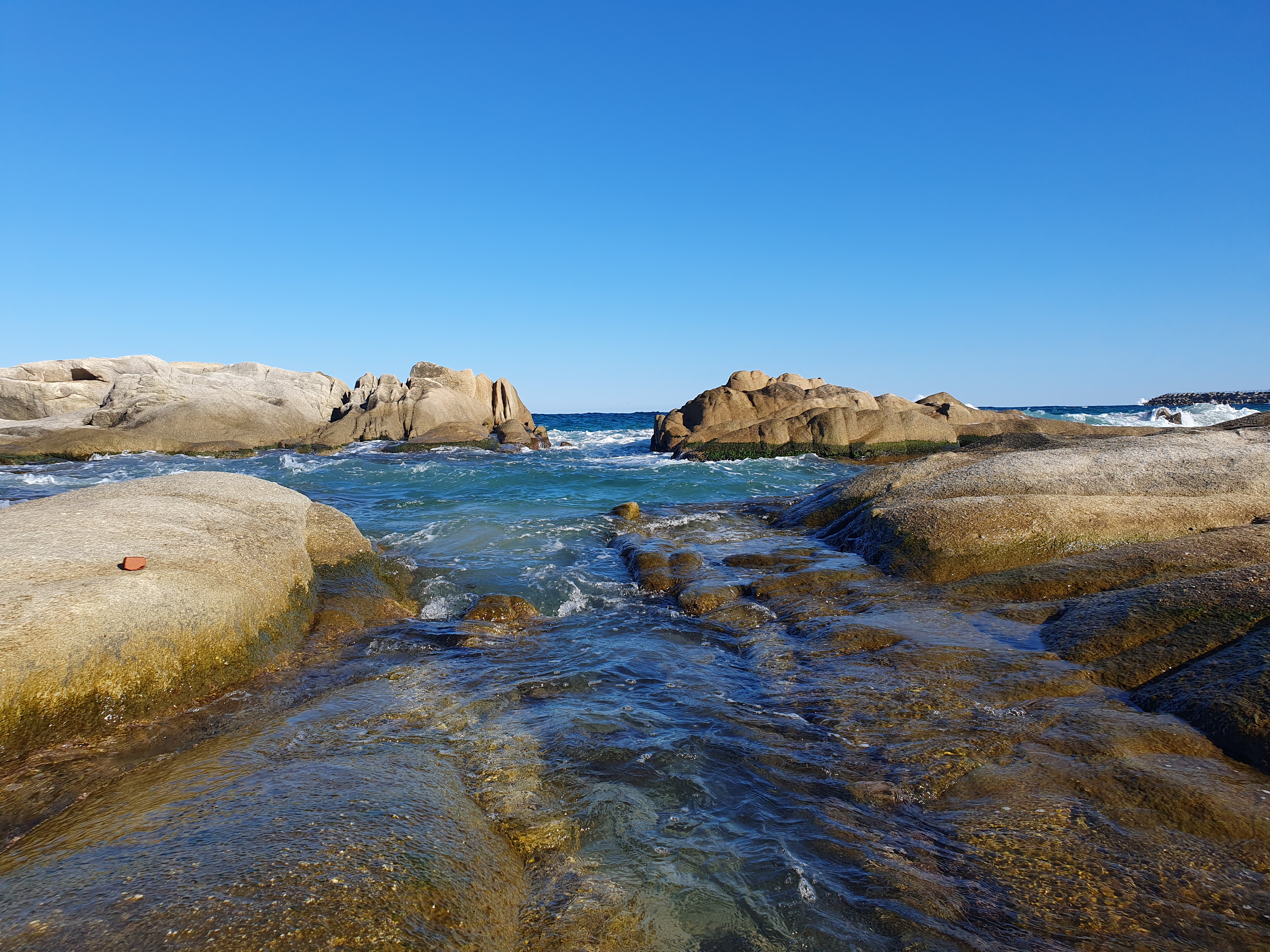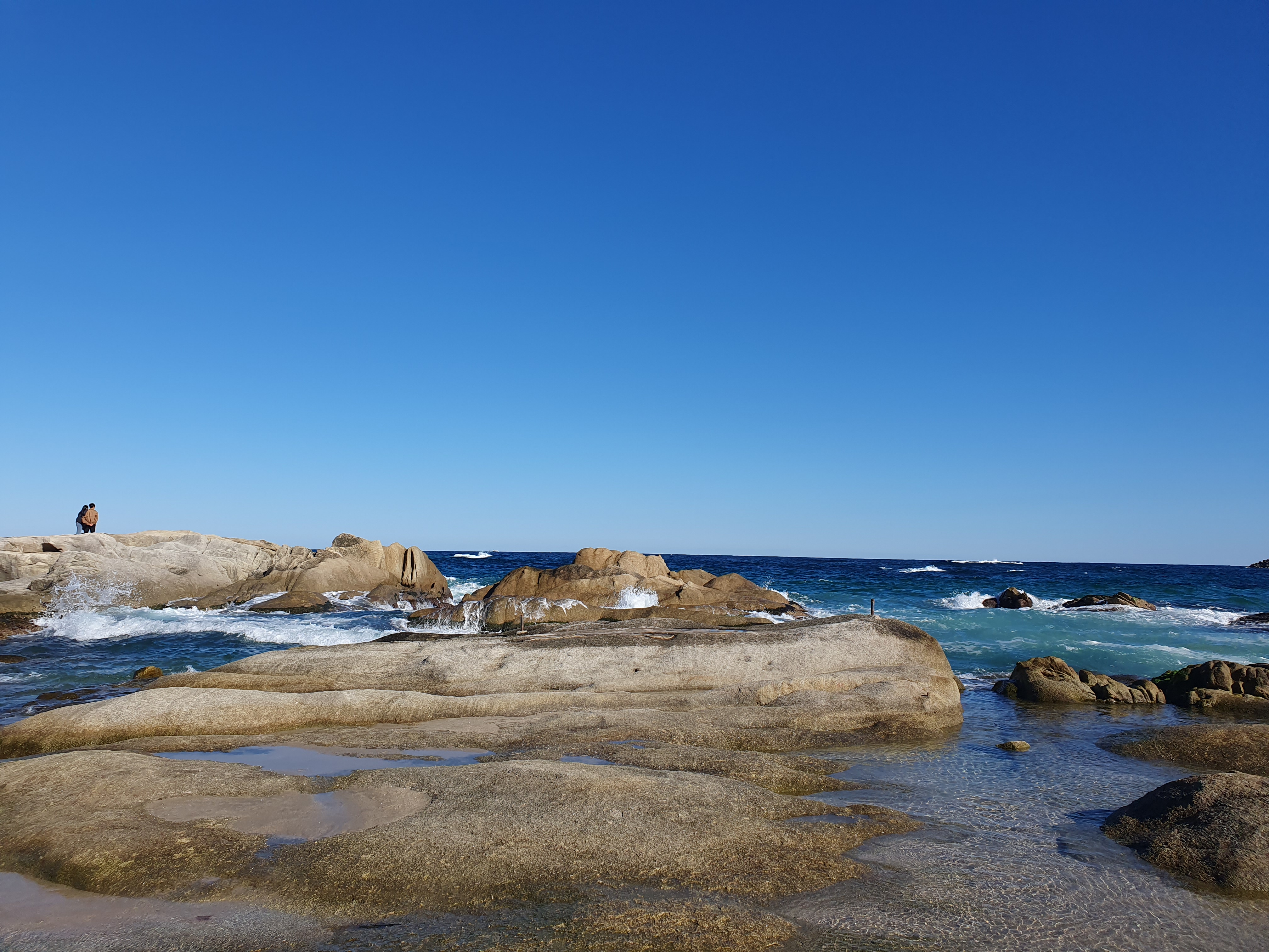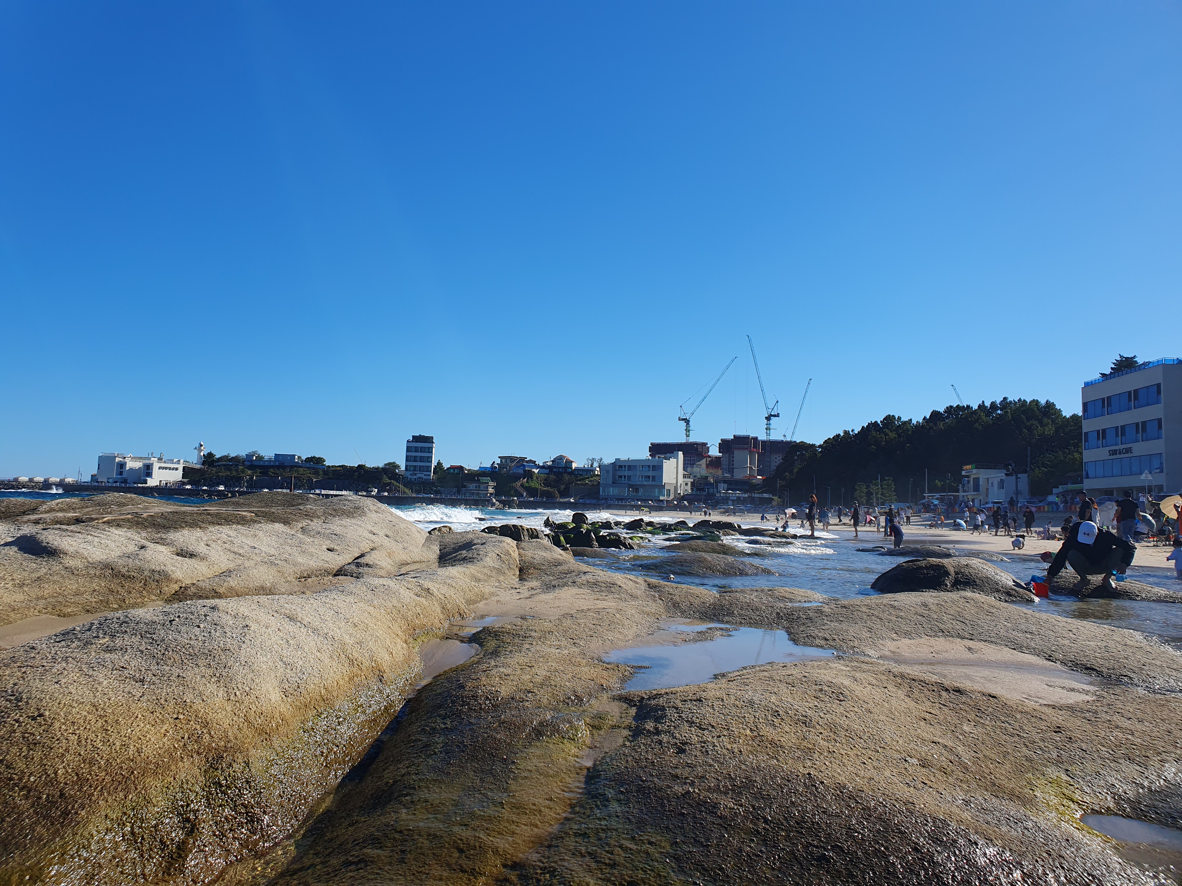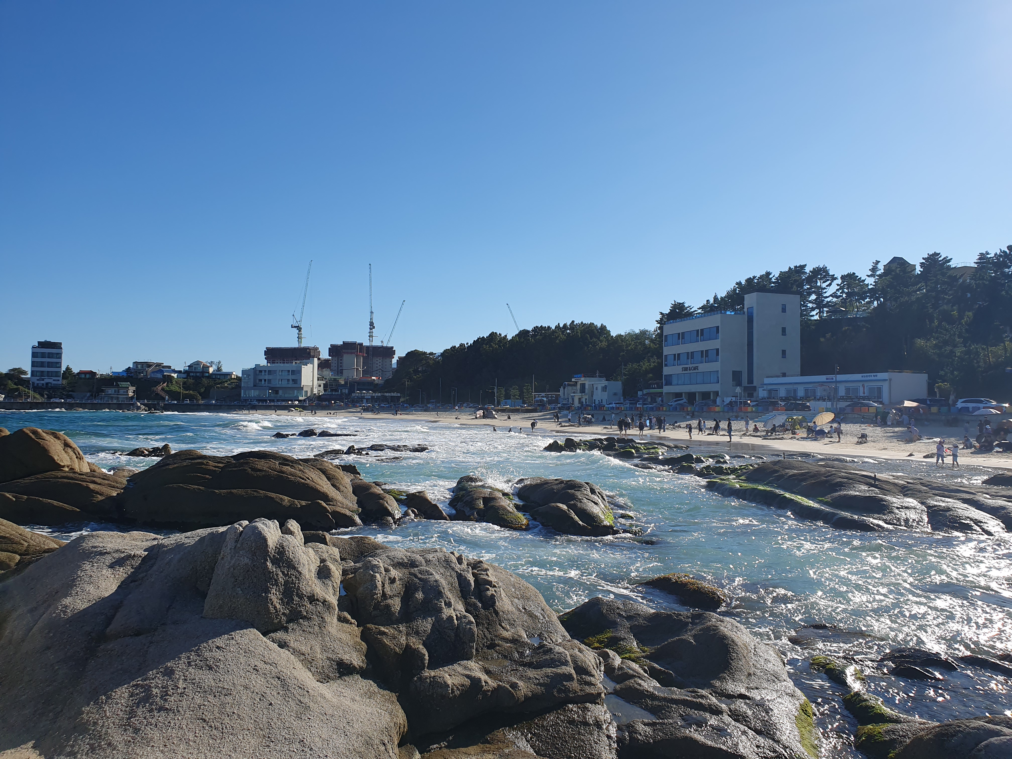 일반적인 해수욕장과는 달리 해변가에 돌로 이뤄진 바닥이 있어 색달랐습니다.