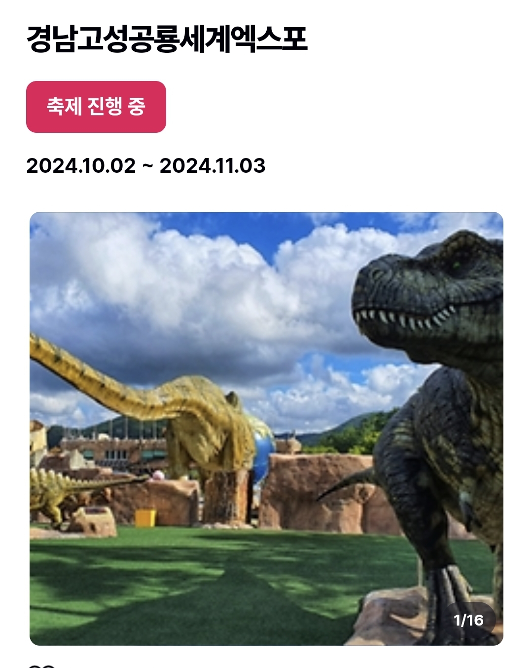 공룡엑스포 정보도 아래에서 확인하시고 가족들과 즐거운 시간 보내시길 바랍니다.