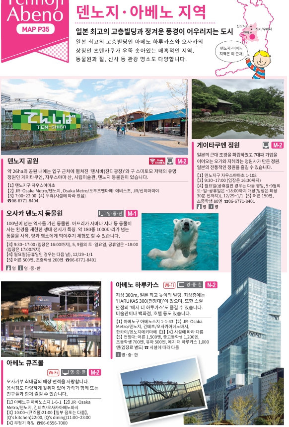 오사카 여행지 중 덴노지, 아베노 지역 여행 정보입니다.