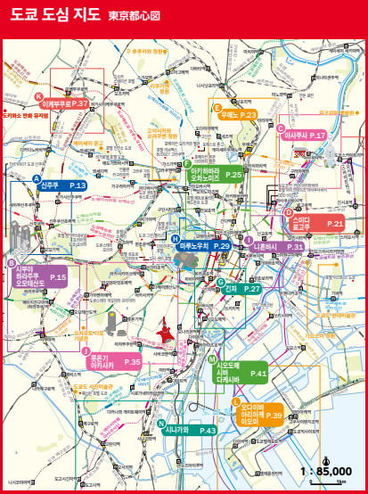 도쿄 여행시 아래 도쿄(도심) 여행지도 참고하시면 됩니다. 화질이 좀 떨어져 pdf원본 파일을 글 제일 아래에 첨부하도록하겠습니다.(아래 자료는 도쿄 공식 관광가이드북 내용입니다)