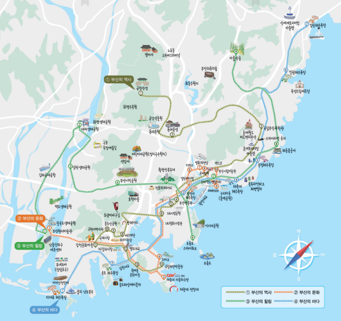 구경할거리가 워낙 많다보니깐 어디를 봐야할지 고민되실텐데 부산시에서 추천하고 있는 관광코스를 참고하신다면 알찬 여행을 하실 수 있습니다.