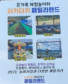 러키더키 아쿠아리움 제일 위층에는 패밀리랜드라는 놀이 기구를 즐길수 있는 공간이 있습니다. 레일썰매와 범퍼카, 회전목마, 번지점프 놀이 시설이 있어 아이들이 신나게 놀 수 있습니다.