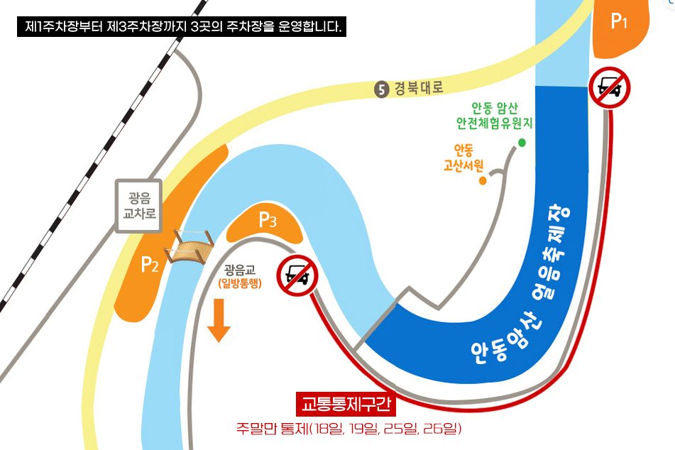 안동 암산 얼음축제는 영남지역에서 열리는 가장 큰 겨울 축제로 많은 사람들이 방문합니다. 그래서 교통이 많이 혼잡할텐데요.
