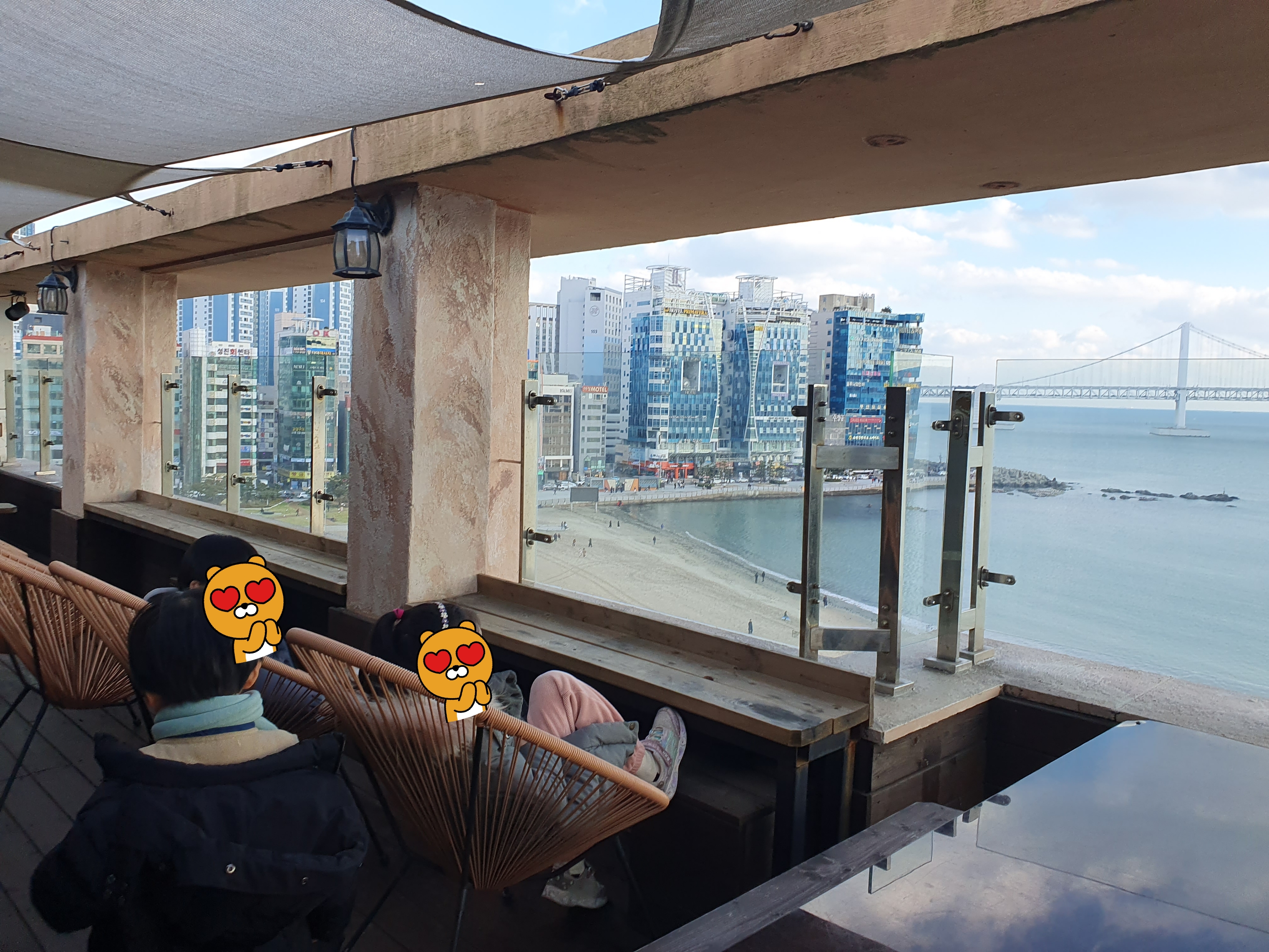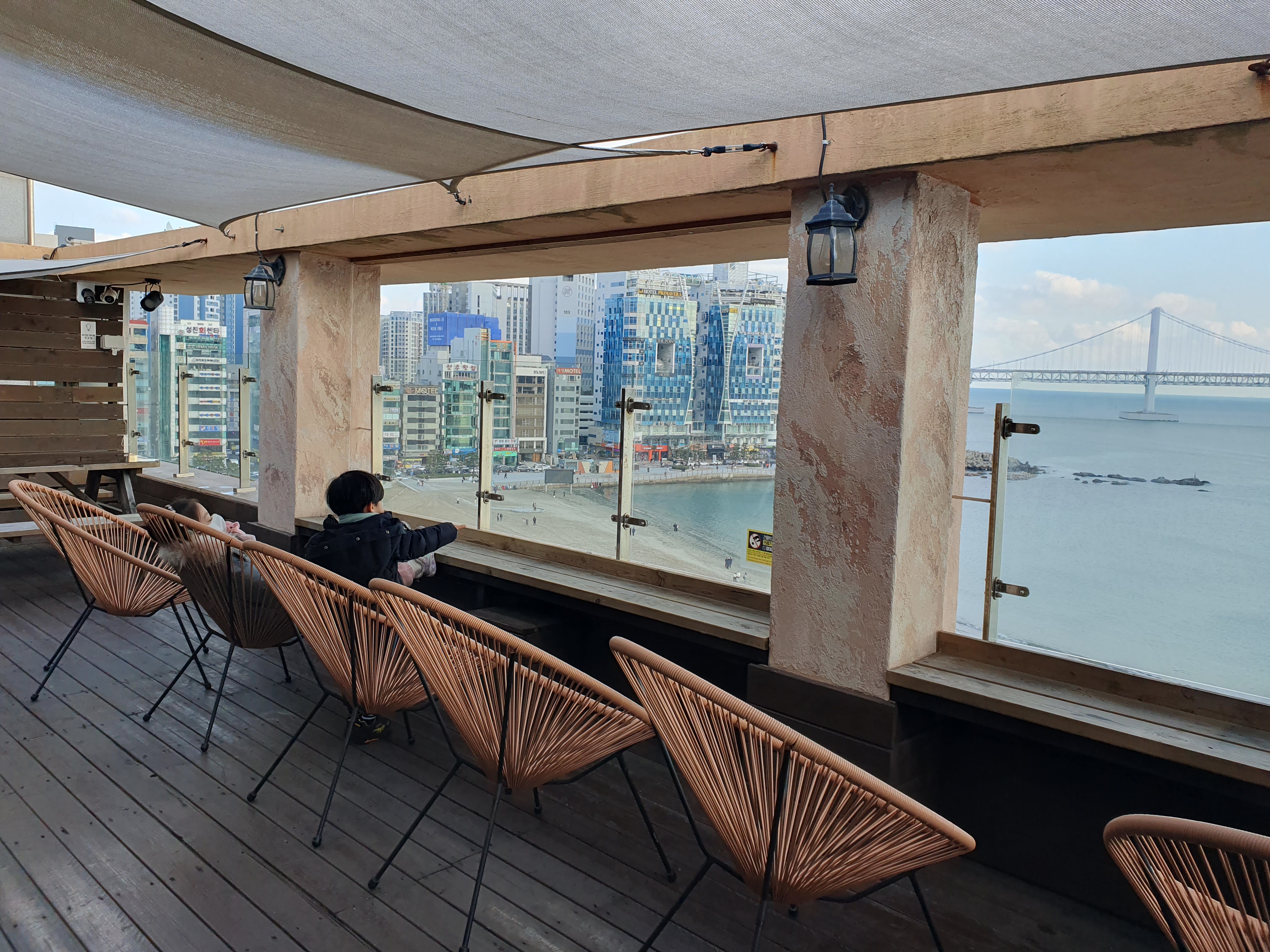 9층 루프탑에는 앉아서 전망할 수 있는 자리가 있어 편하게 앉아 한참동안 바다를 볼 수 있어 너무 좋았습니다.