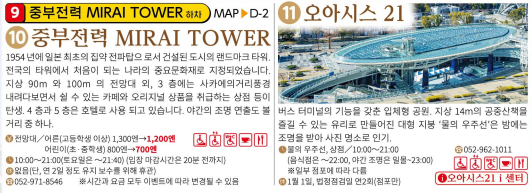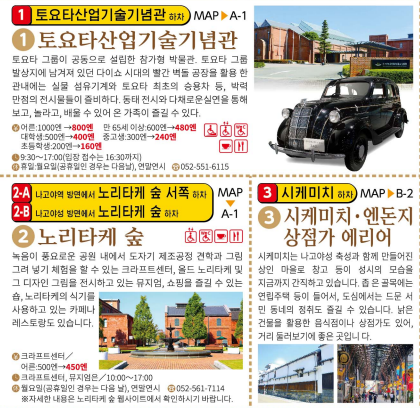나고야 메구루 운행시 방문하는 주요 관광지 정보입니다.