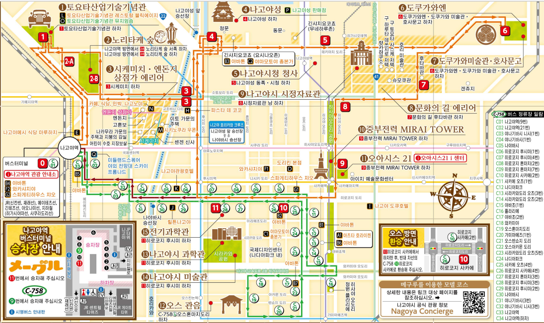 [일본] 나고야 여행정보(메구루 버스 노선, 나고야 관광버스)