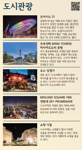 나고야 주요 관광지 정보입니다.