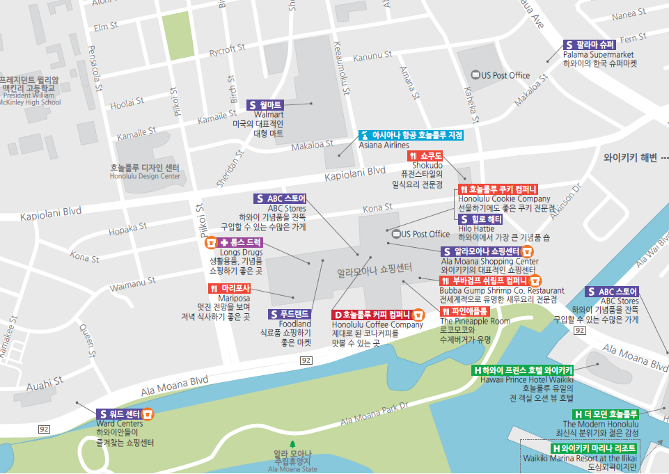 하와이 호놀룰루 다운타운 여행시 아래 관광지도 참고하시기 바랍니다.