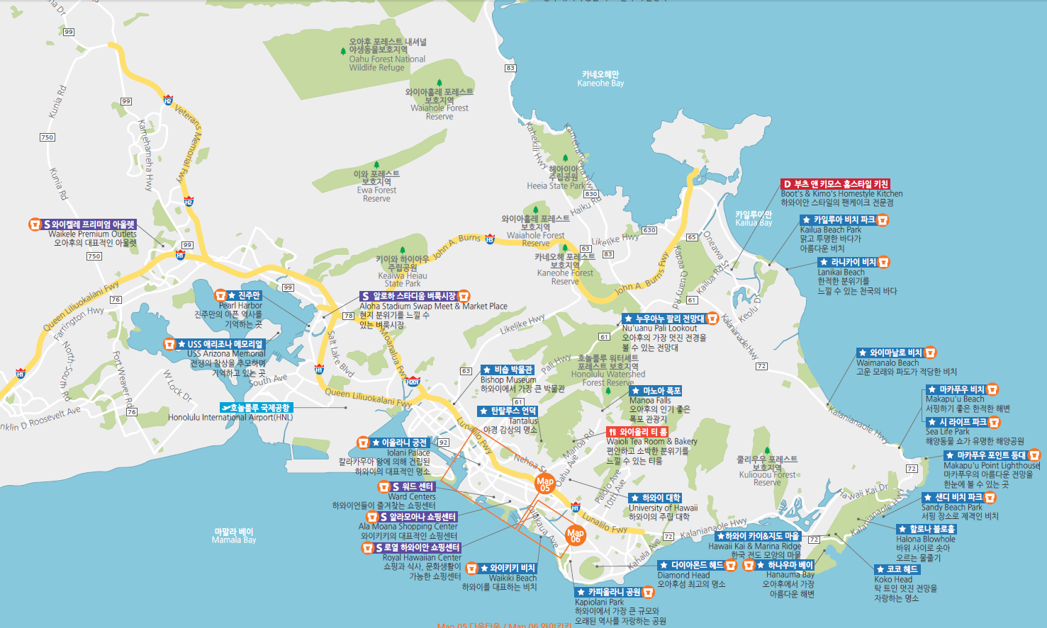 [미국] 하와이 관광지도(하와이 오하우 꼭 가봐야할 곳)