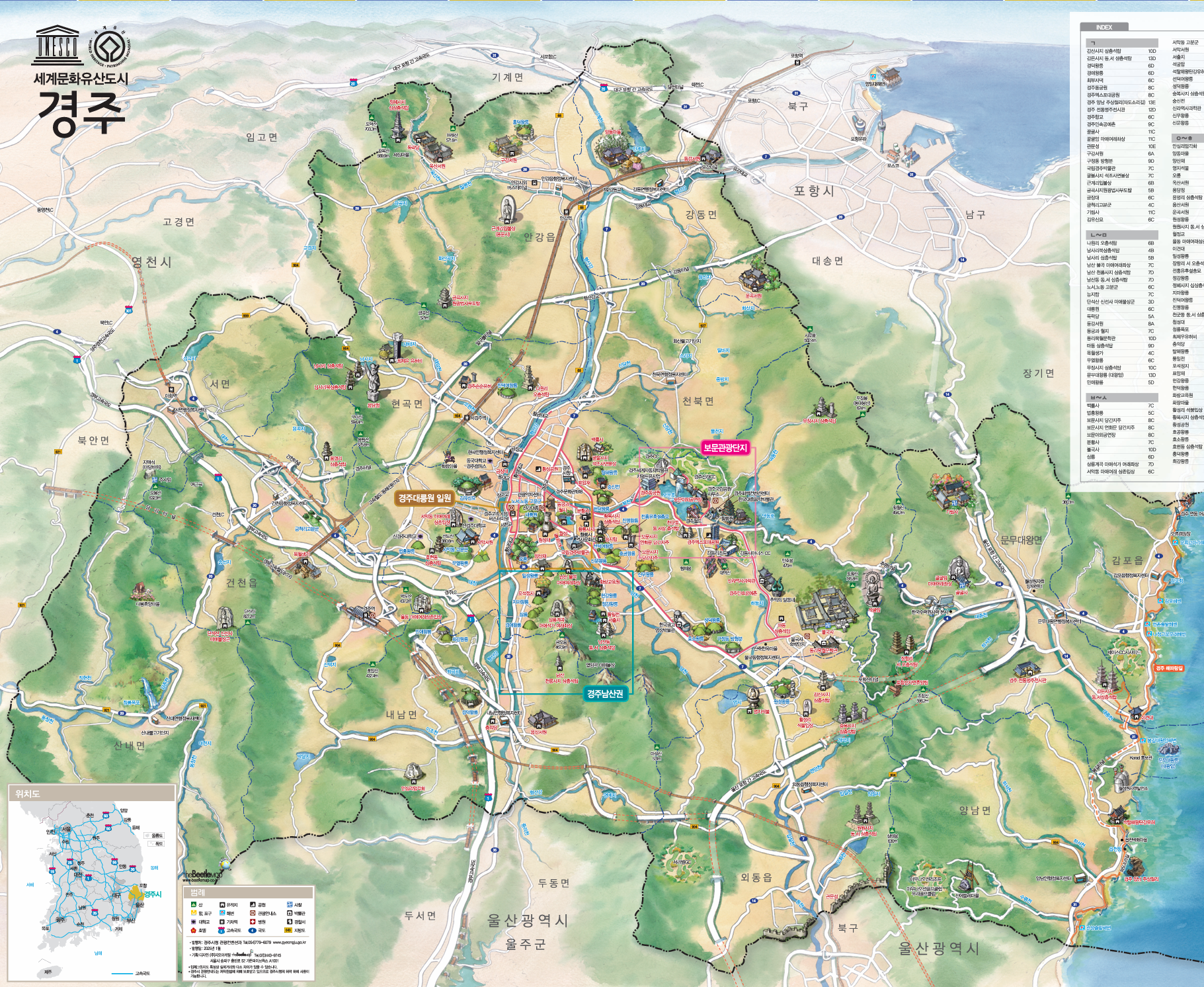 경주 관광지도를 위에서부터 확대했습니다.