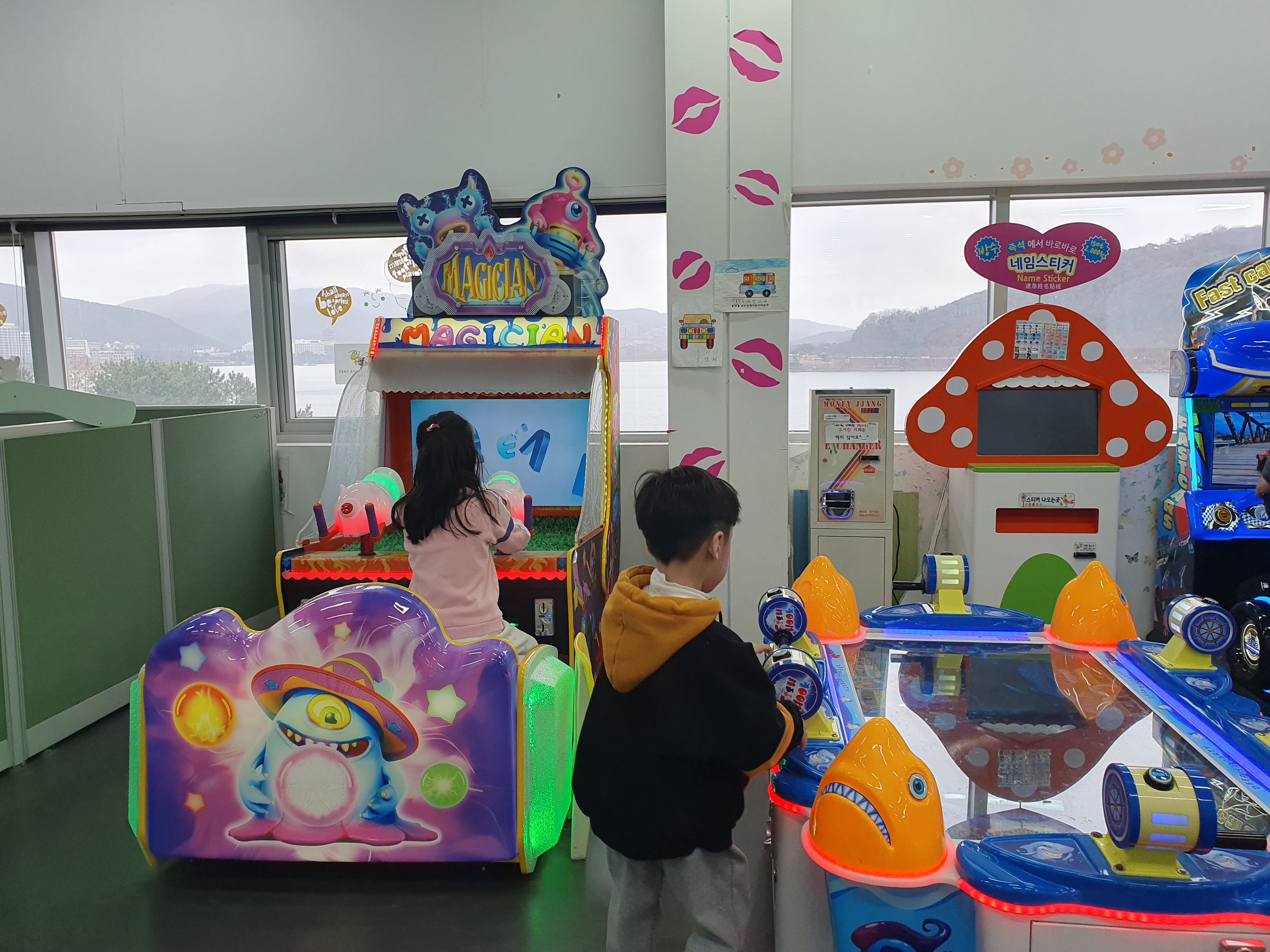 세계자동차박물관 제일 꼭대기 층에는 오락시설과 카페 그리고 실내 놀이터가 있어서 한참동안 시간을 보낼 수 있었습니다.