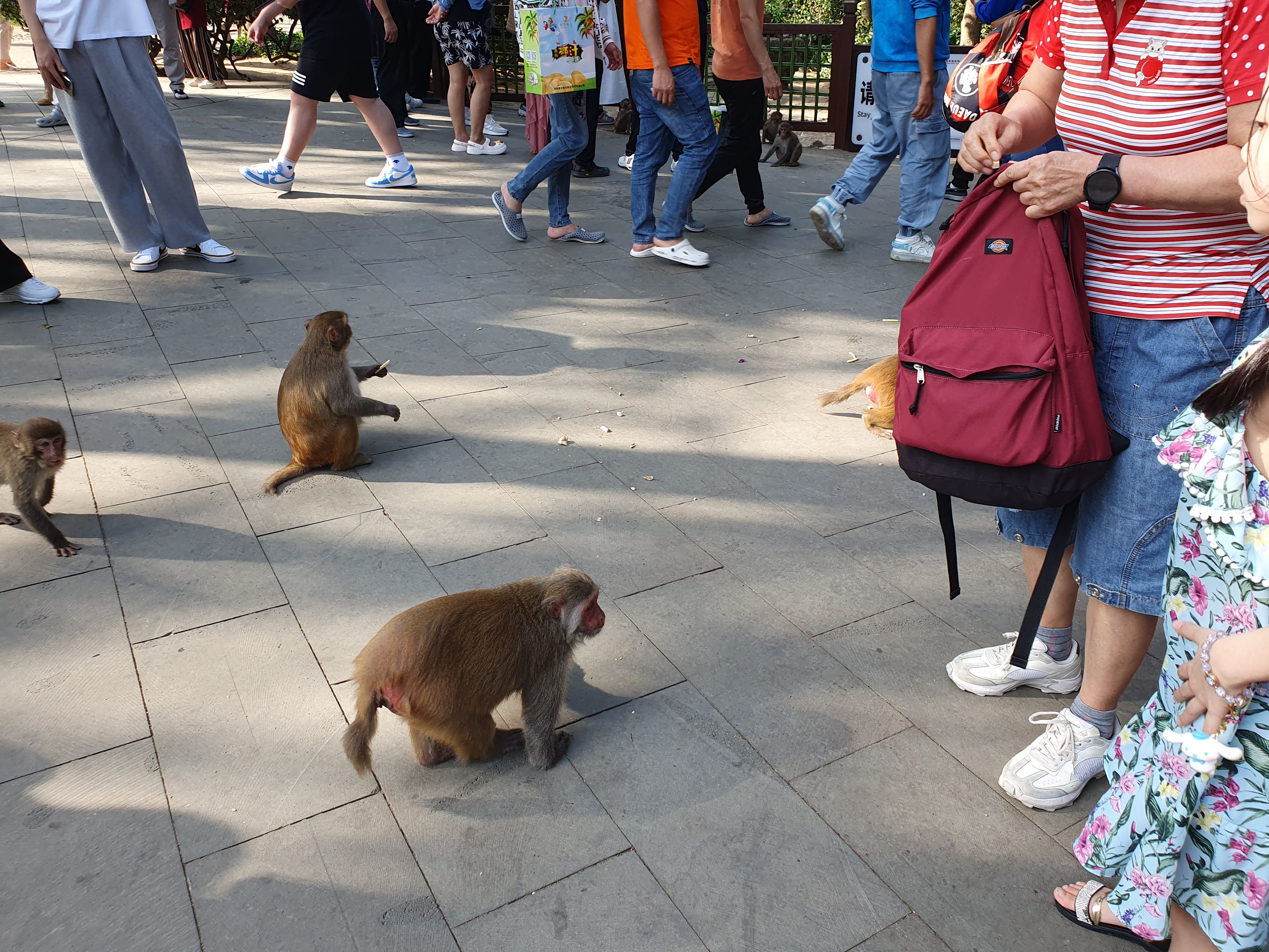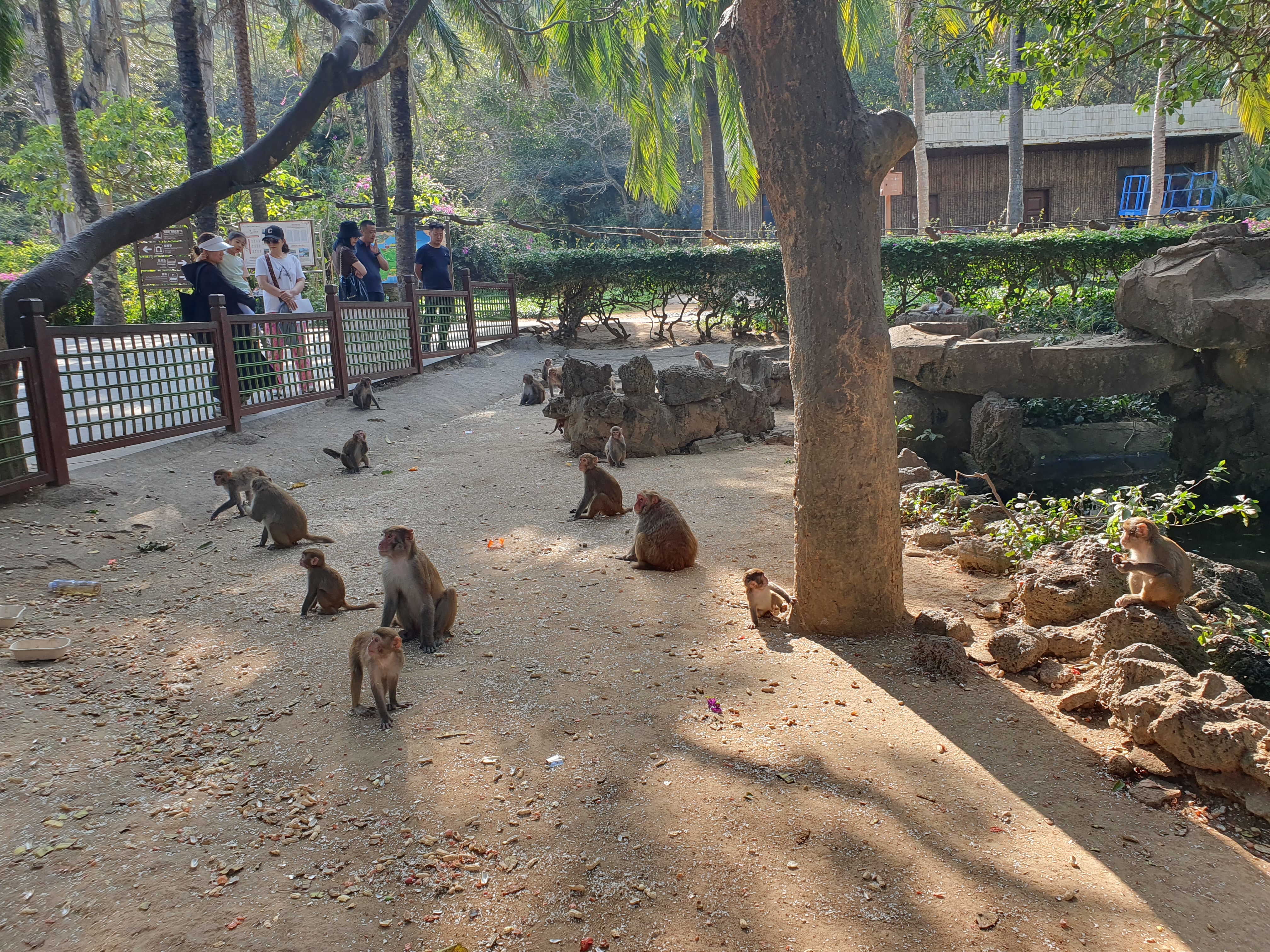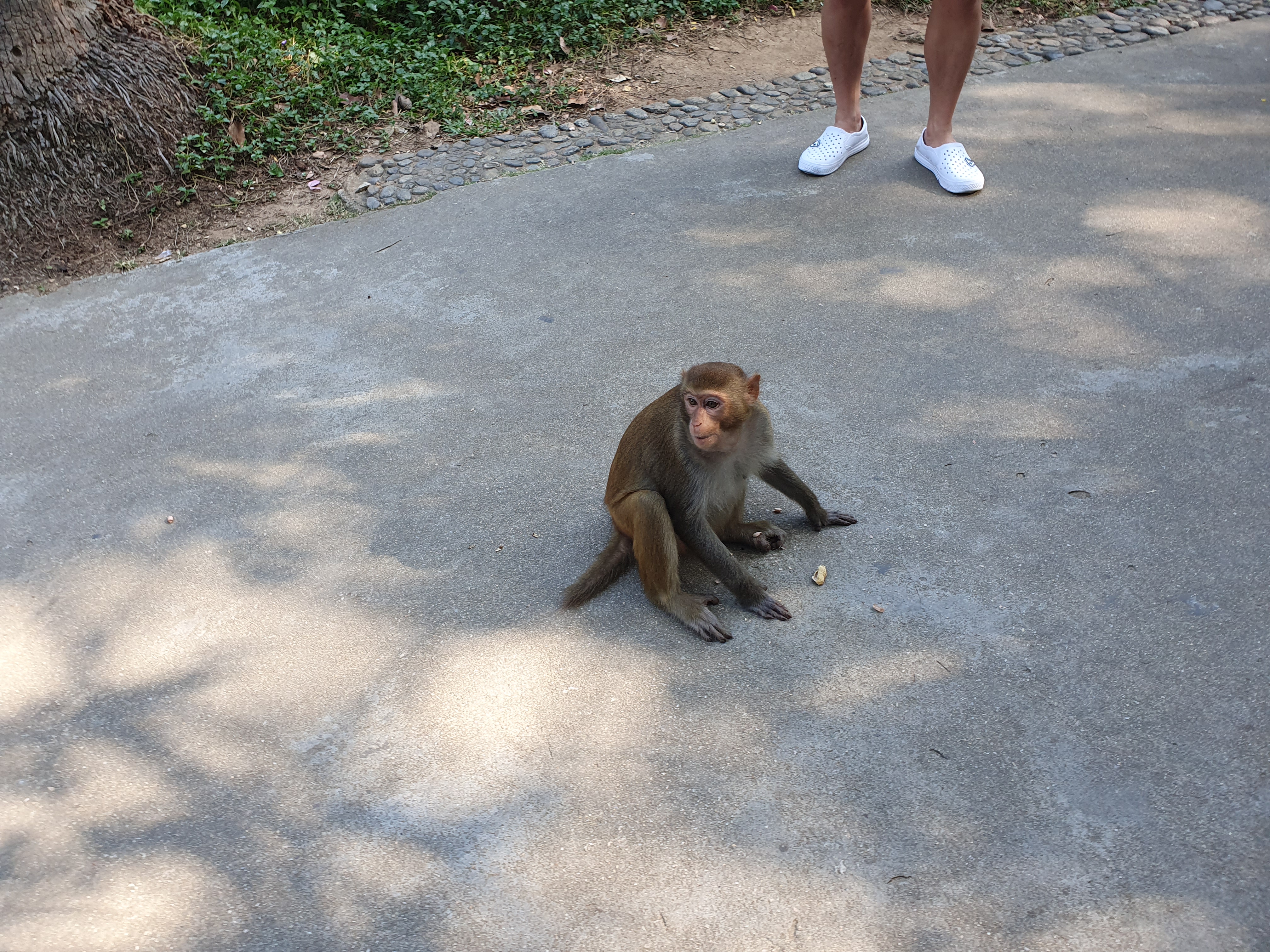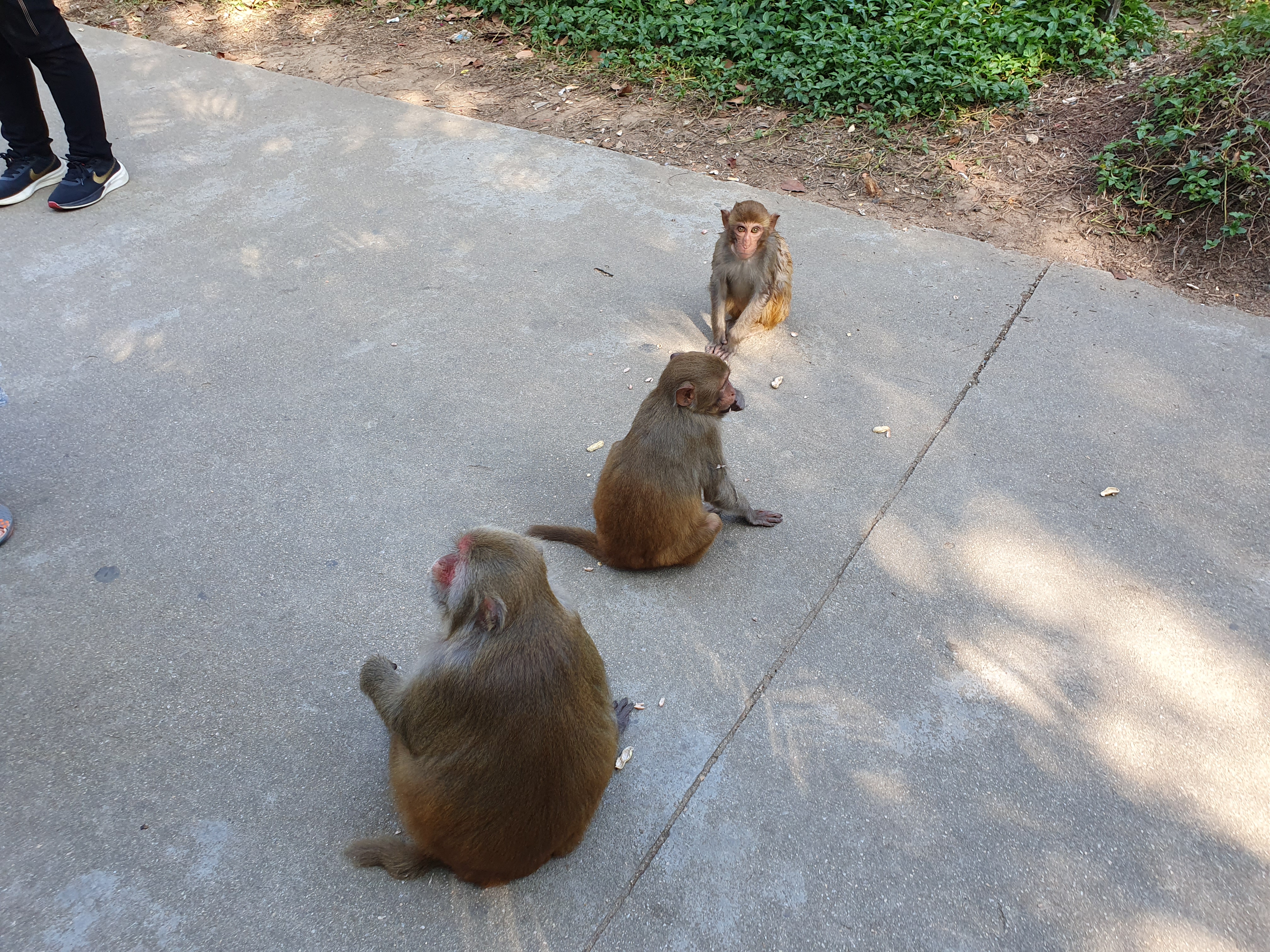 원숭이 우리가 있긴하지만 우리밖으로 나와서 자유롭게 돌아다니고 있었습니다. 섬에 가기전 과자를 준비해 갔었기 때문에 보이는 곳곳에서 과자를 던져줬습니다.