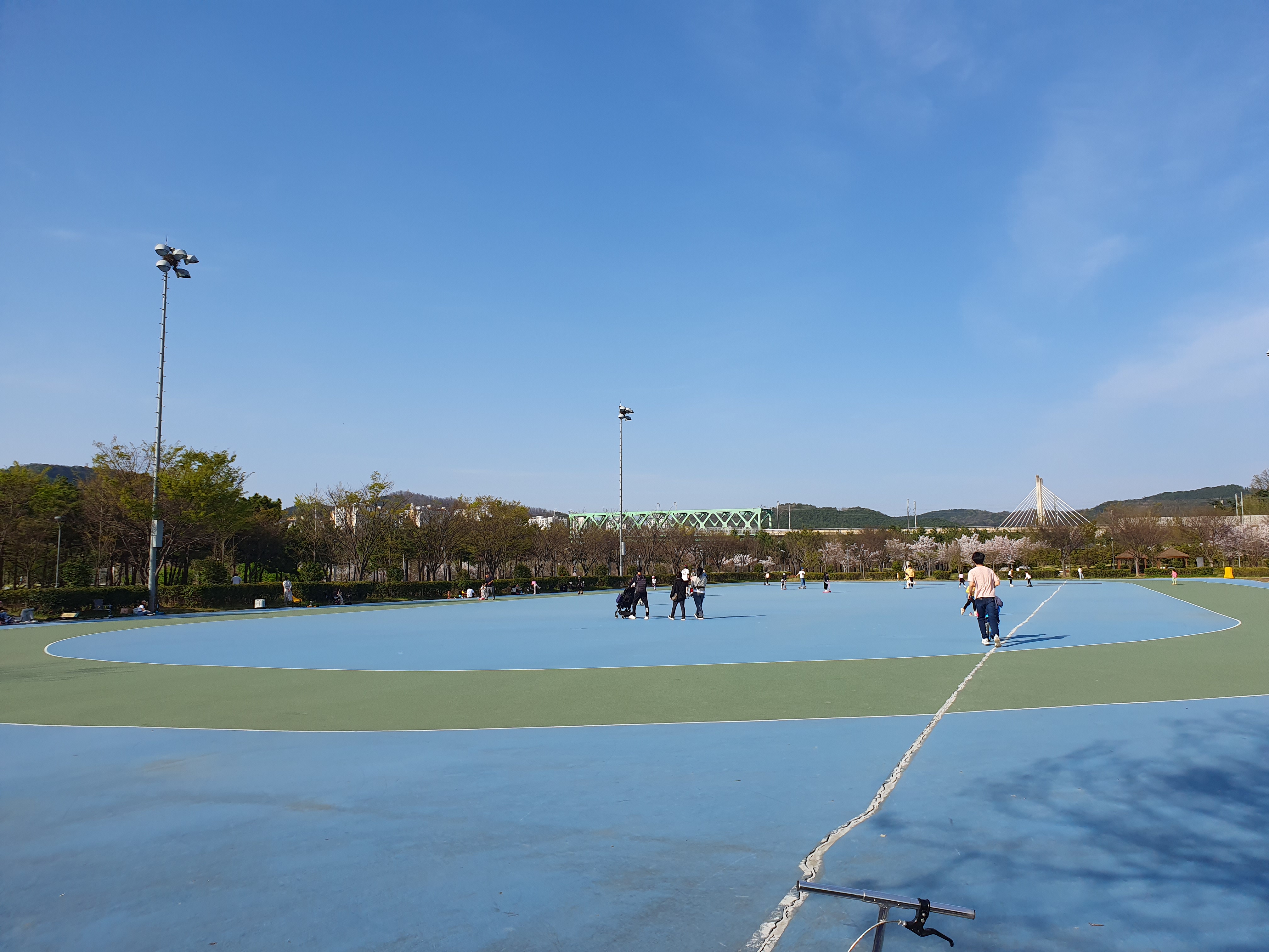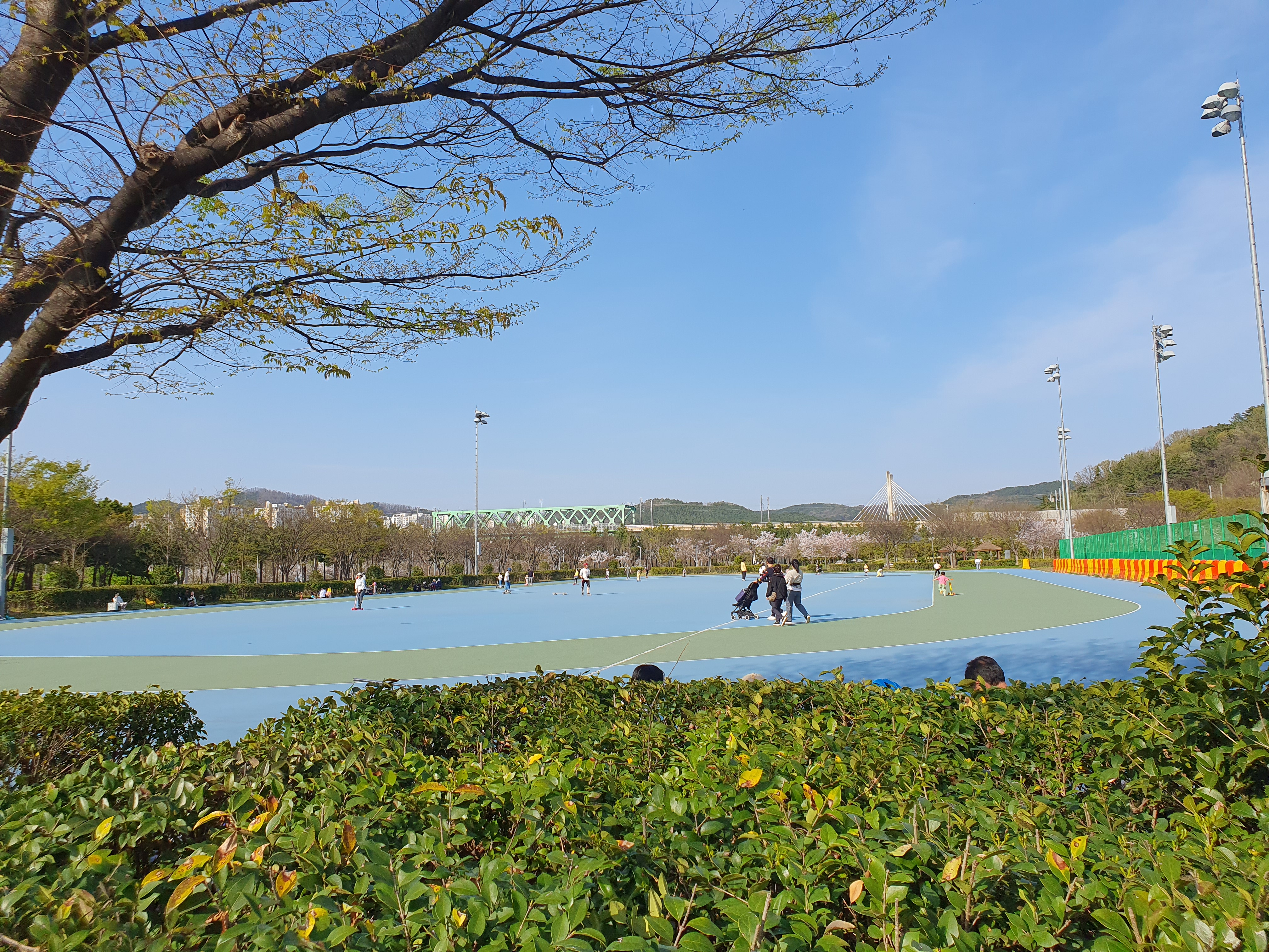 공원 반대편에는 넓은 인라인 스케이트장이 있습니다. 주말인데도 불구하고 사람들이 많지가 않아 킥보드랑 인라인 스케이트를 맘껏 탈 수 있습니다.
