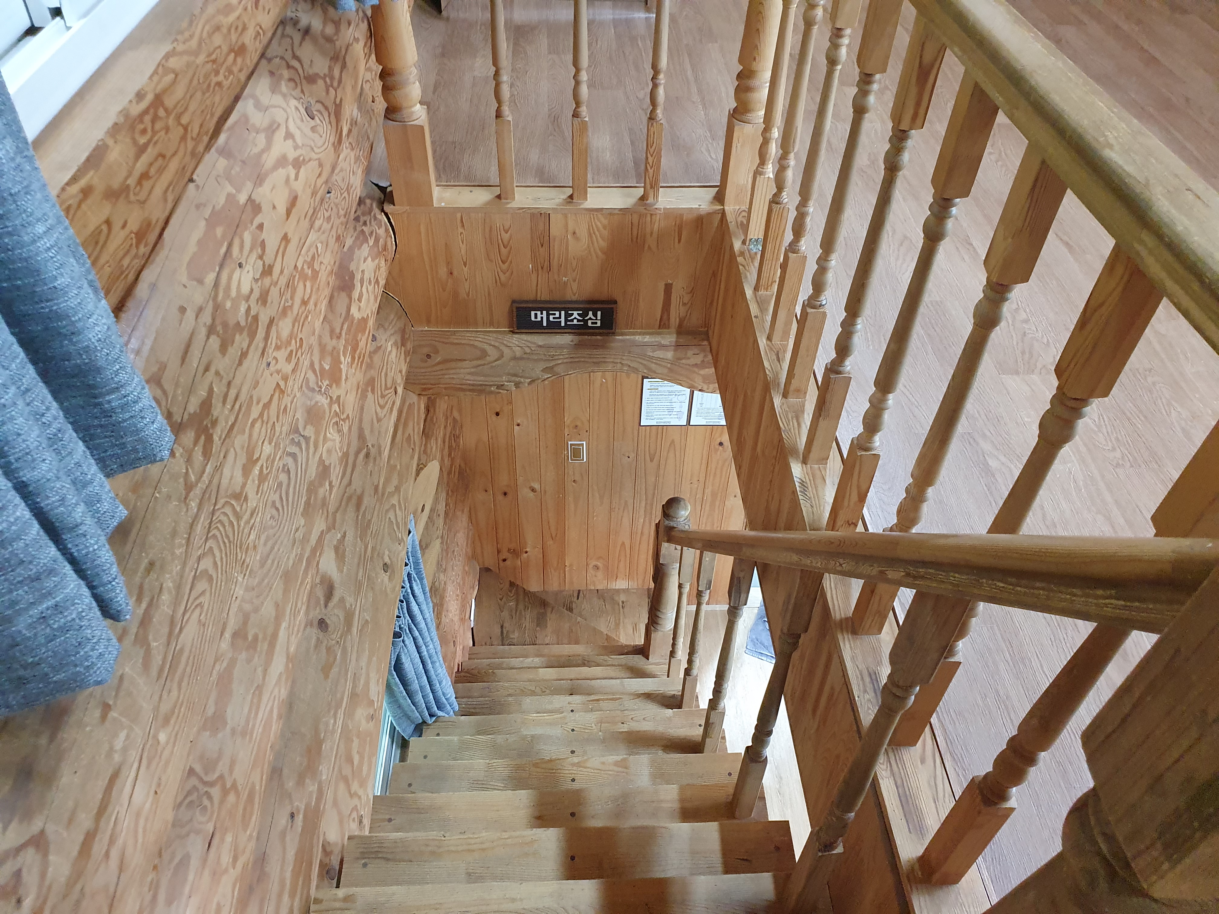 내부 모습입니다. 2층으로 되어있고 각층마다 방은 하나씩인데 화장실은 1층에 하나밖에 없습니다.