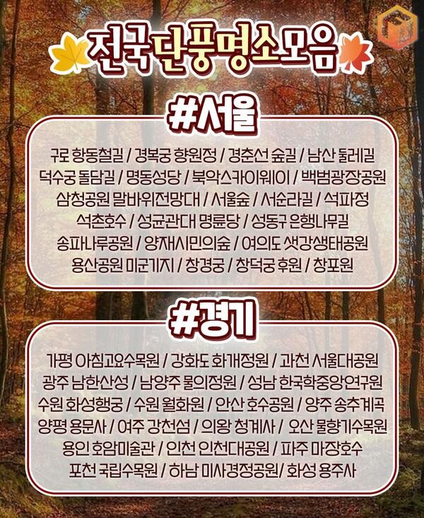 2024년 단풍지도(아름다운 단풍명소 모음)