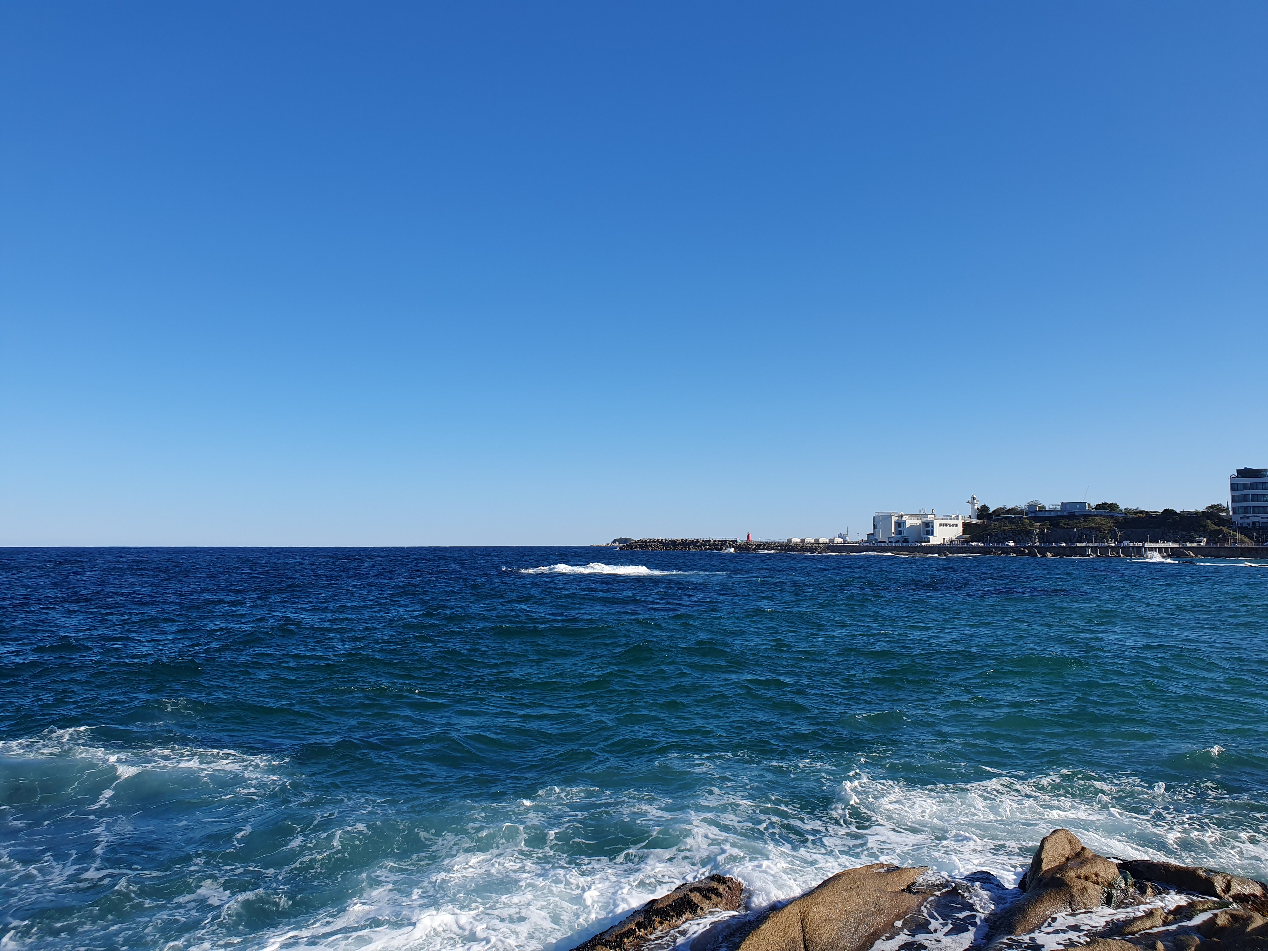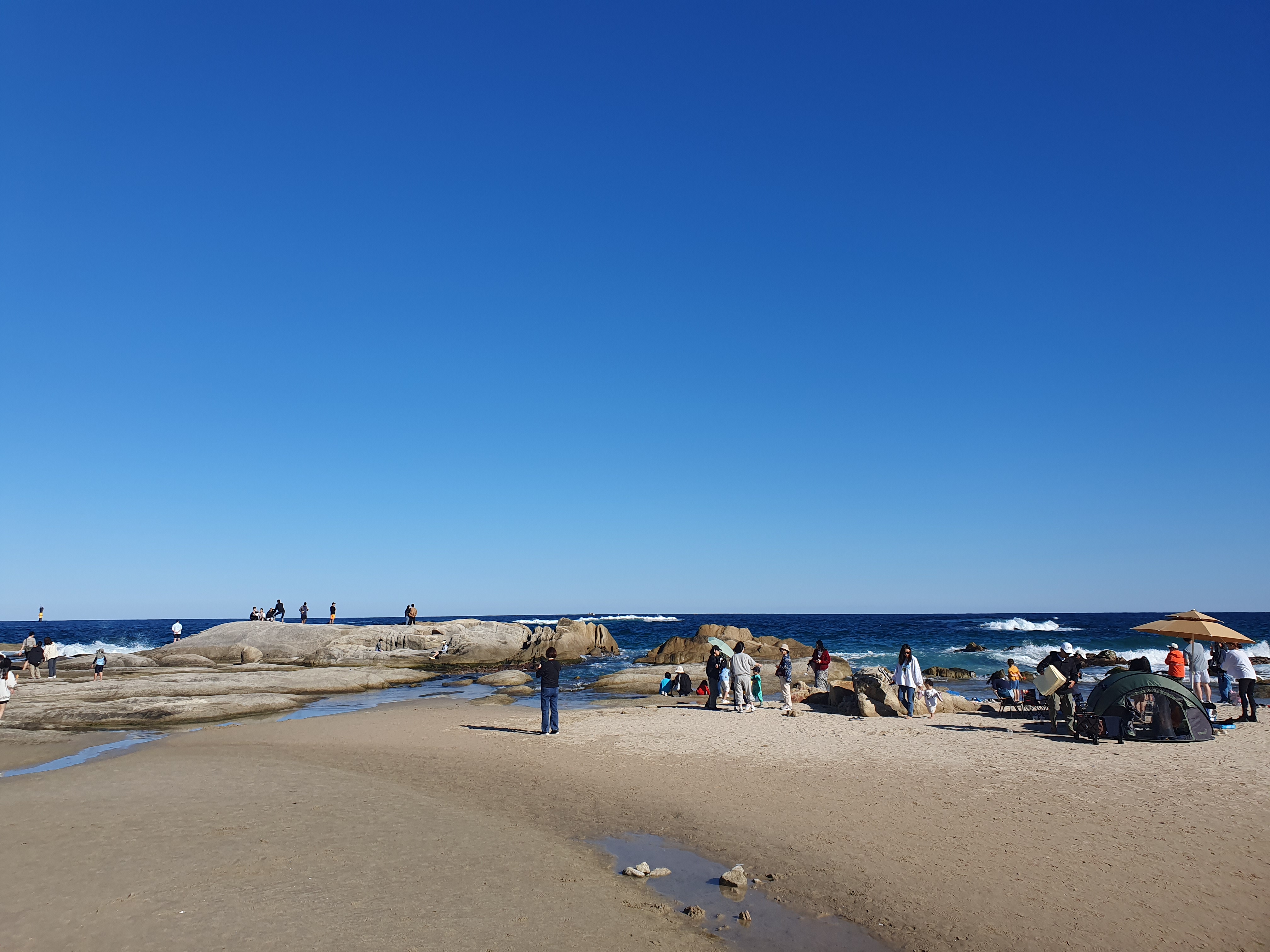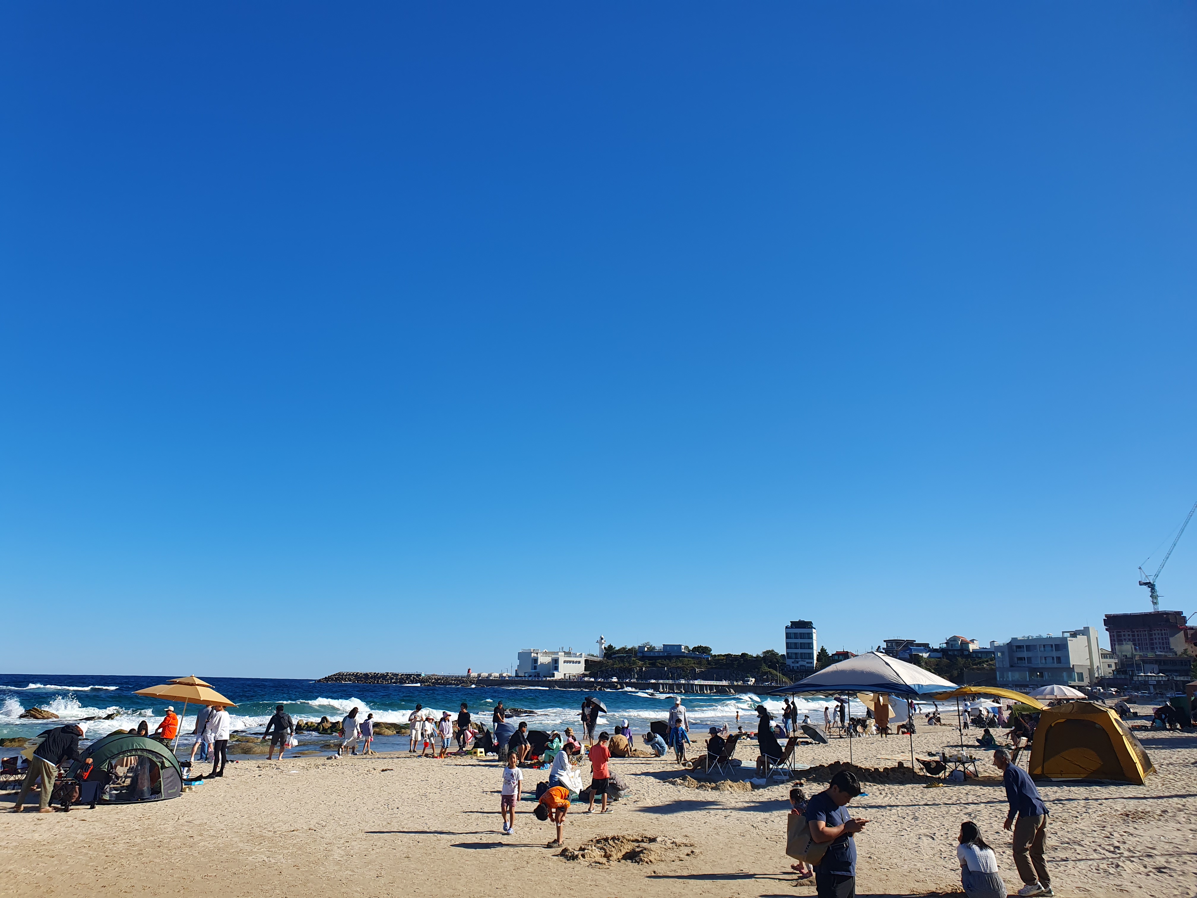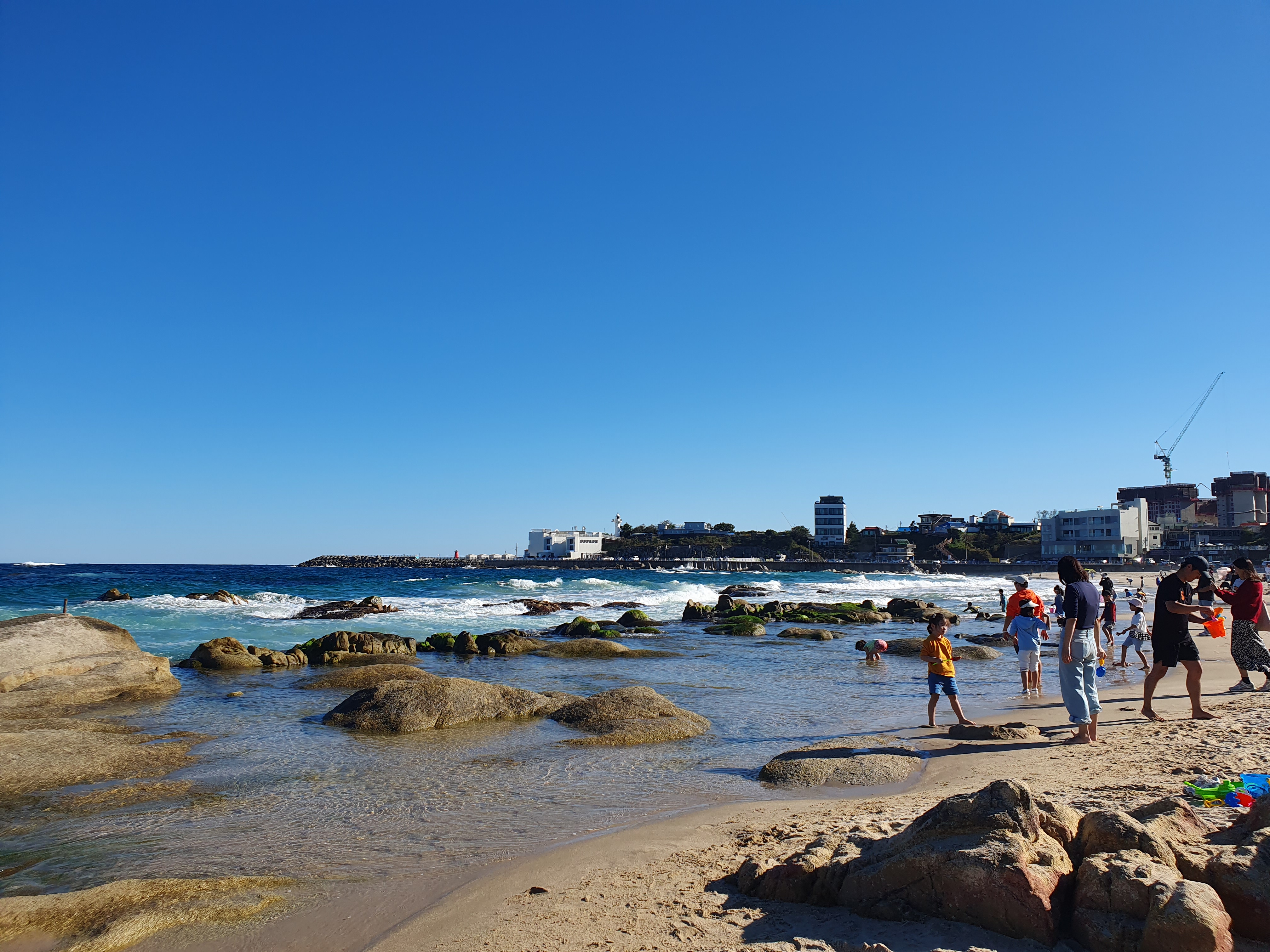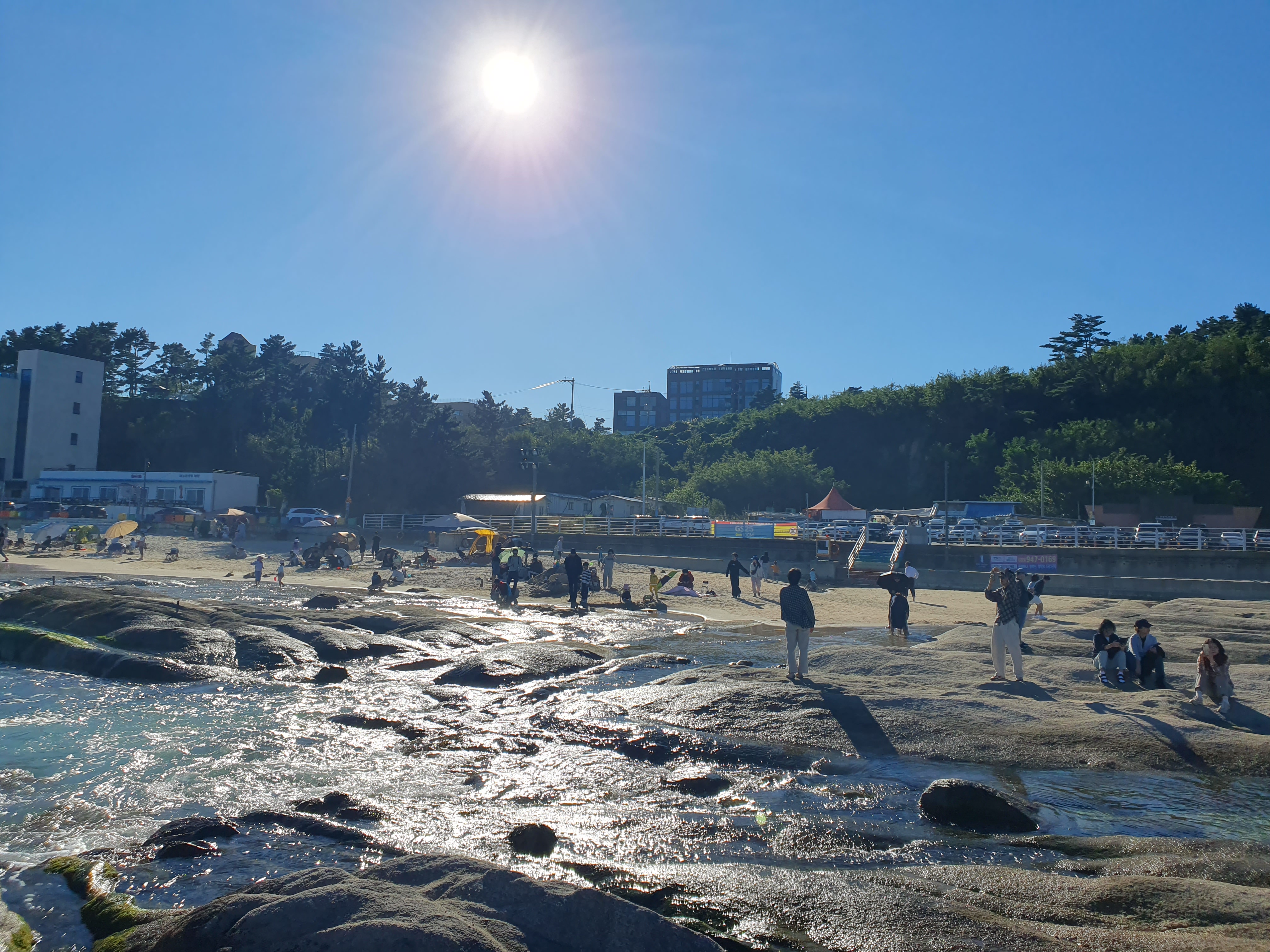 일반적인 해수욕장과는 달리 해변가에 돌로 이뤄진 바닥이 있어 색달랐습니다.